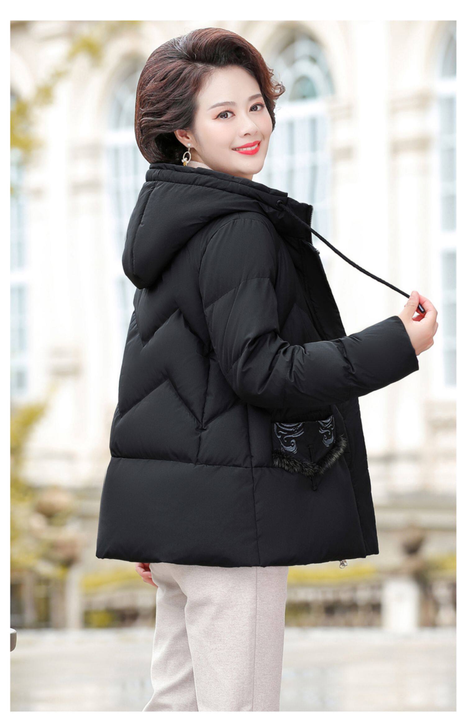 Демисезонный удерживающий тепло мягкий короткий пуховик для матери с капюшоном, для среднего возраста
