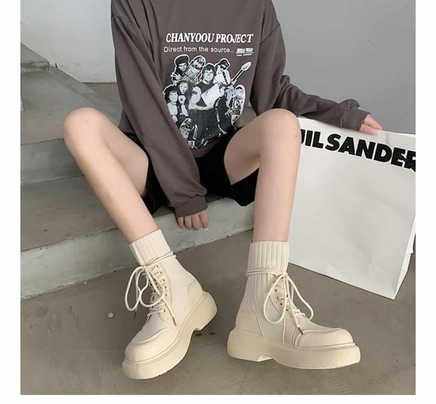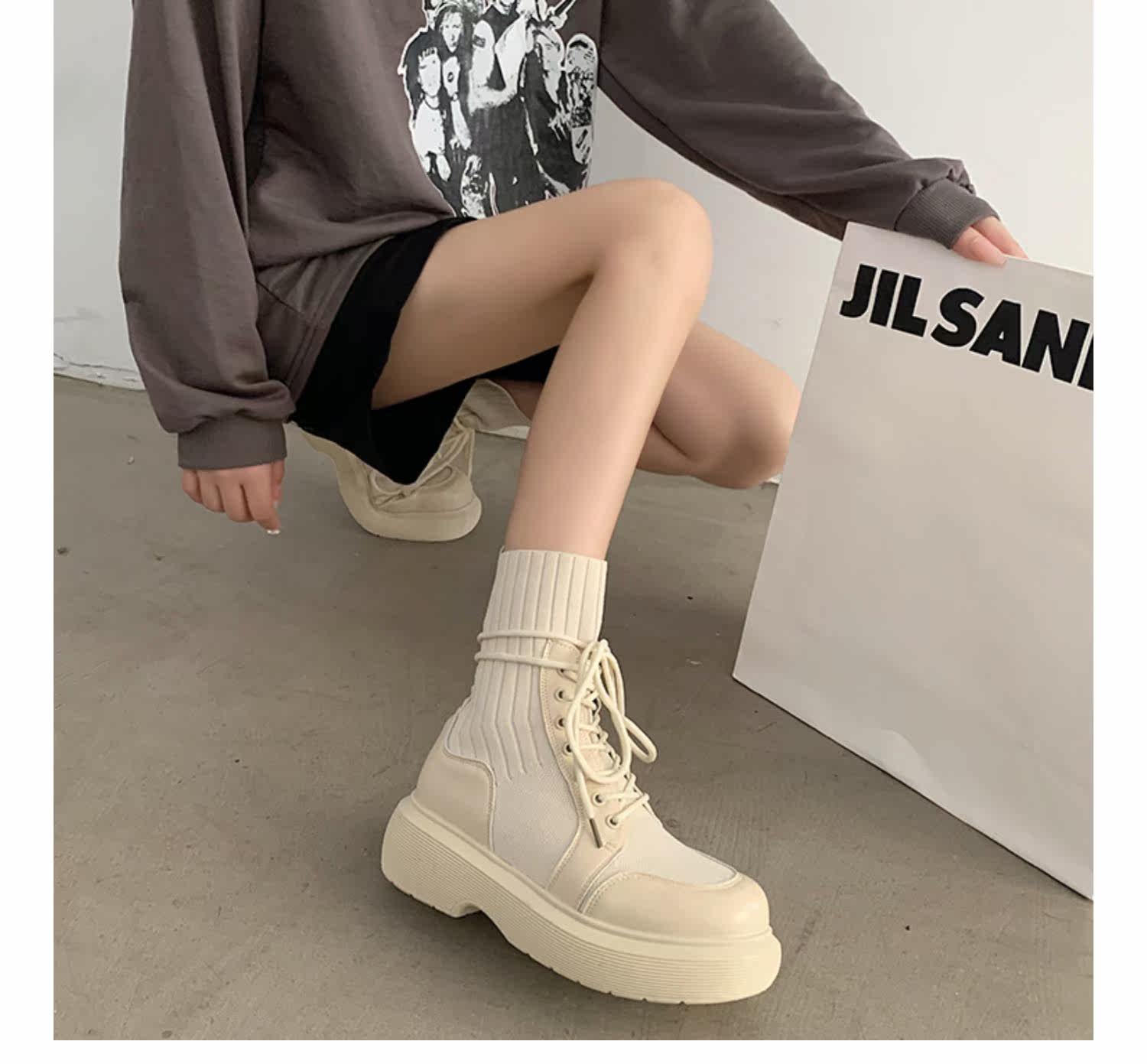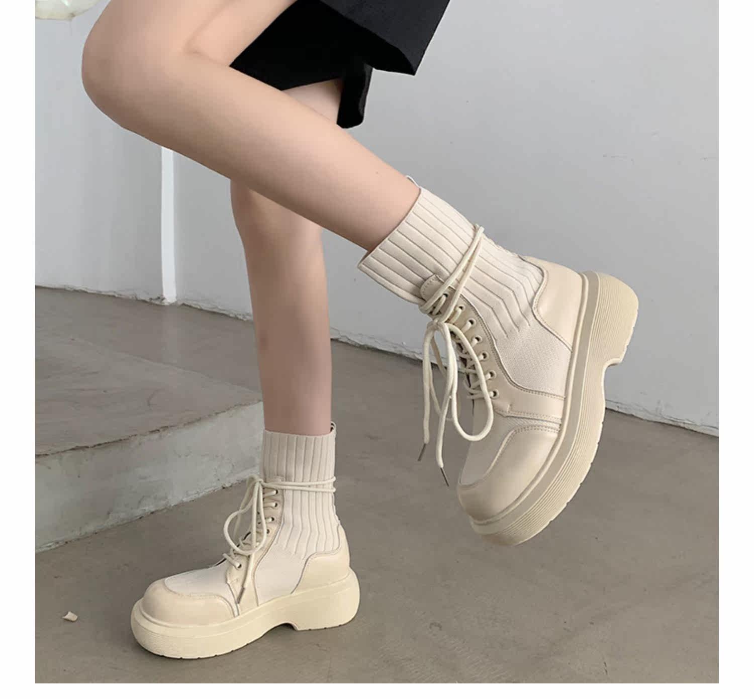 Эластичные модные сапоги на платформе, ботинки, коллекция 2021