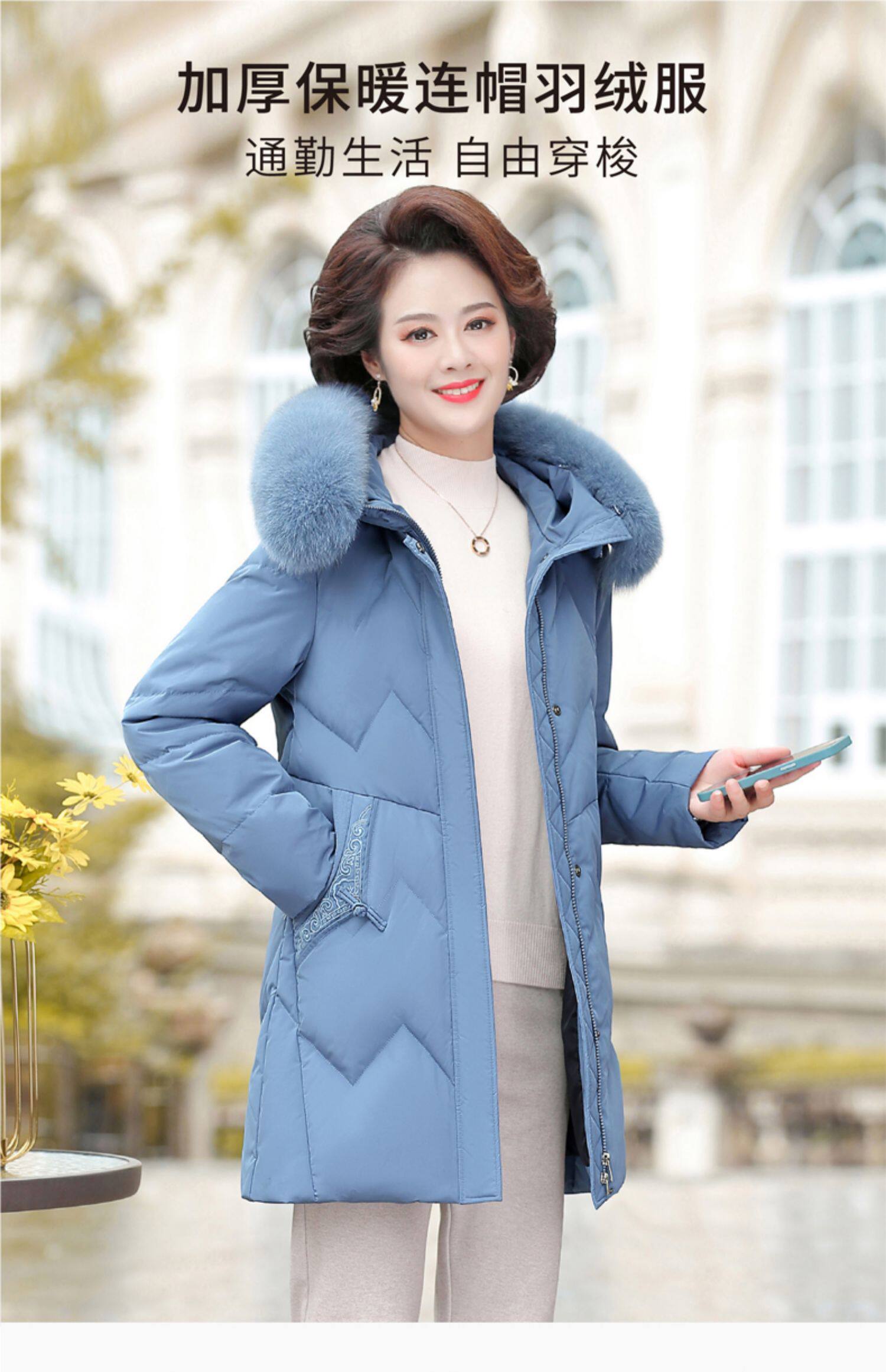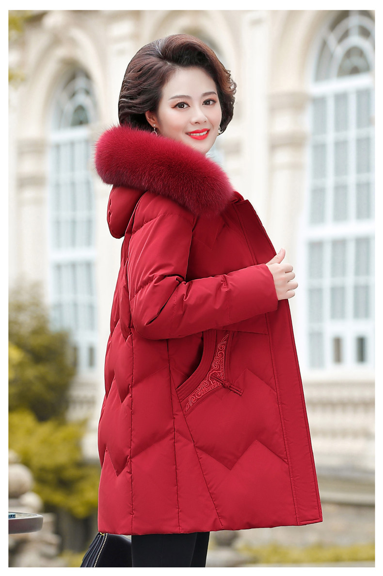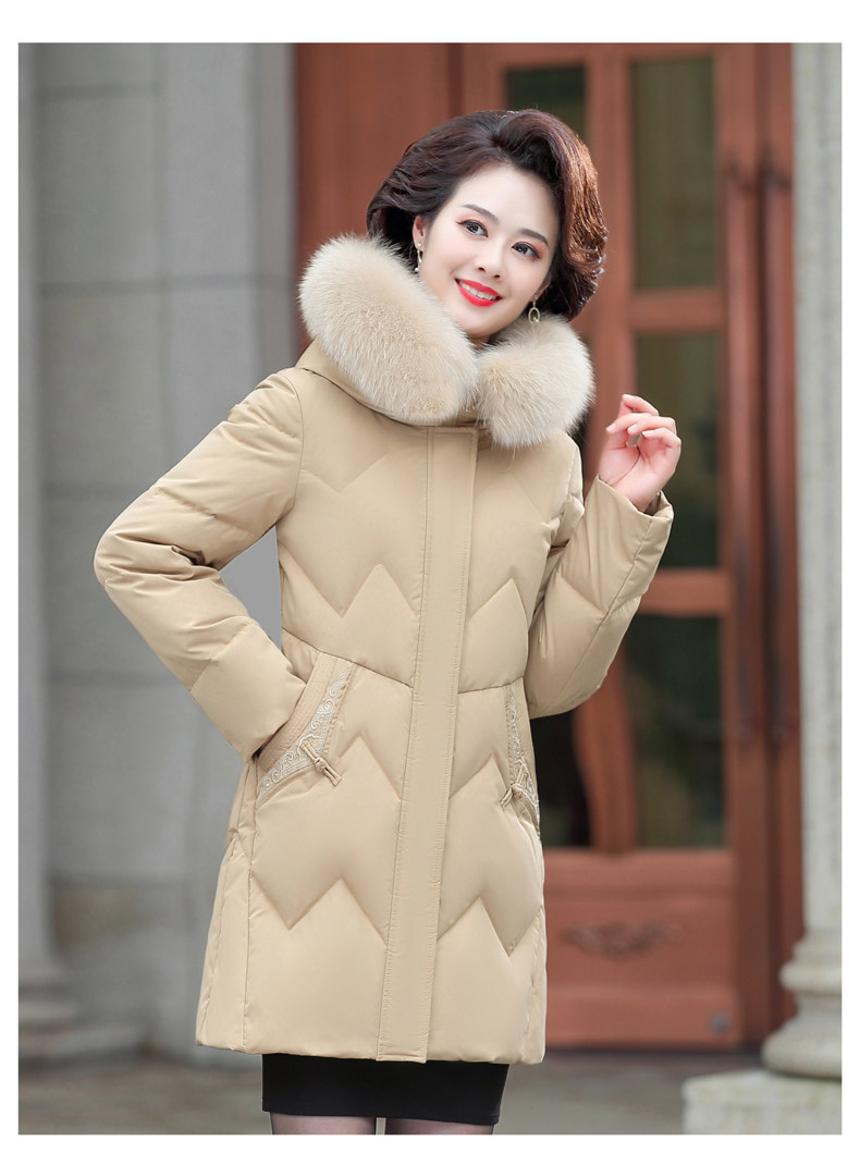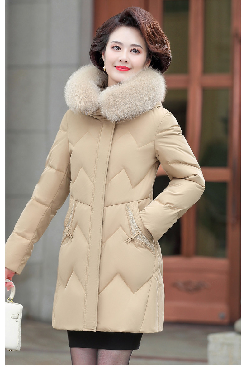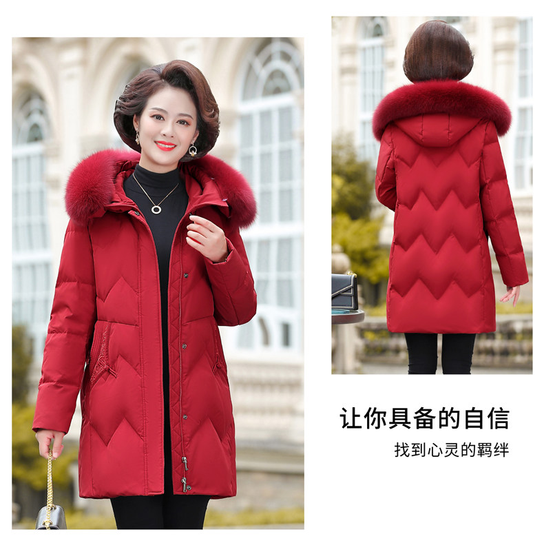 Демисезонный утепленный длинный пуховик для матери с капюшоном, коллекция 2021, для среднего возраста, средней длины