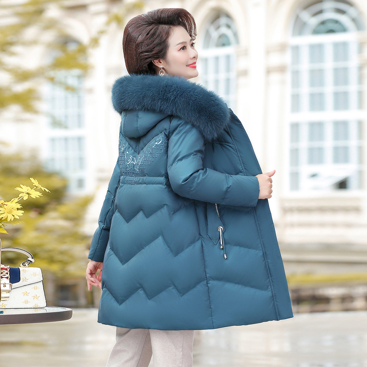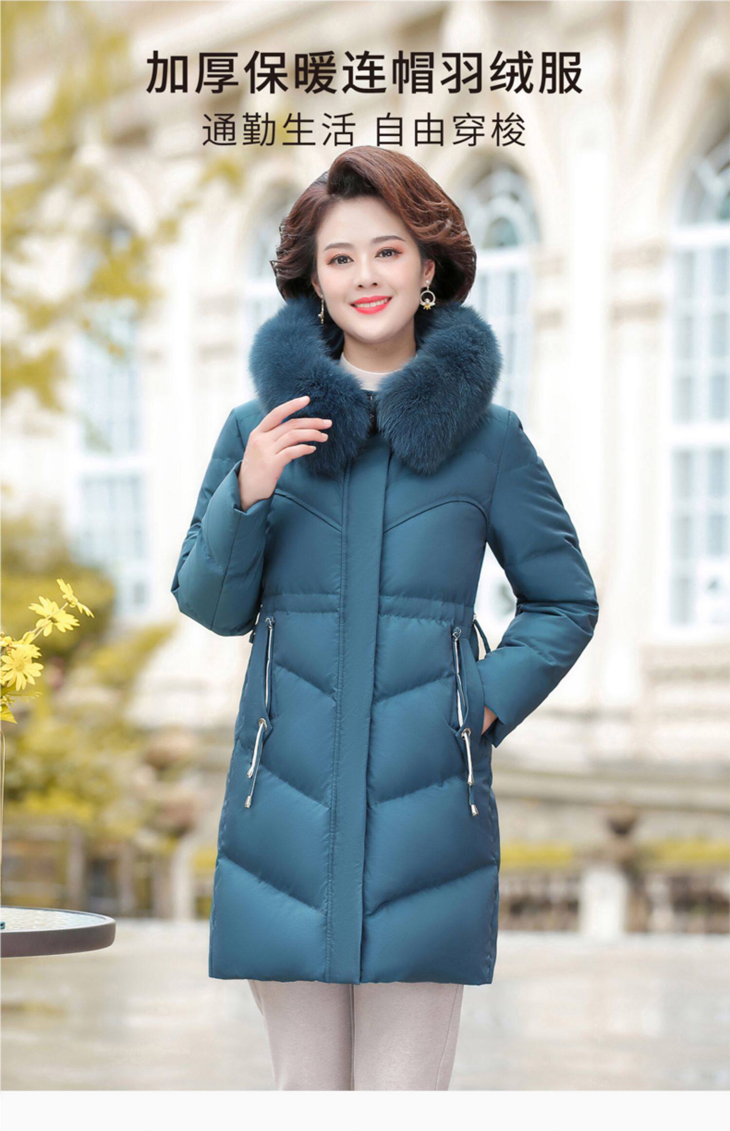 Демисезонный утепленный пуховик для матери с капюшоном, коллекция 2021, для среднего возраста