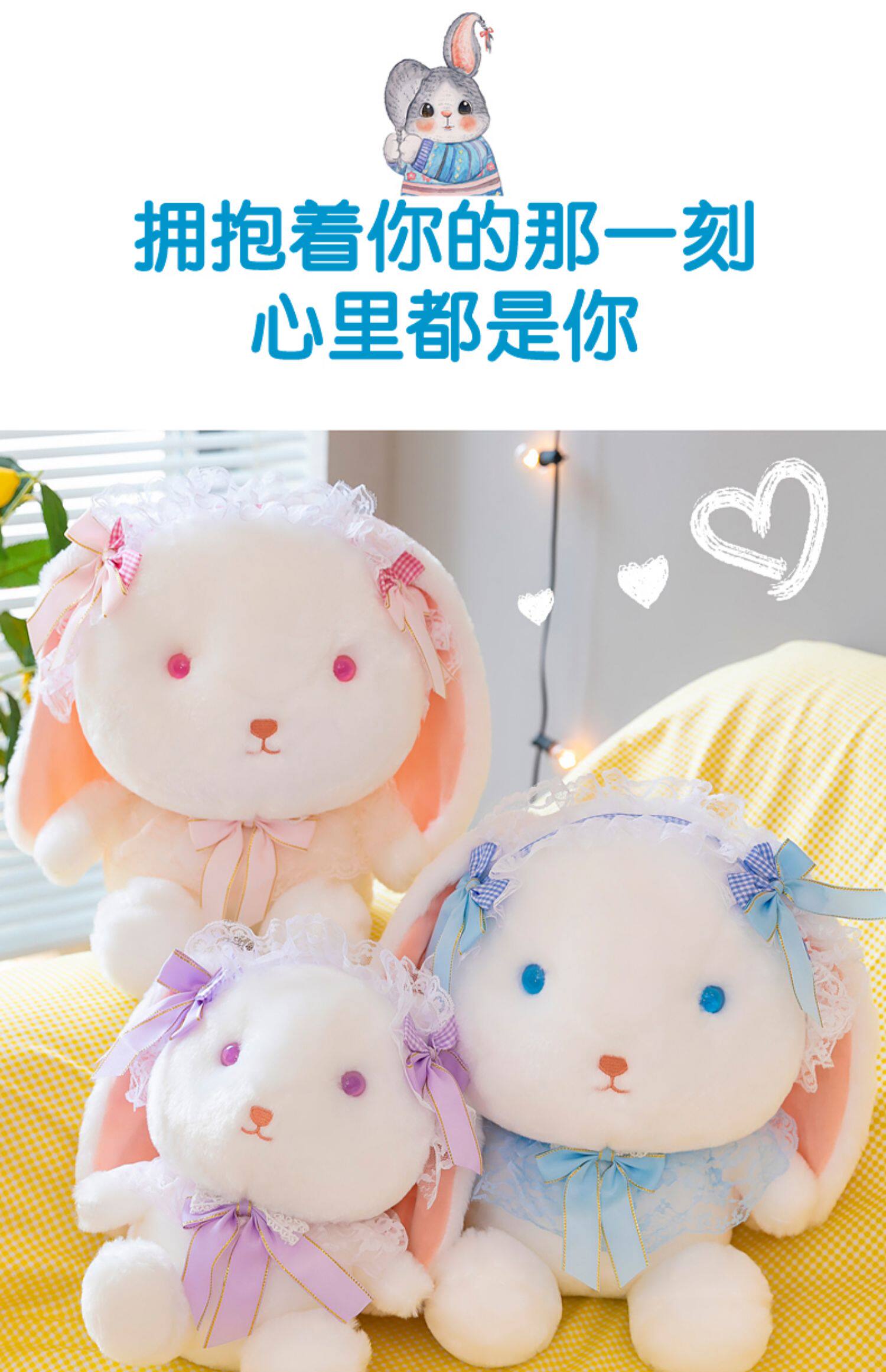 Милый кролик, плюшевая кукла, успокаивающая игрушка, стиль Лолита, белый кролик, подарок на день рождения
