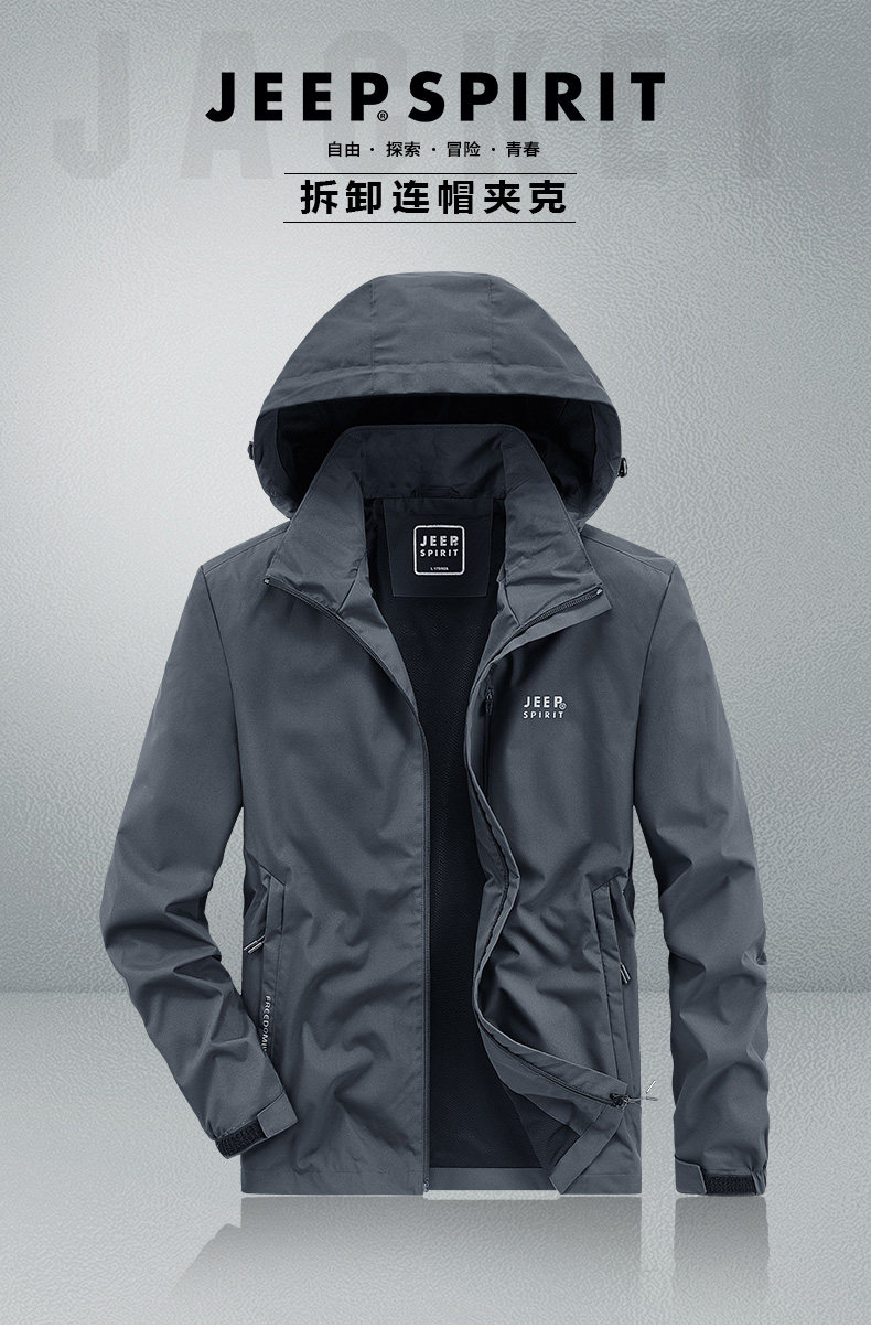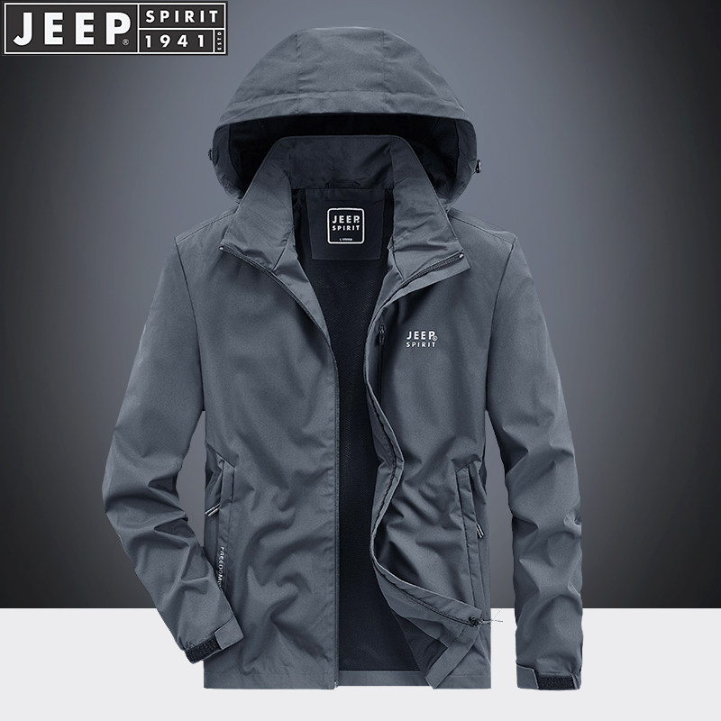 Jeep, джип, осенняя съёмная ветрозащитная эластичная тонкая куртка с капюшоном для отдыха, оверсайз
