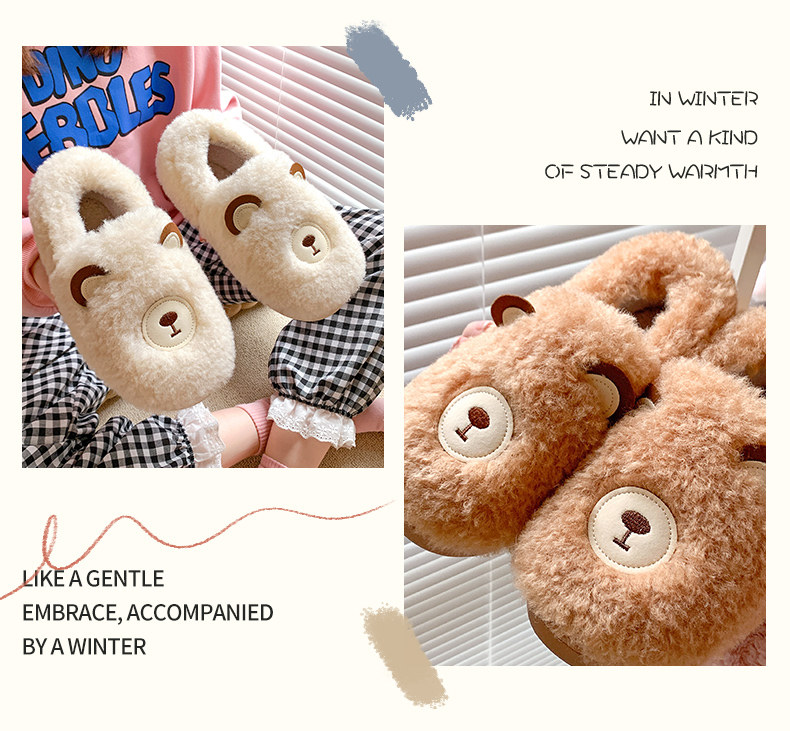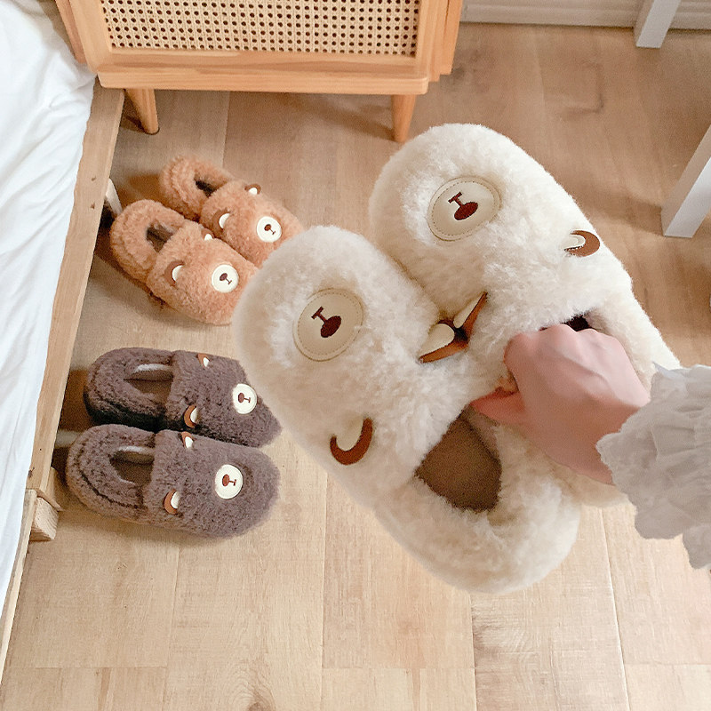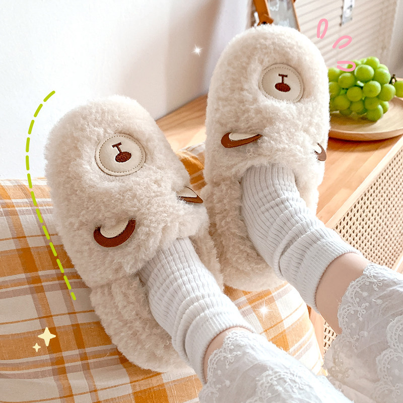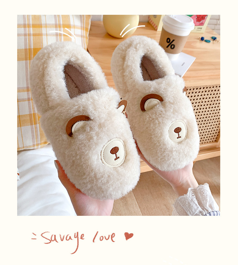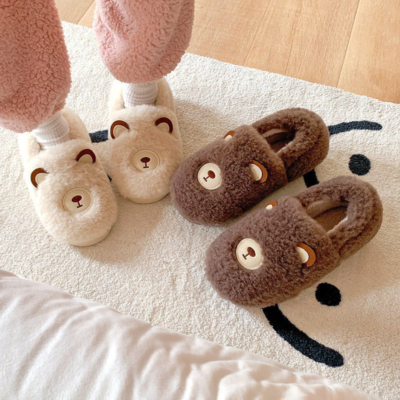 Зимние удерживающие тепло милые нескользящие демисезонные тапочки, плюшевые, для влюбленных
