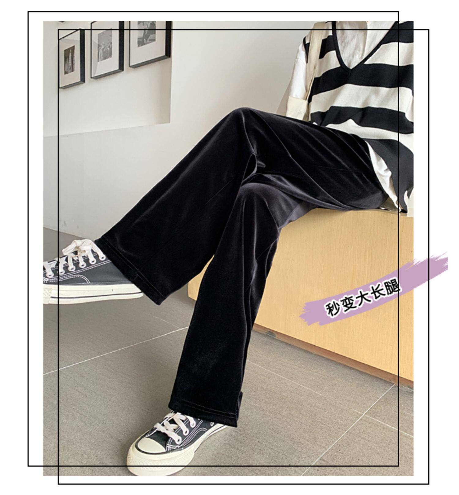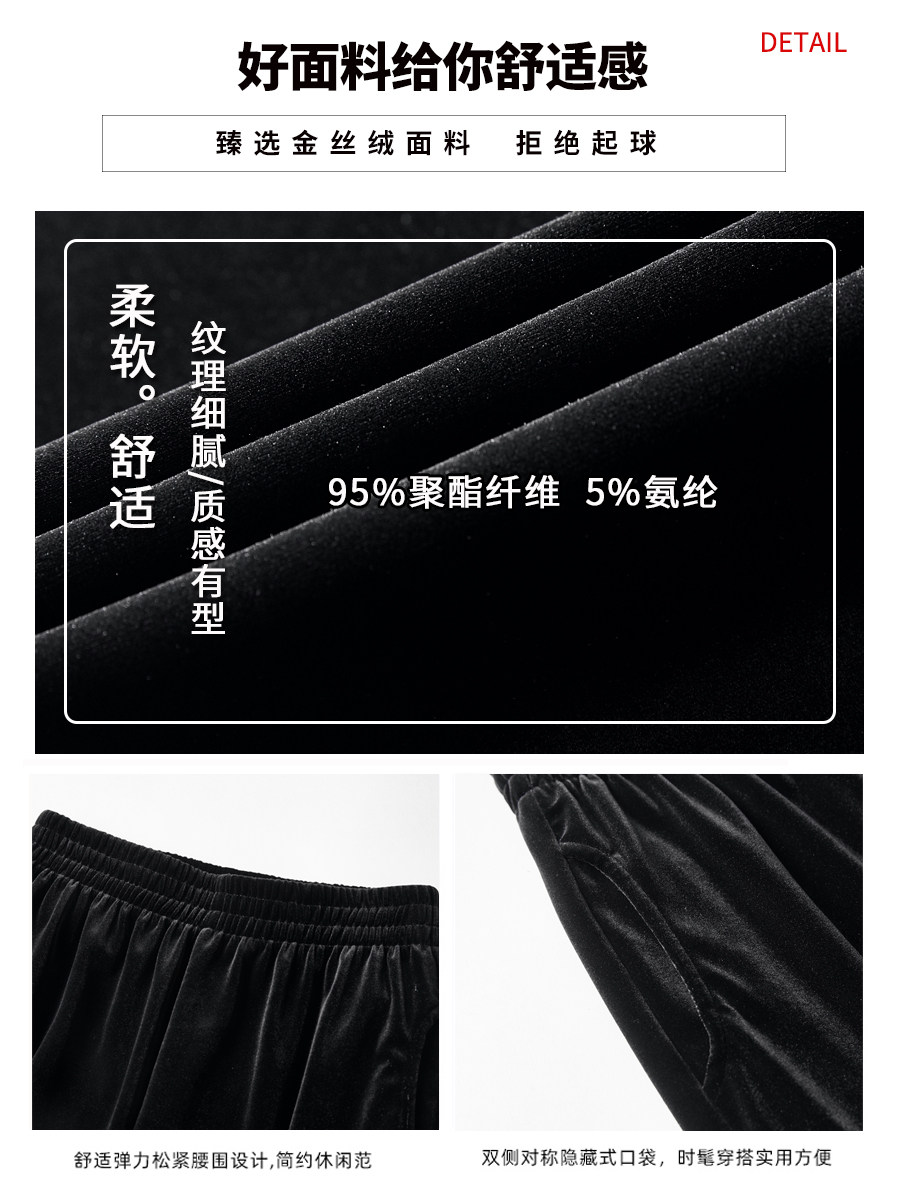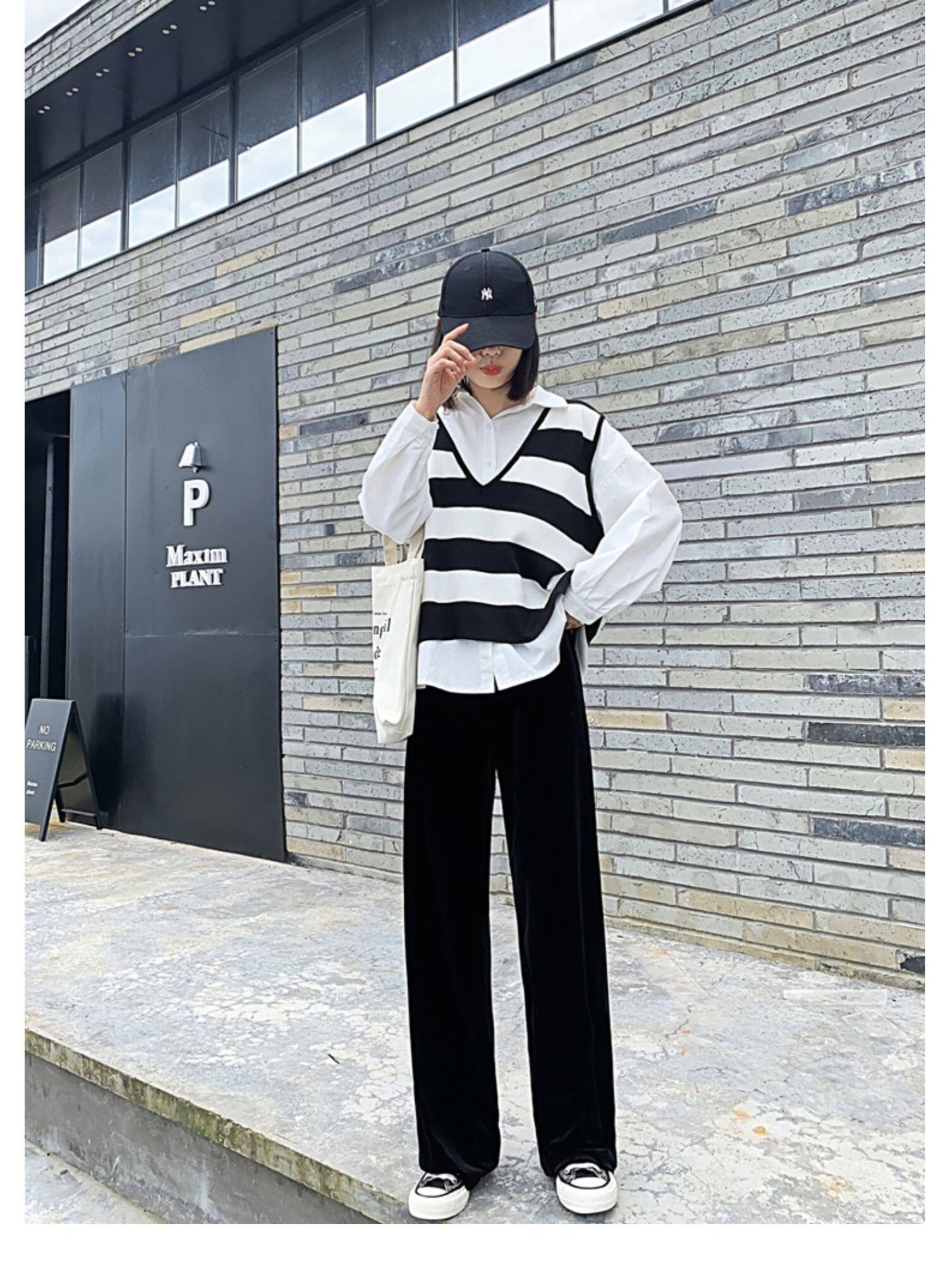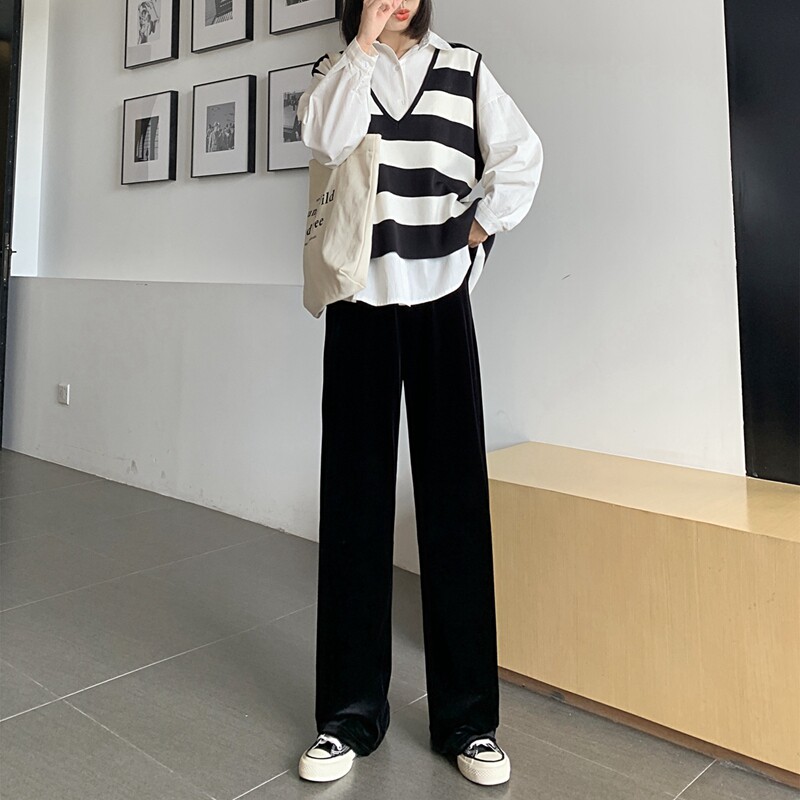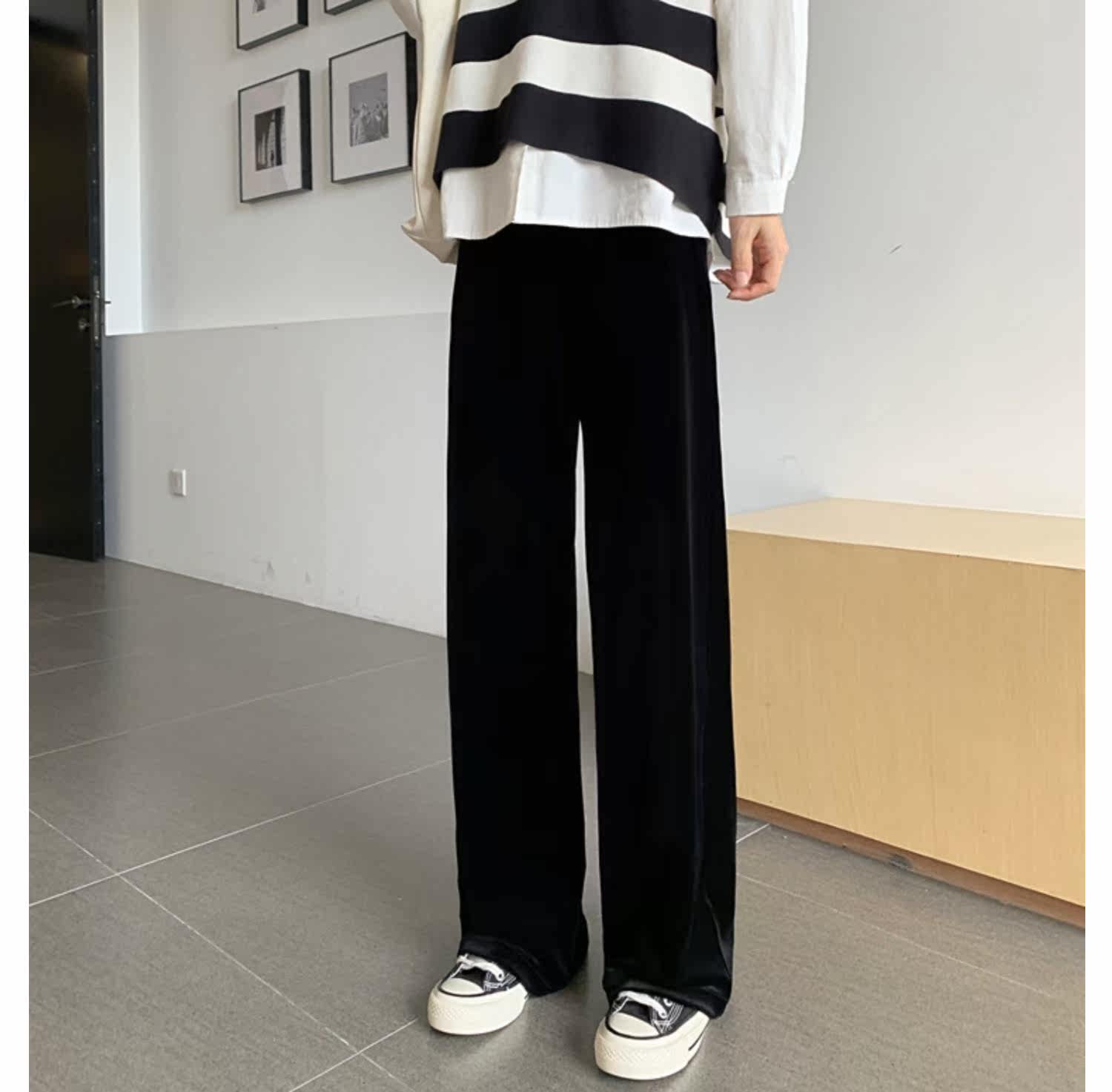Осенние бархатные черные штаны, коллекция 2021, высокая талия, свободный прямой крой