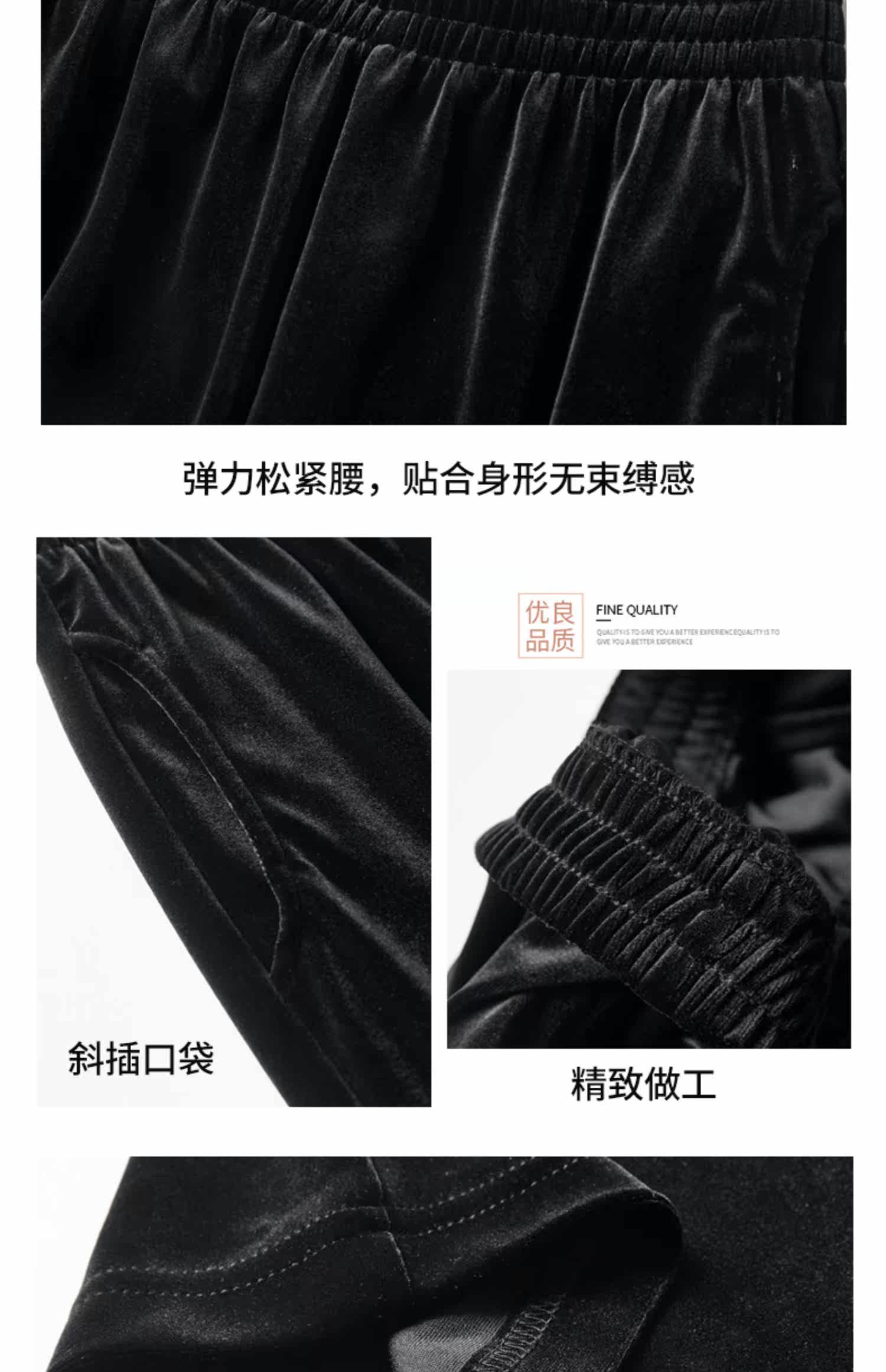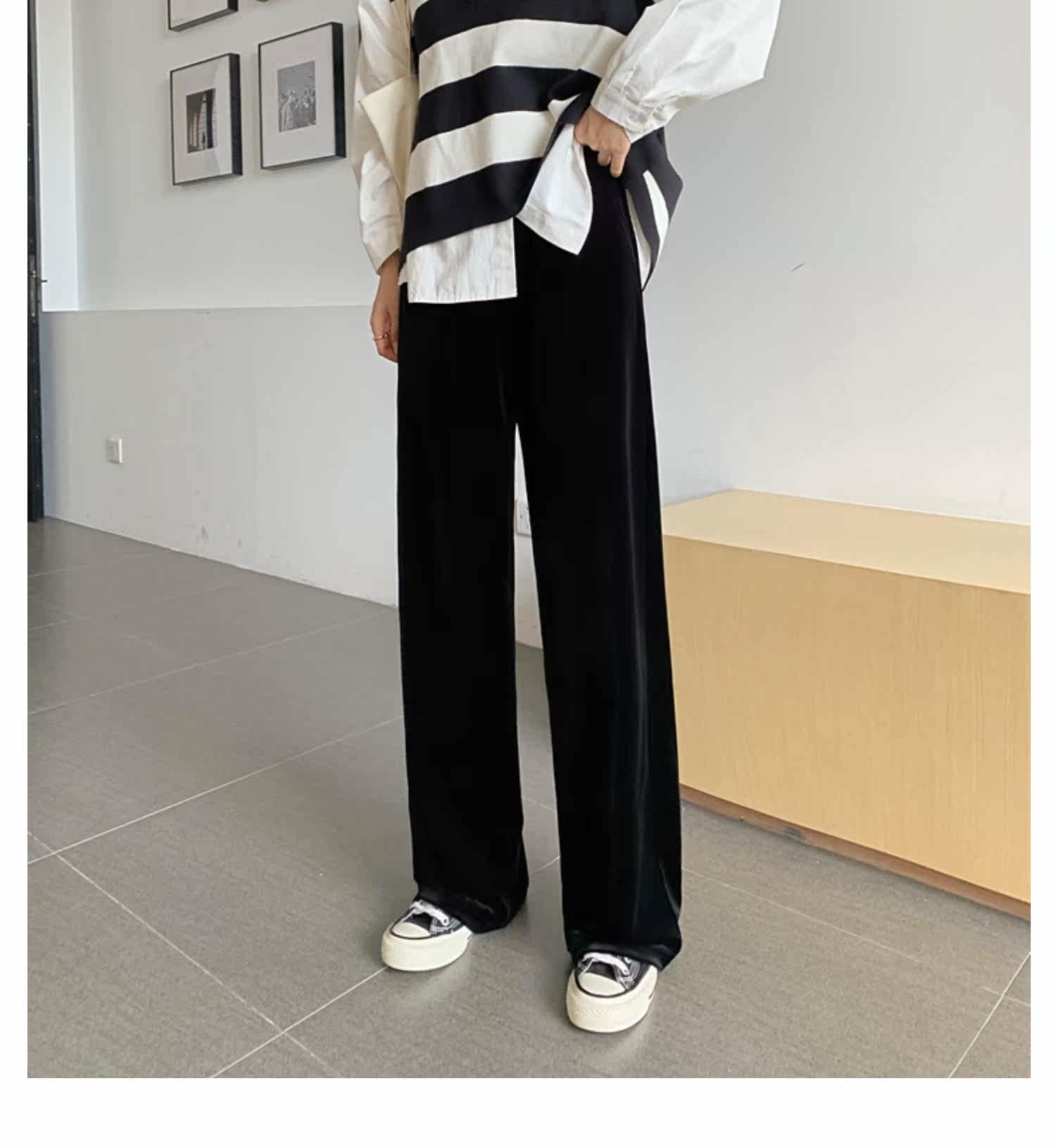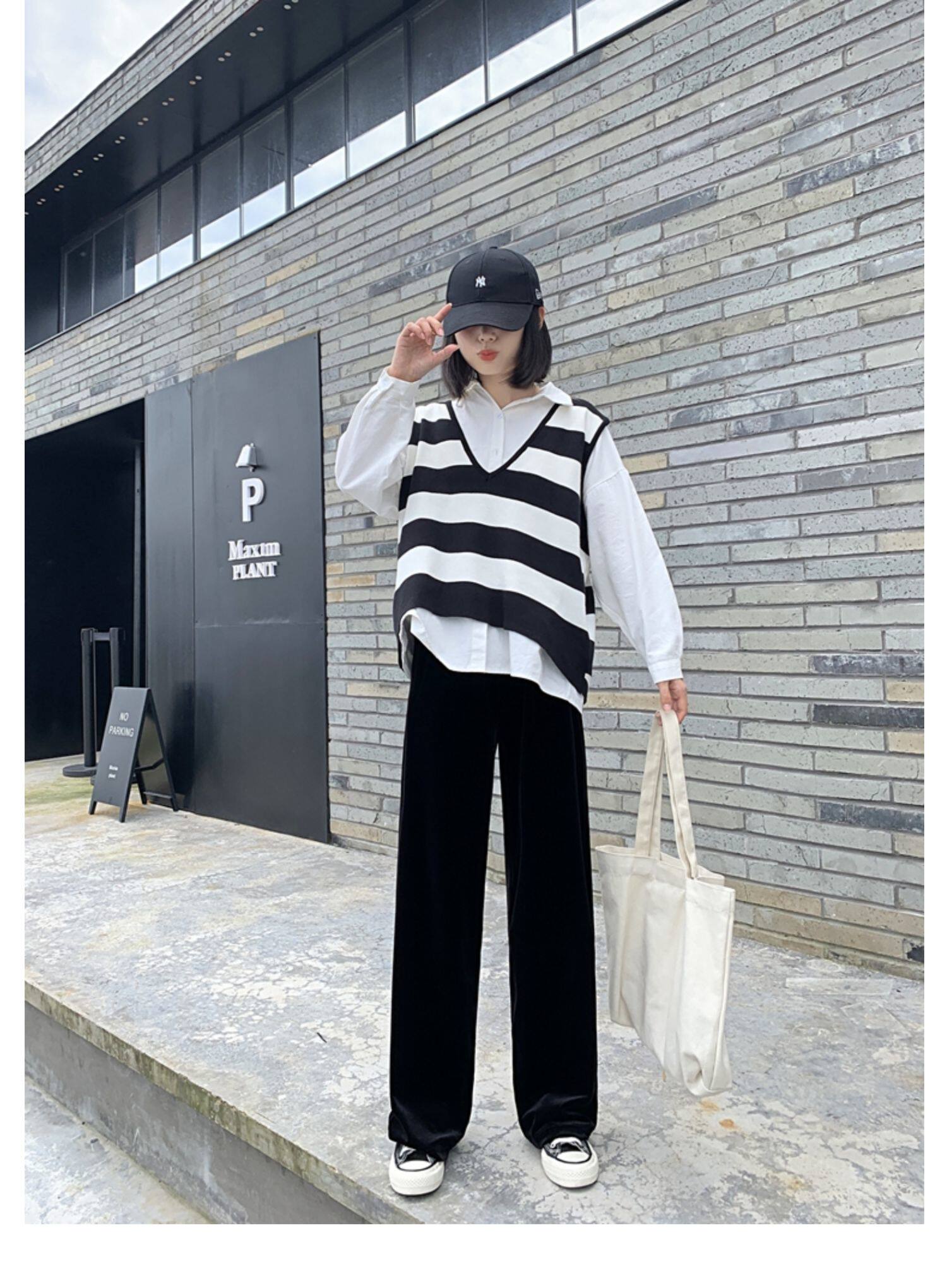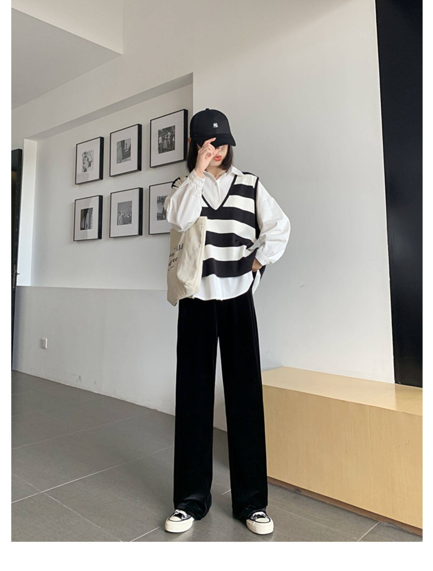 Осенние бархатные черные штаны, коллекция 2021, высокая талия, свободный прямой крой