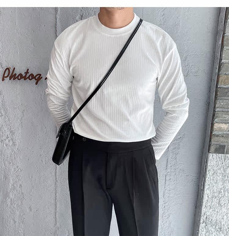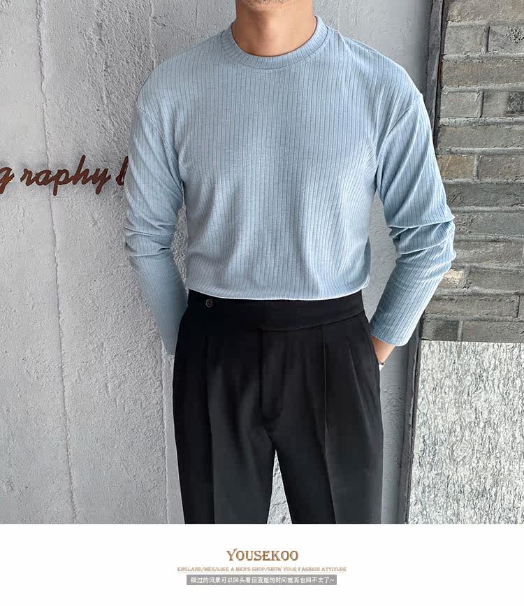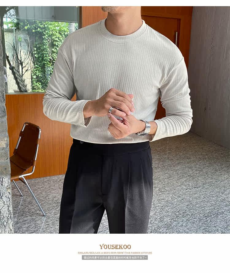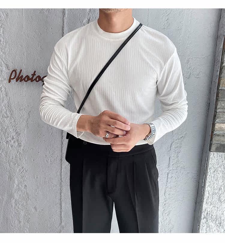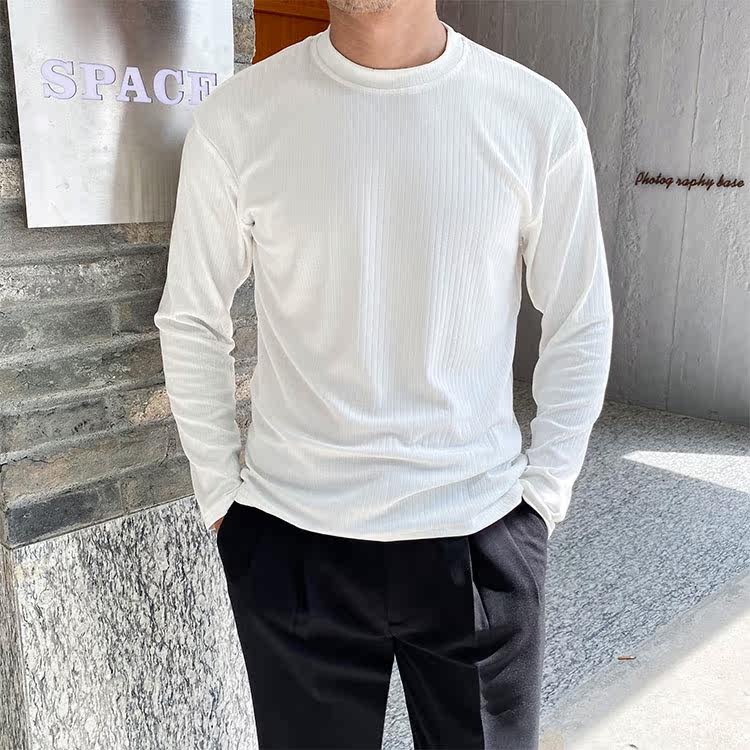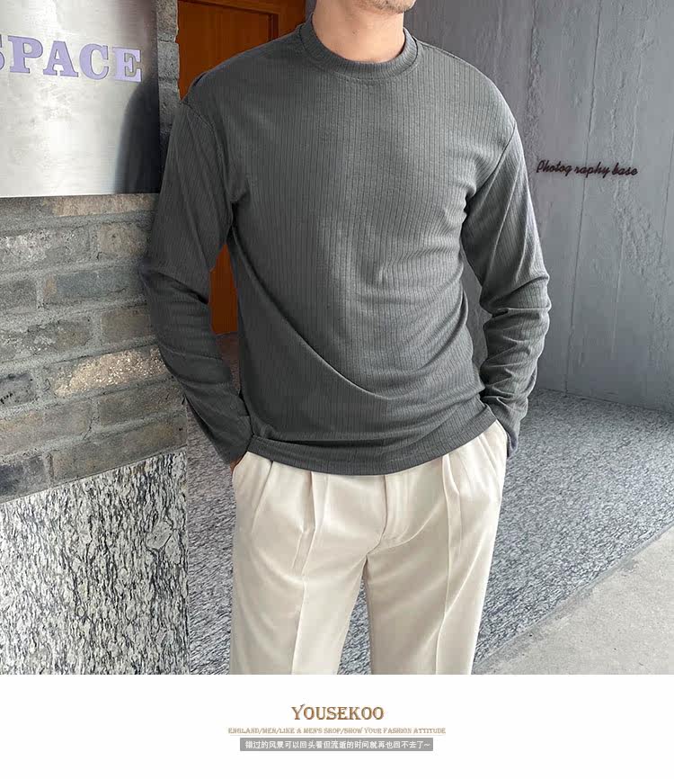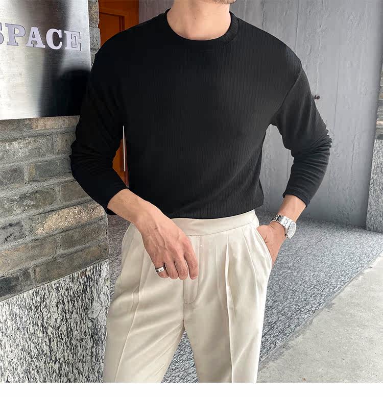 Мужской трендовый универсальный тонкий демисезонный базовый приятный телу лонгслив с круглым воротником для отдыха, оверсайз, простой и элегантный дизайн
