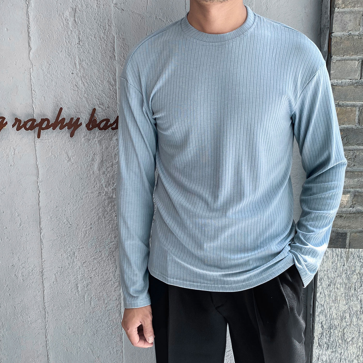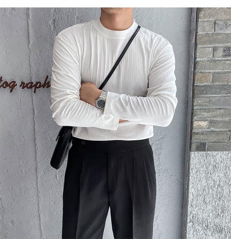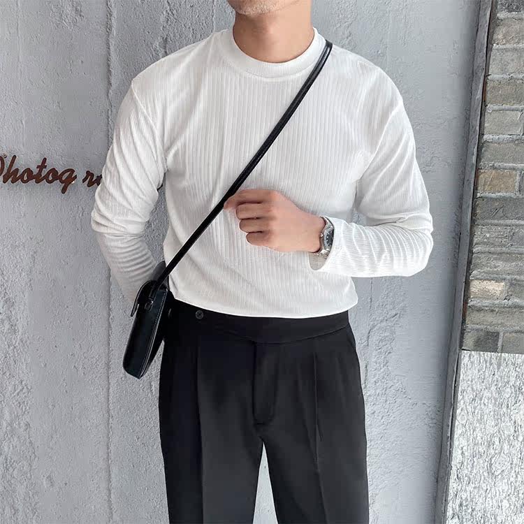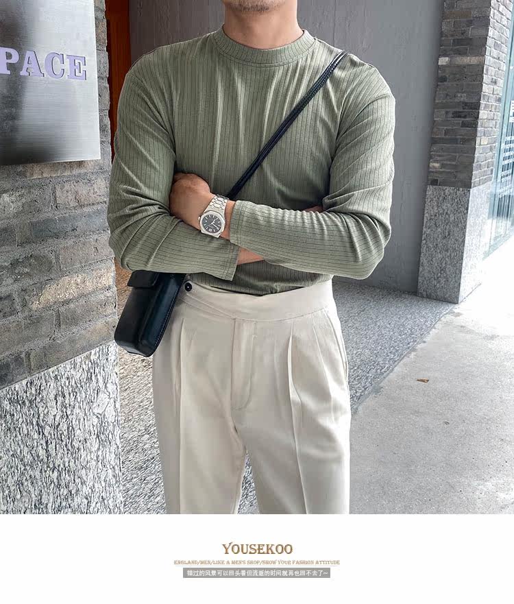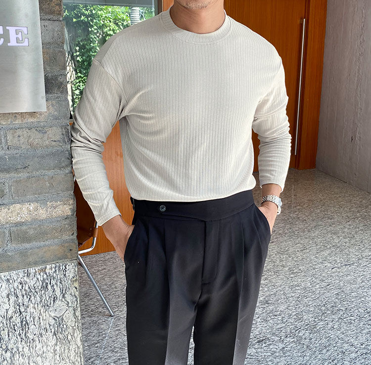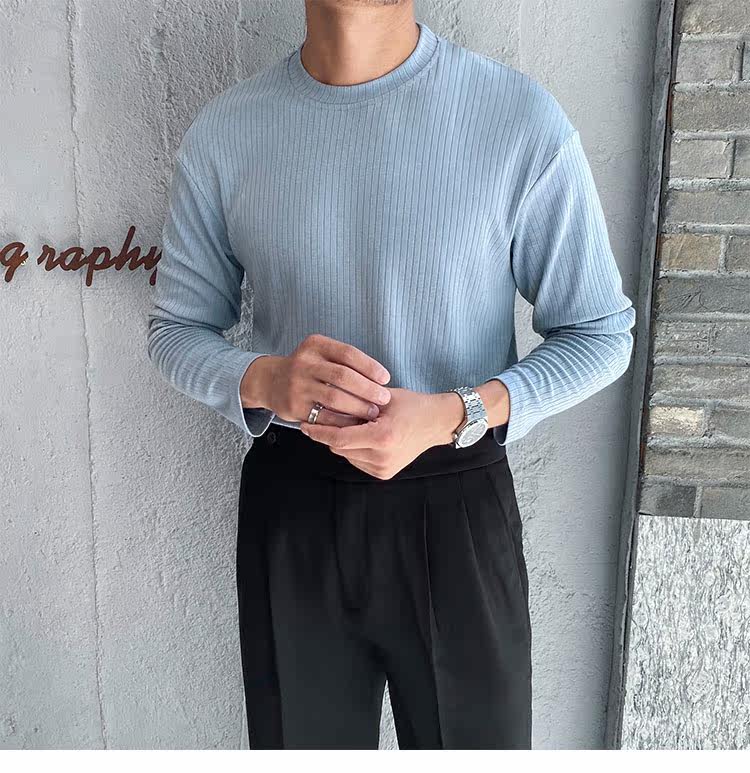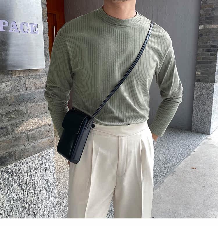 Мужской трендовый универсальный тонкий демисезонный базовый приятный телу лонгслив с круглым воротником для отдыха, оверсайз, простой и элегантный дизайн
