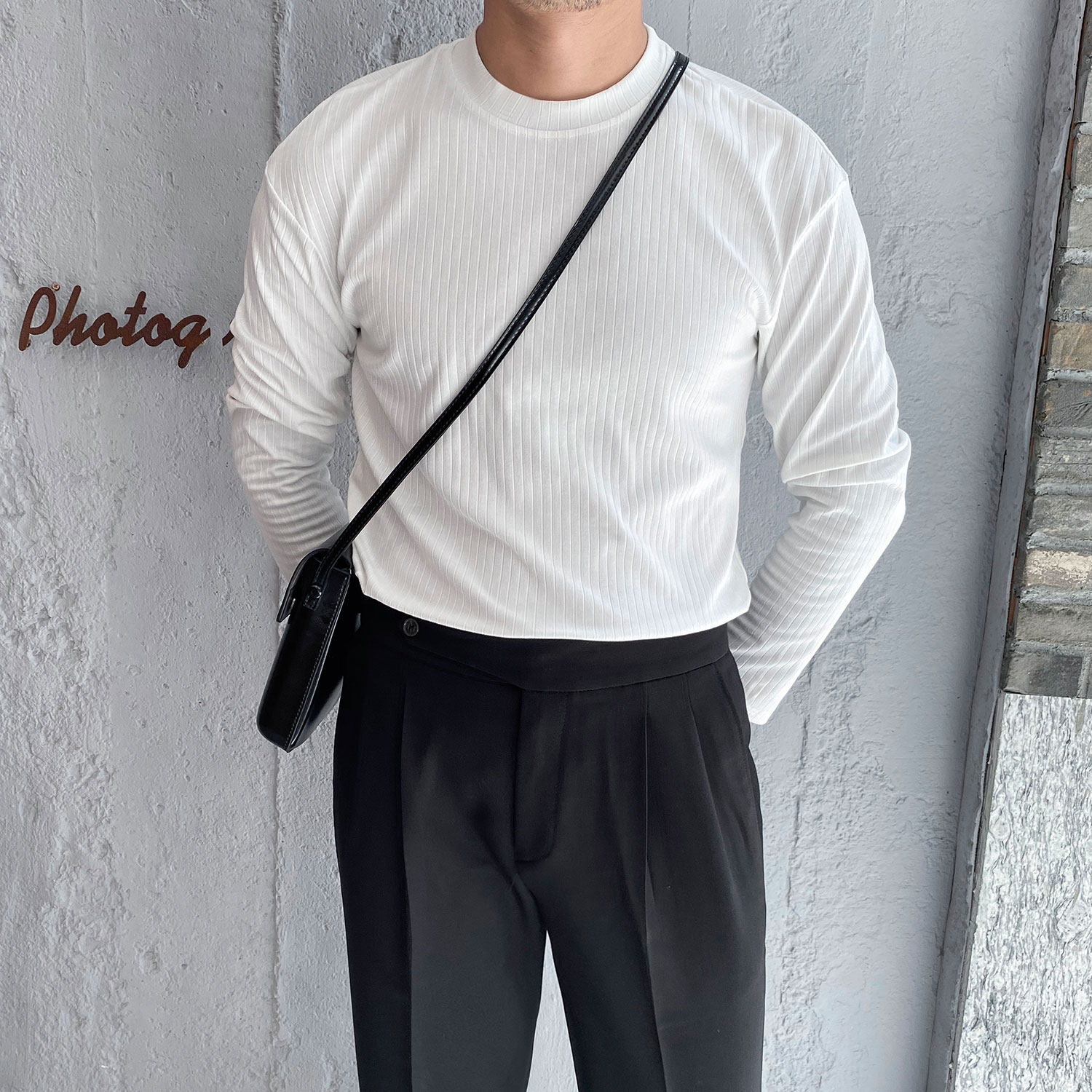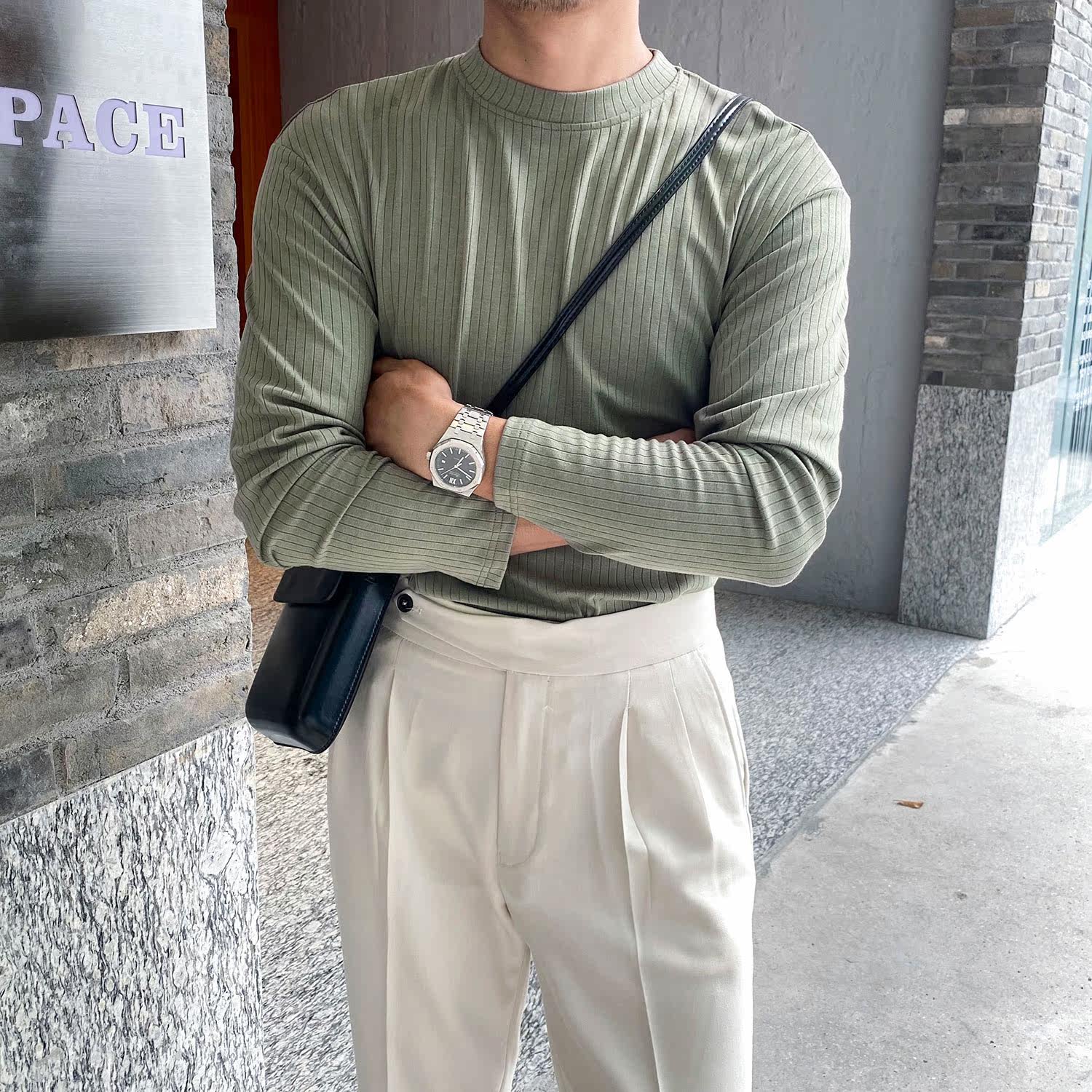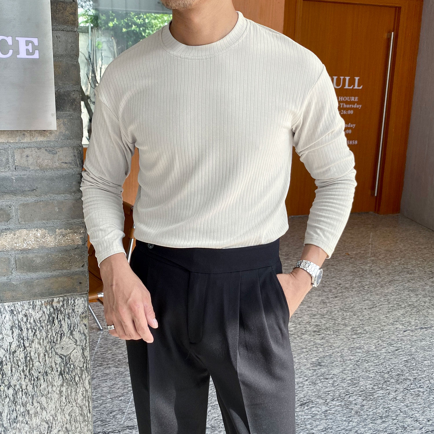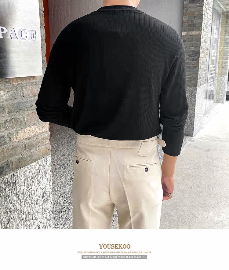 Мужской трендовый универсальный тонкий демисезонный базовый приятный телу лонгслив с круглым воротником для отдыха, оверсайз, простой и элегантный дизайн