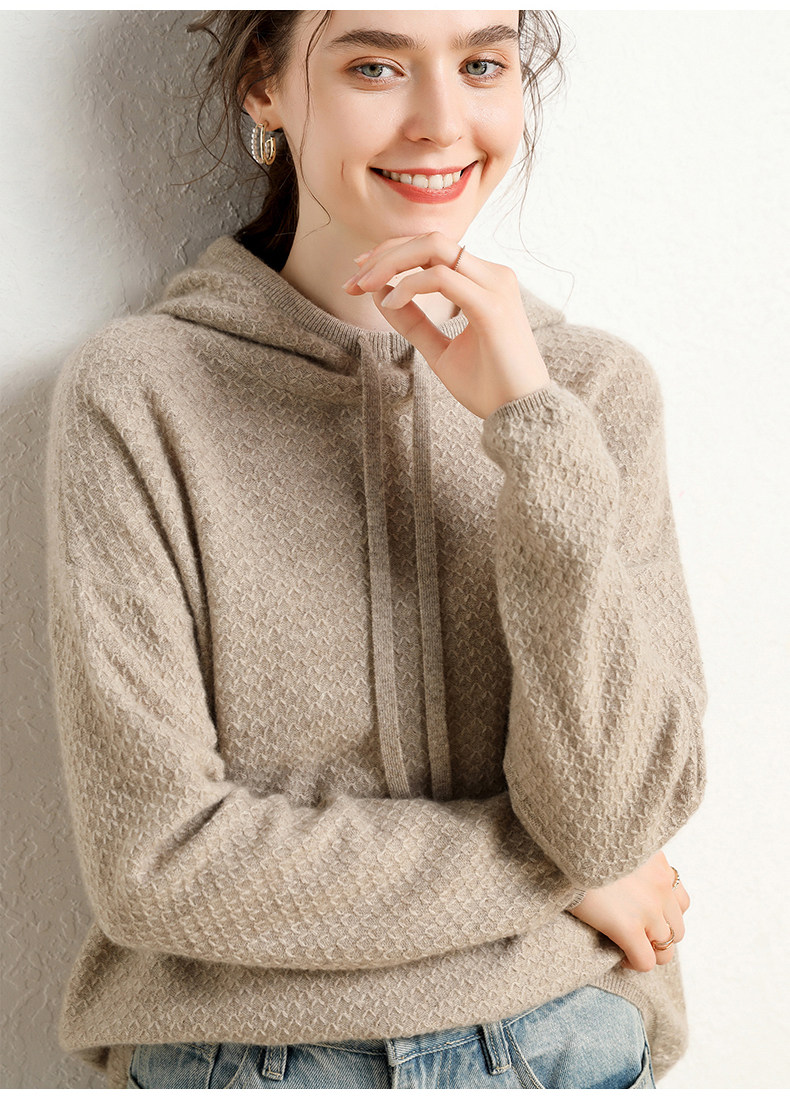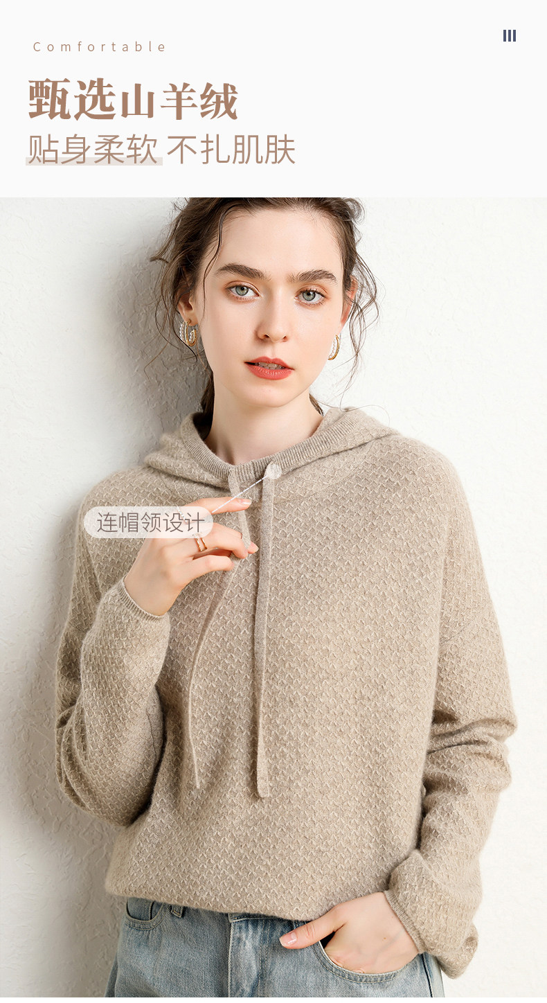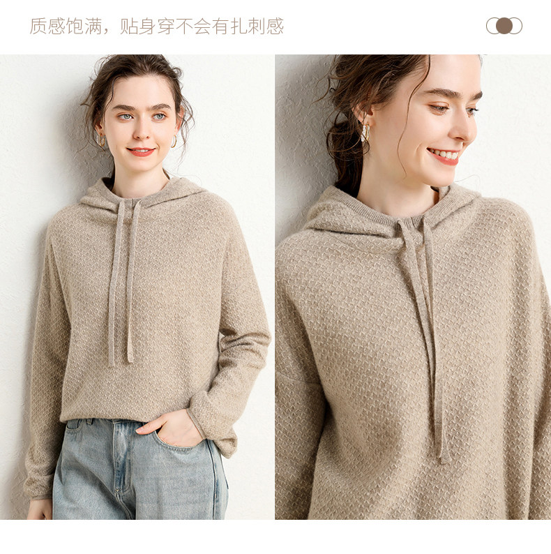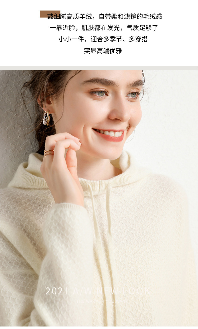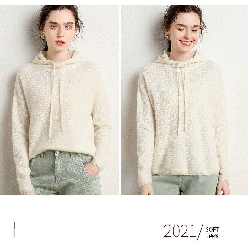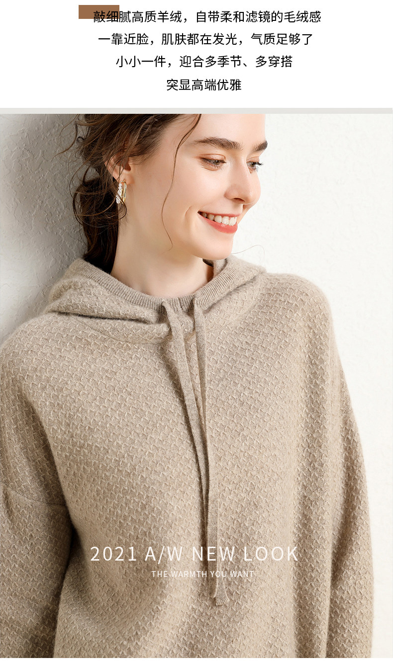 Кашемировый свитер с капюшоном, демисезонный короткий трикотажный удерживающий тепло балахон, шерстяная толстовка, коллекция 2021
