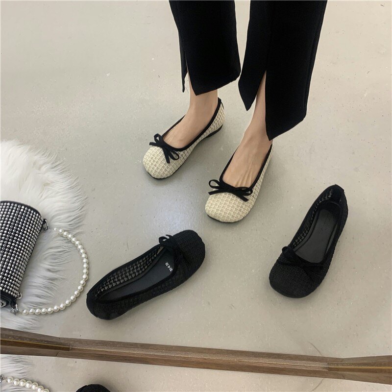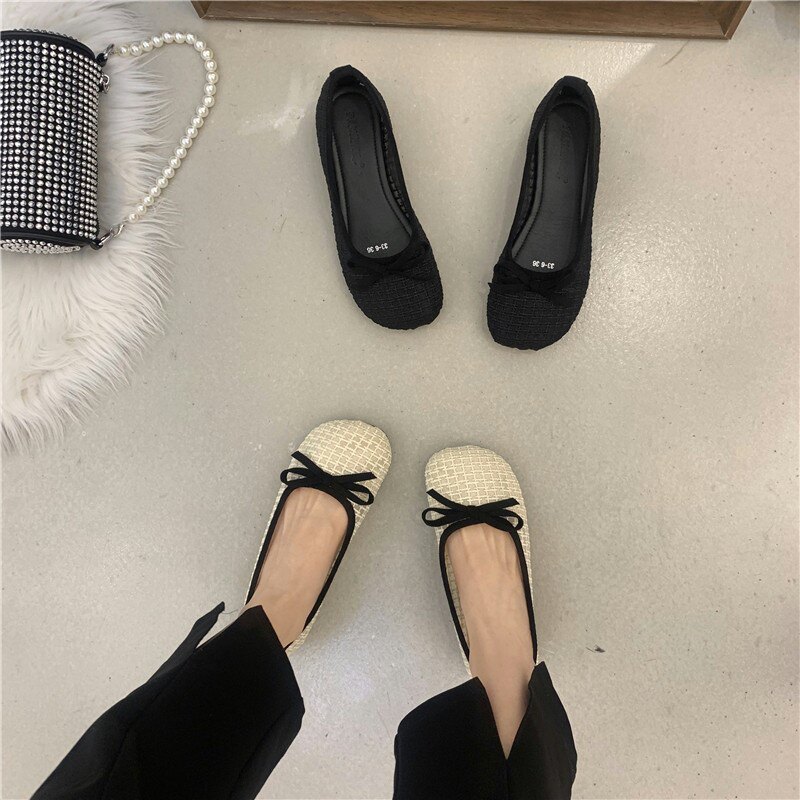 Сладкий лук, кусок, плоские туфли Doudou Женская осень 2021 Новая знаменитая легкая круглая туфли для одиночных туфлей женская бабушка обувь