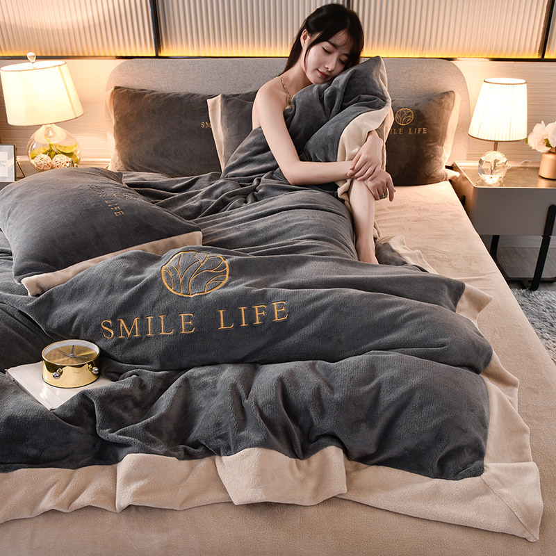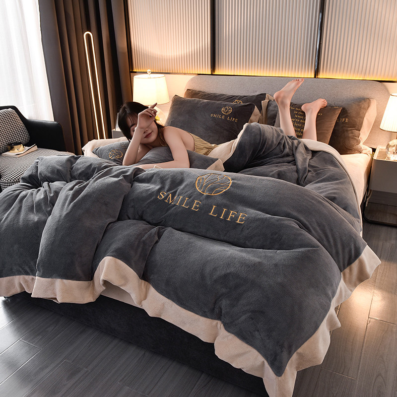Бархатные джинсы с начесом, зимний коралловый бархатный комплект, удерживающий тепло лебедь, пододеяльник, покрывало, 4 предмета