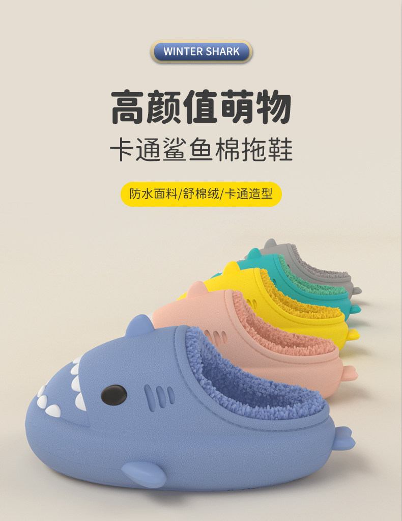 Водонепроницаемая акула, мужские демисезонные плюшевые зимние тапочки, коллекция 2021, для влюбленных