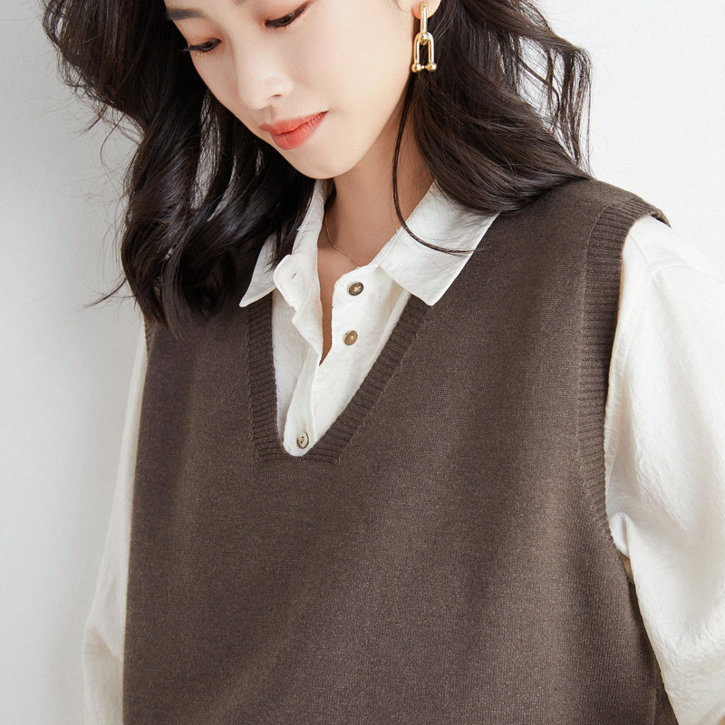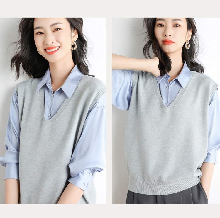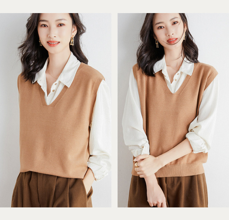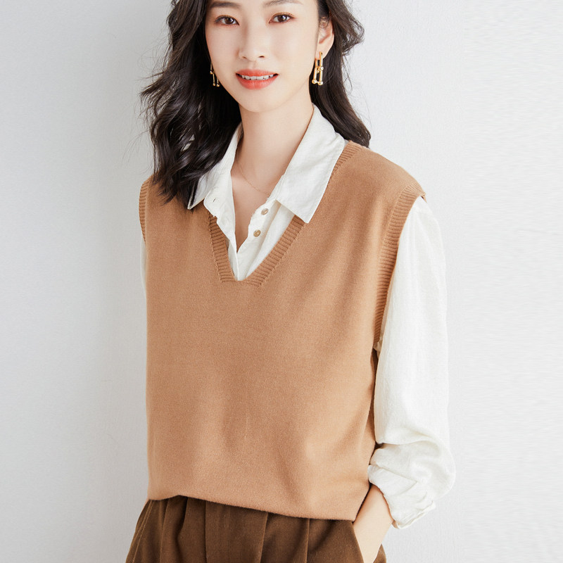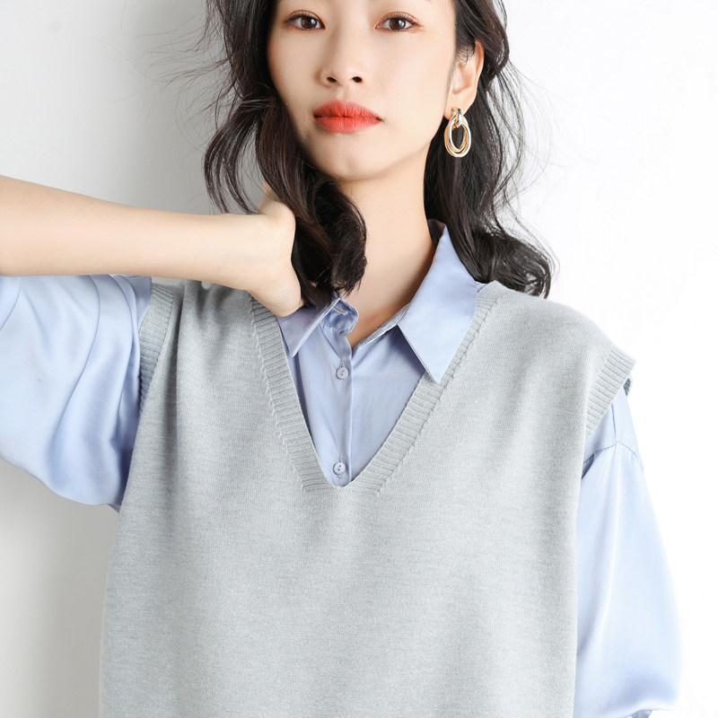 Кашемировый комплект, трикотажный жилет, демисезонный корейский базовый свитер, коллекция 2021