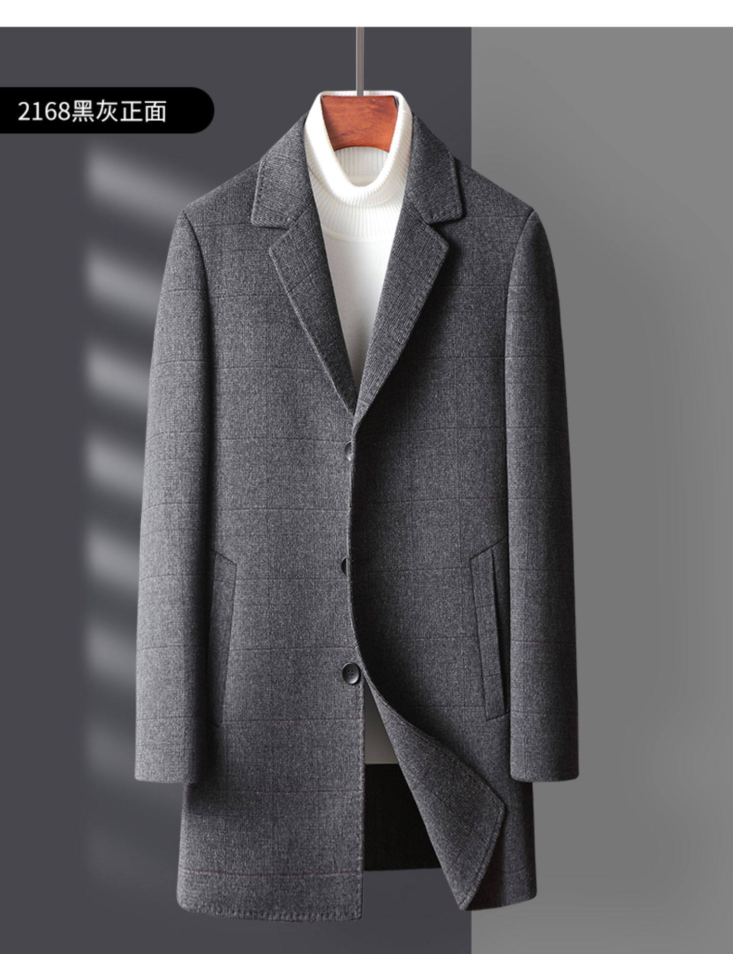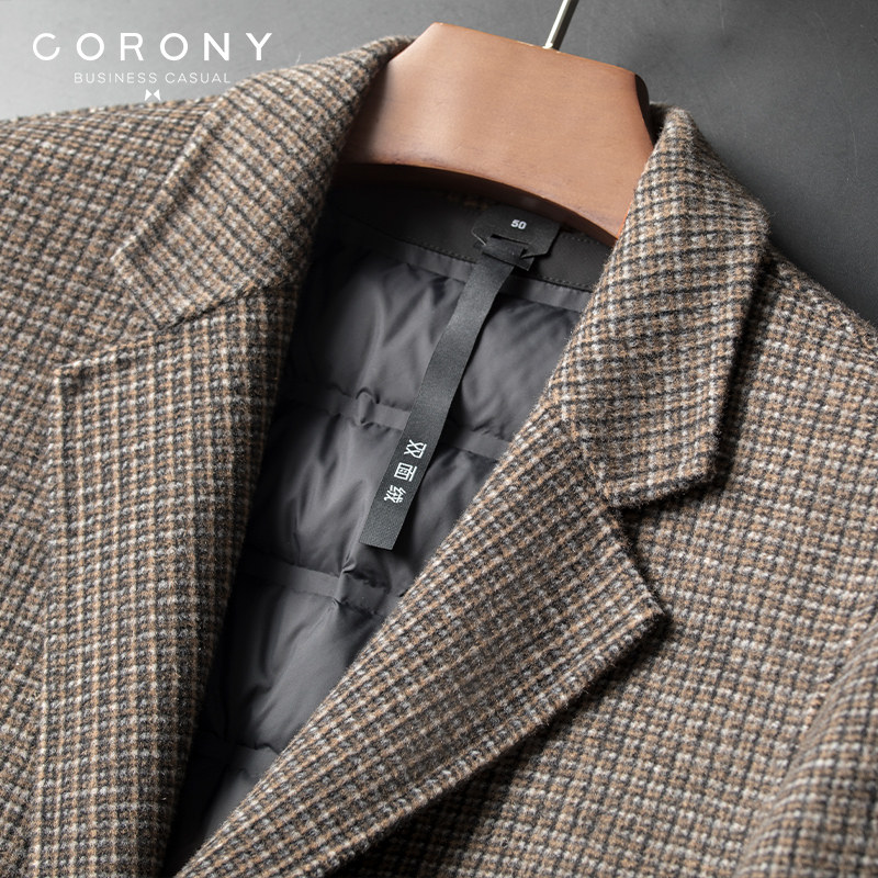Демисезонное съемное шерстяное пальто, длинная двусторонная куртка в английском стиле с пухом, средней длины, увеличенная толщина