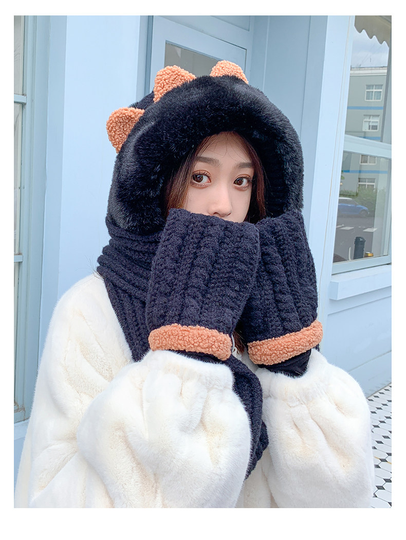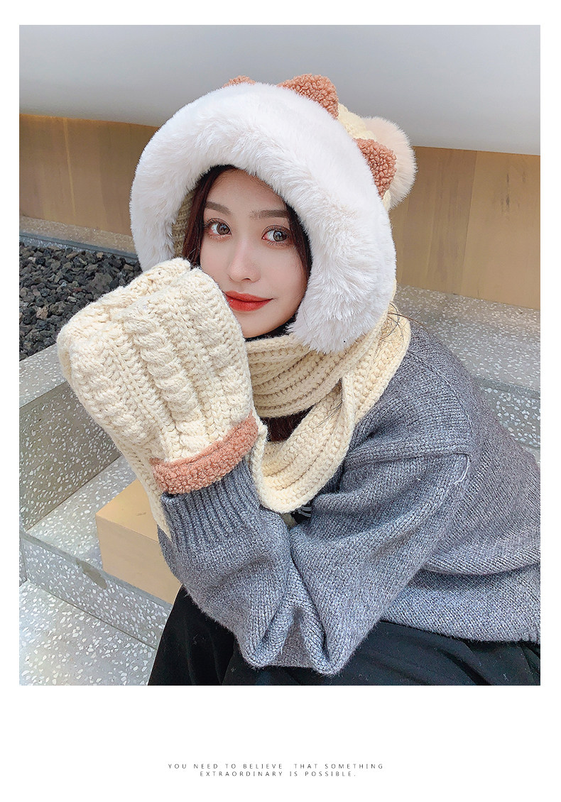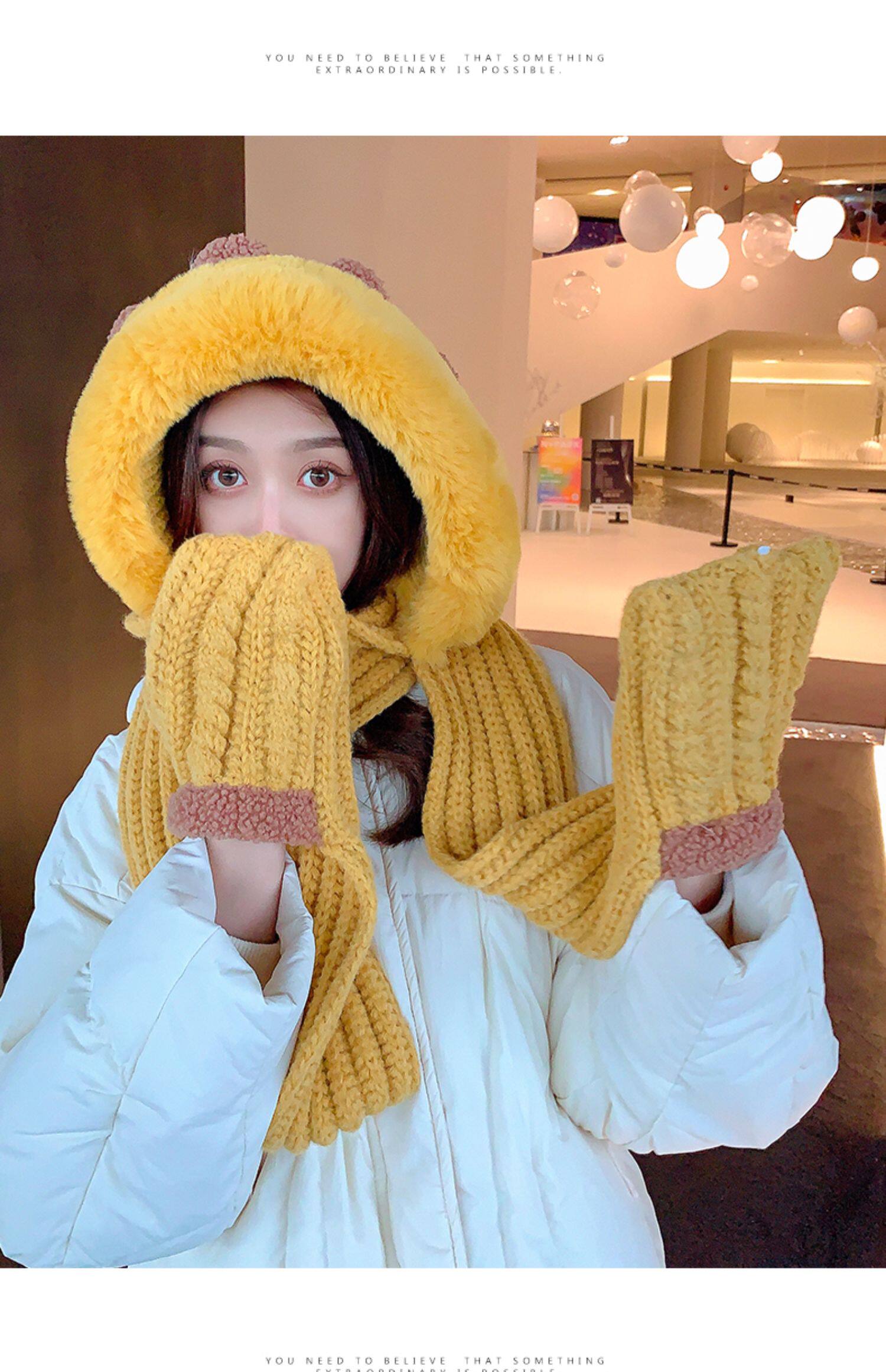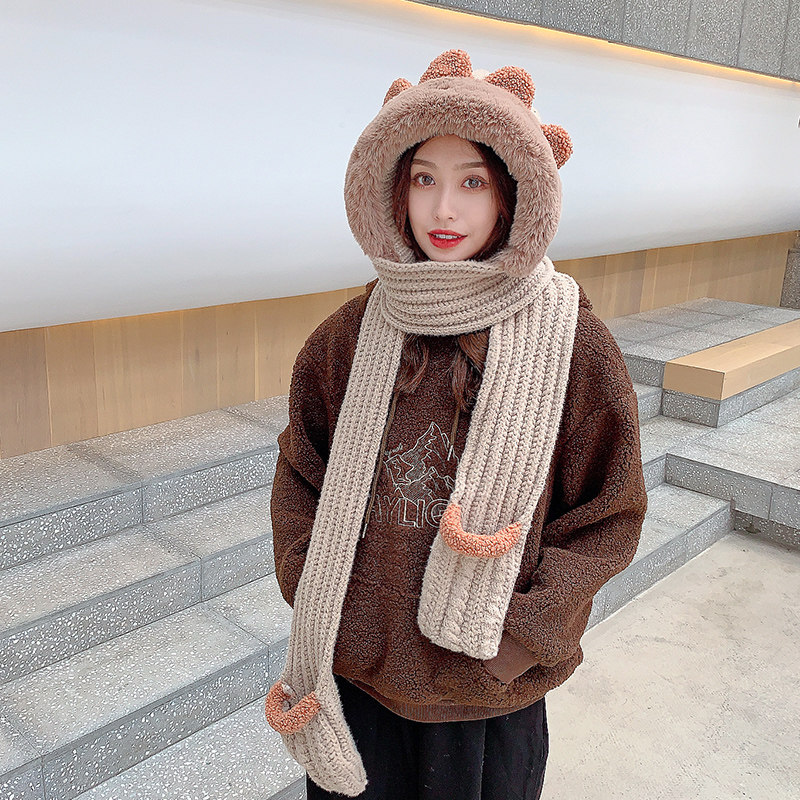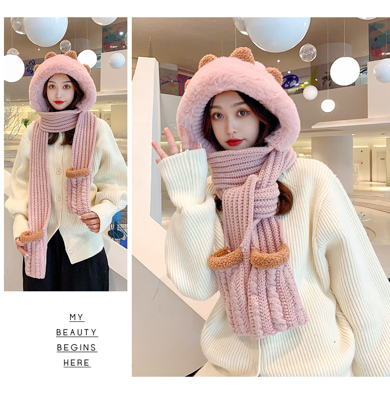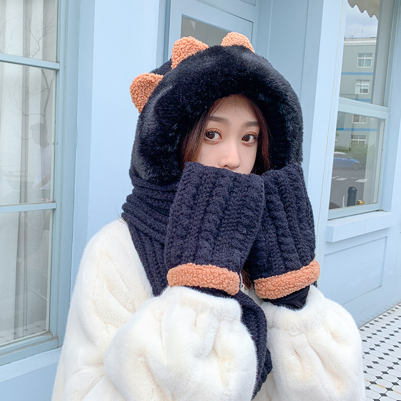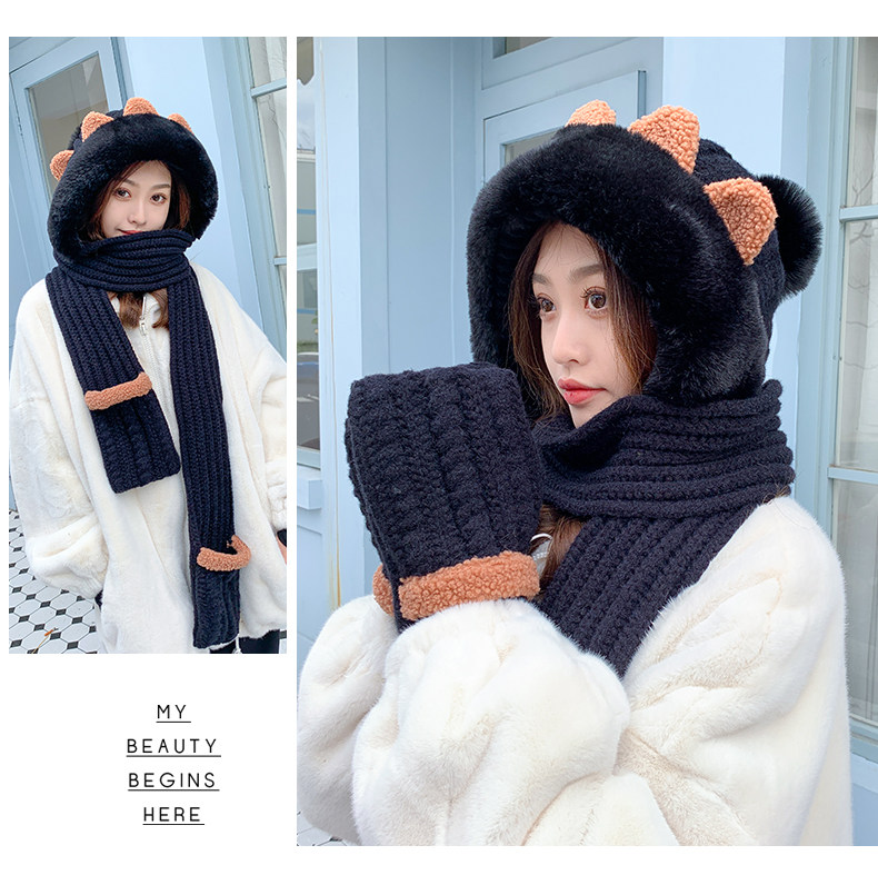 Демисезонная милая шапка, шарф, бархатные перчатки, удерживающий тепло шерстяной комплект, увеличенная толщина, 3 предмета