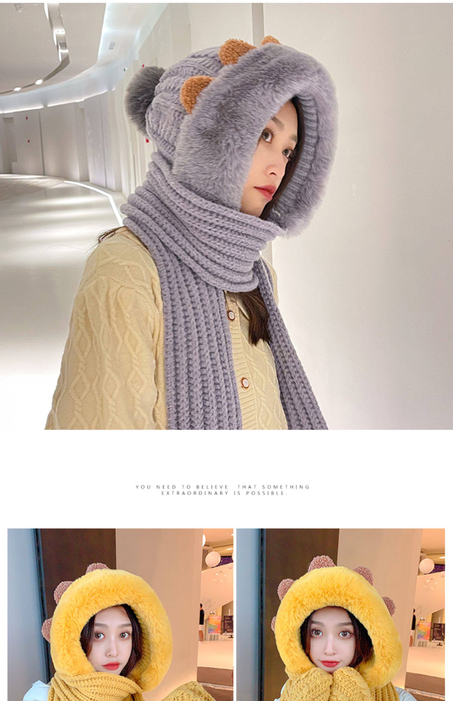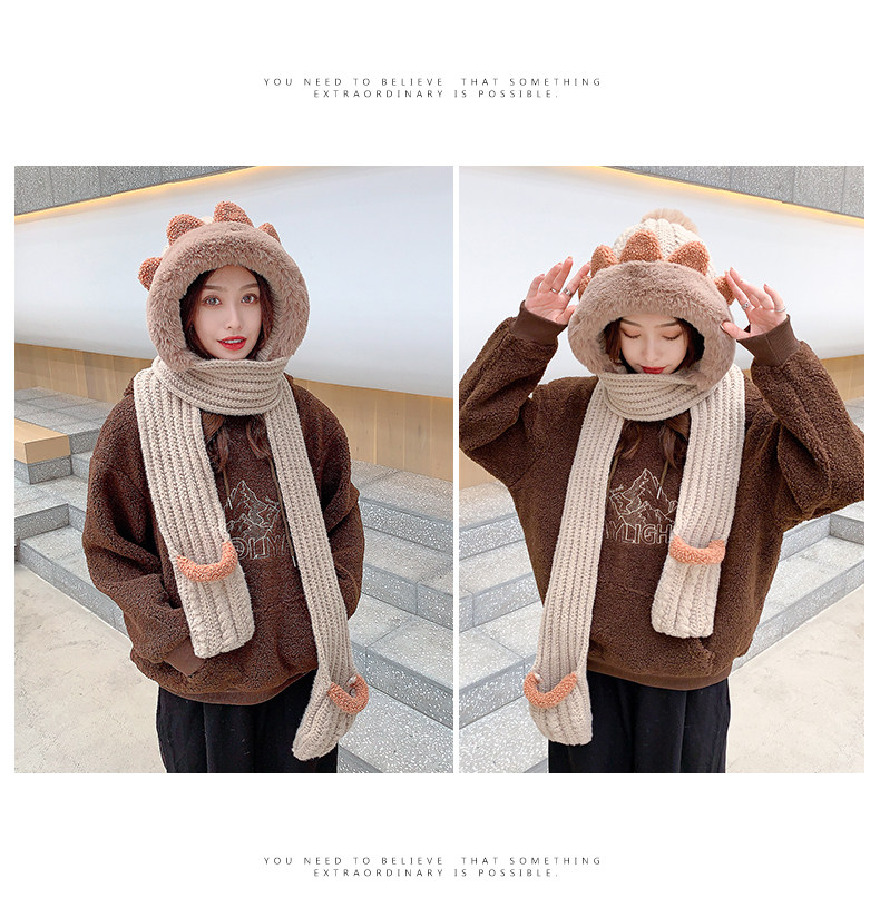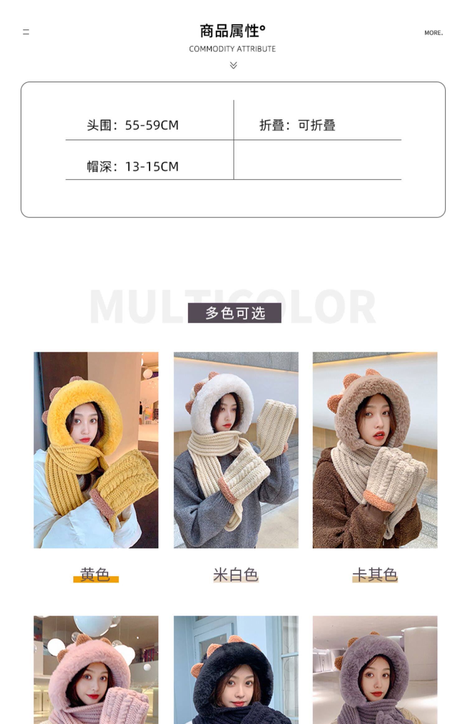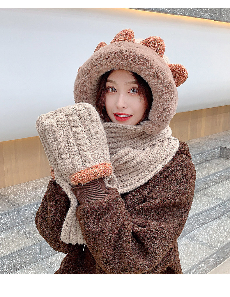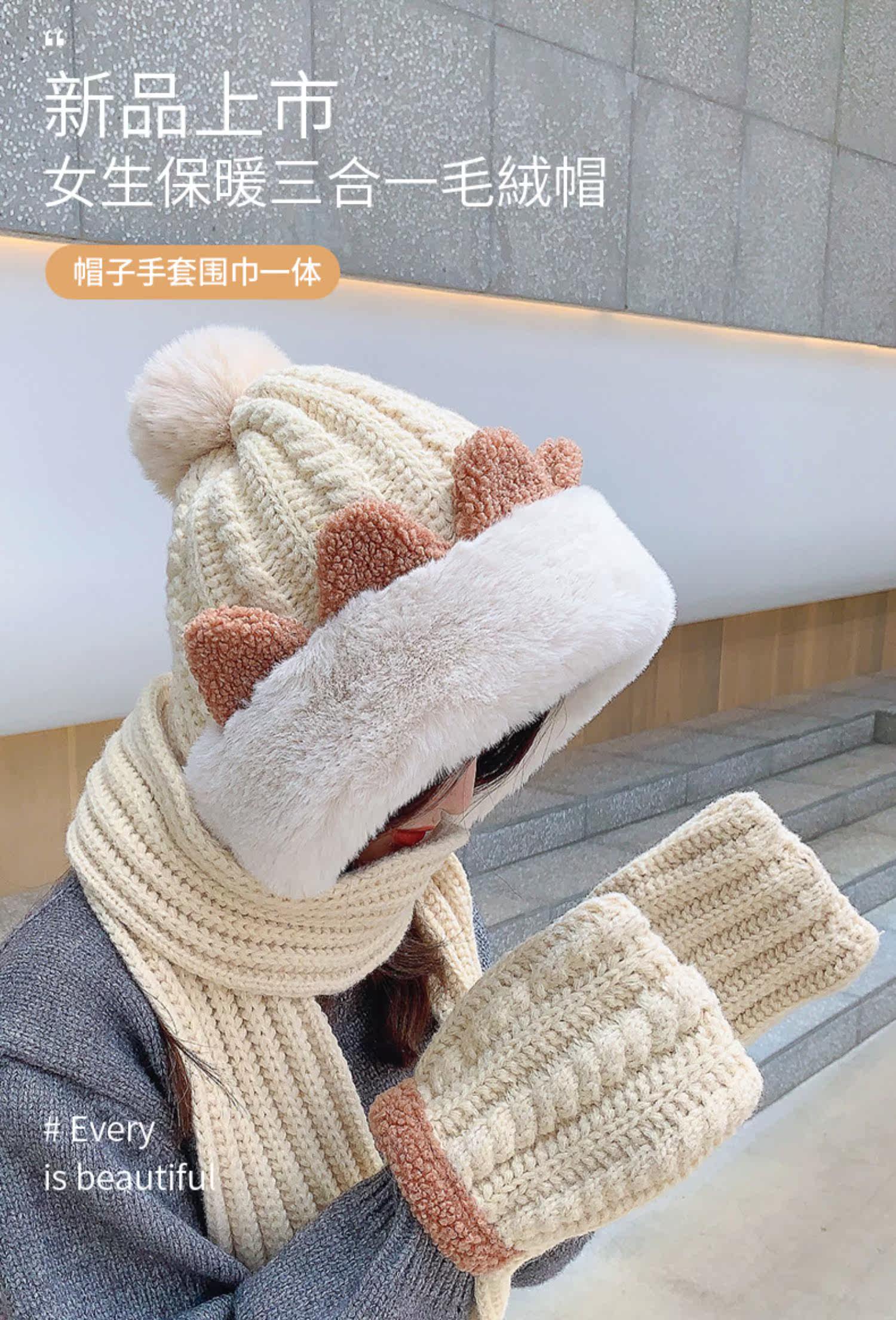Демисезонная милая шапка, шарф, бархатные перчатки, удерживающий тепло шерстяной комплект, увеличенная толщина, 3 предмета
