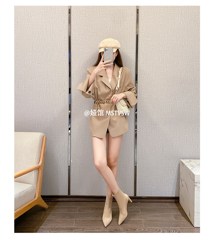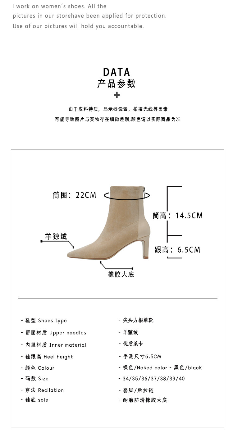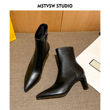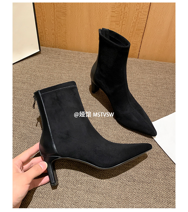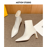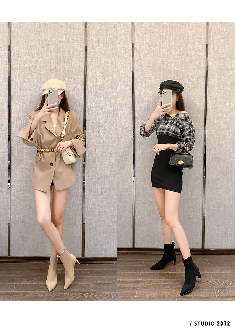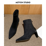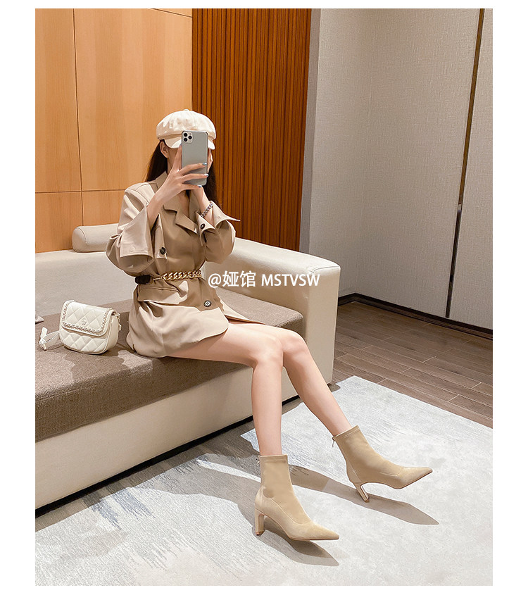 Высокие замшевые эластичные демисезонные ботинки с заостренным носом, нюдовые короткие сапоги, ботильоны, французский стиль