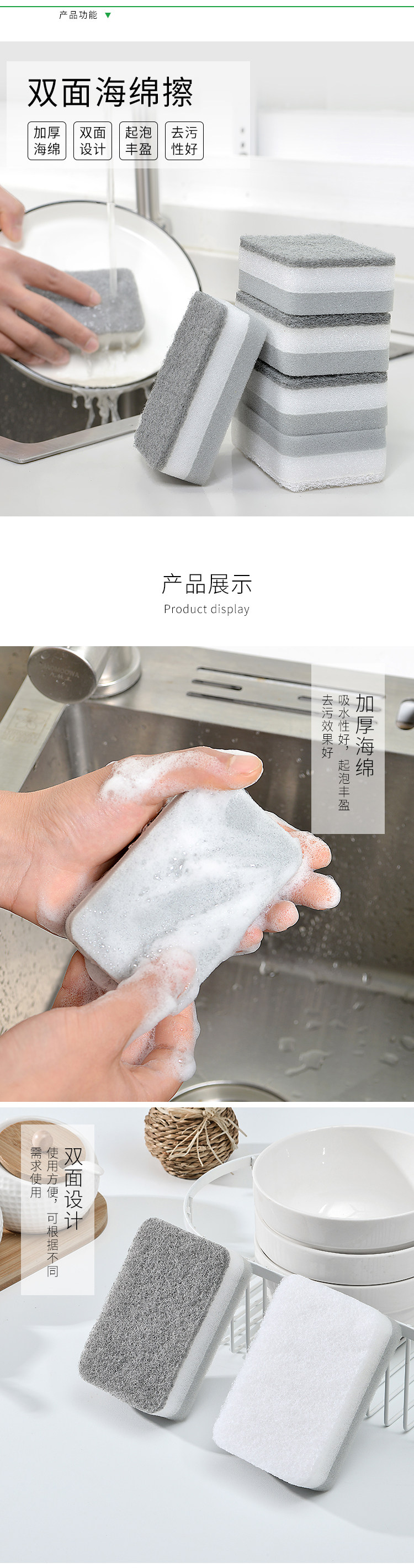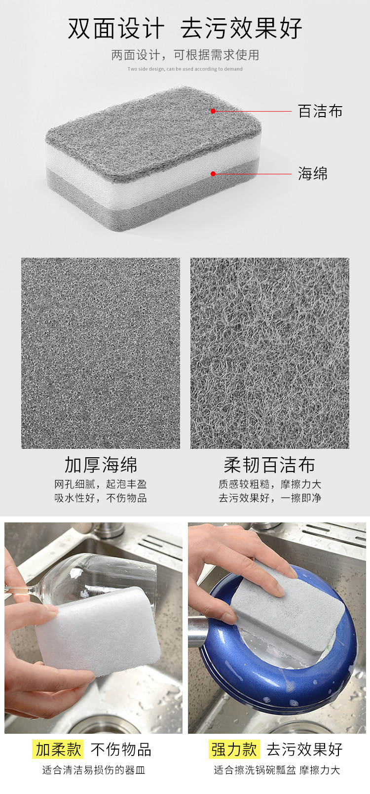 Nano -nano -sink Sponge Wipe 100 -летняя кухня Чистая двойная двойная губчатая блока
