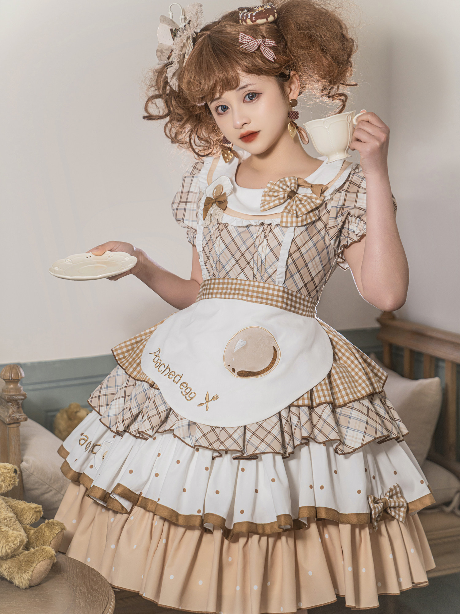 Оригинальный мешочек, дизайнерское платье, юбка, лонгслив, мини-юбка, стиль Лолита, короткий рукав