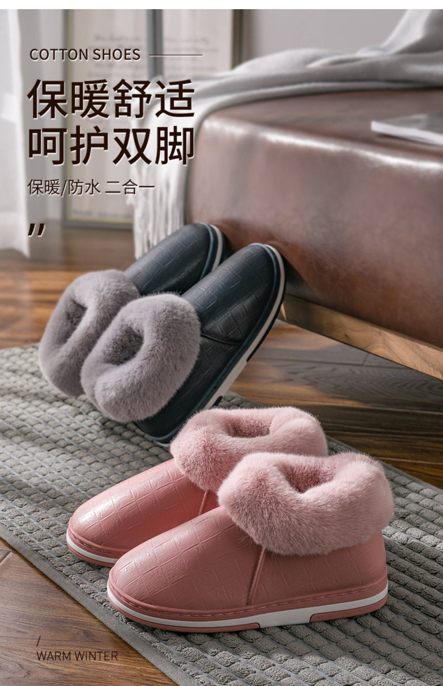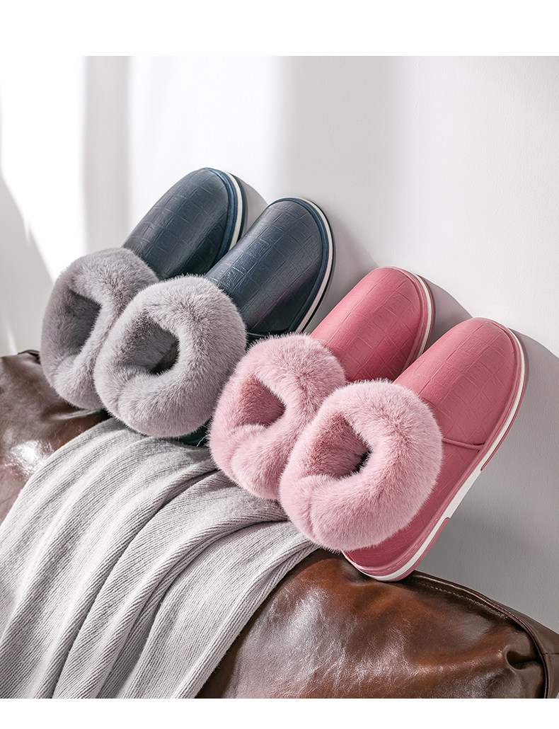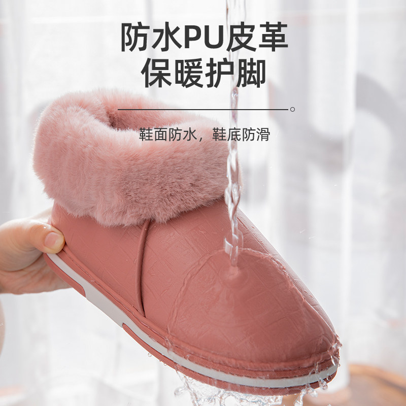 Зимние полиуретановые мужские нескользящие тапочки, для влюбленных