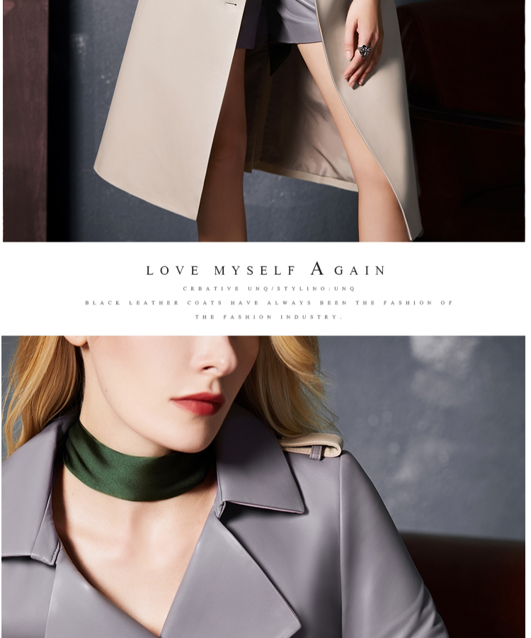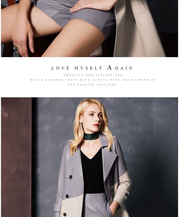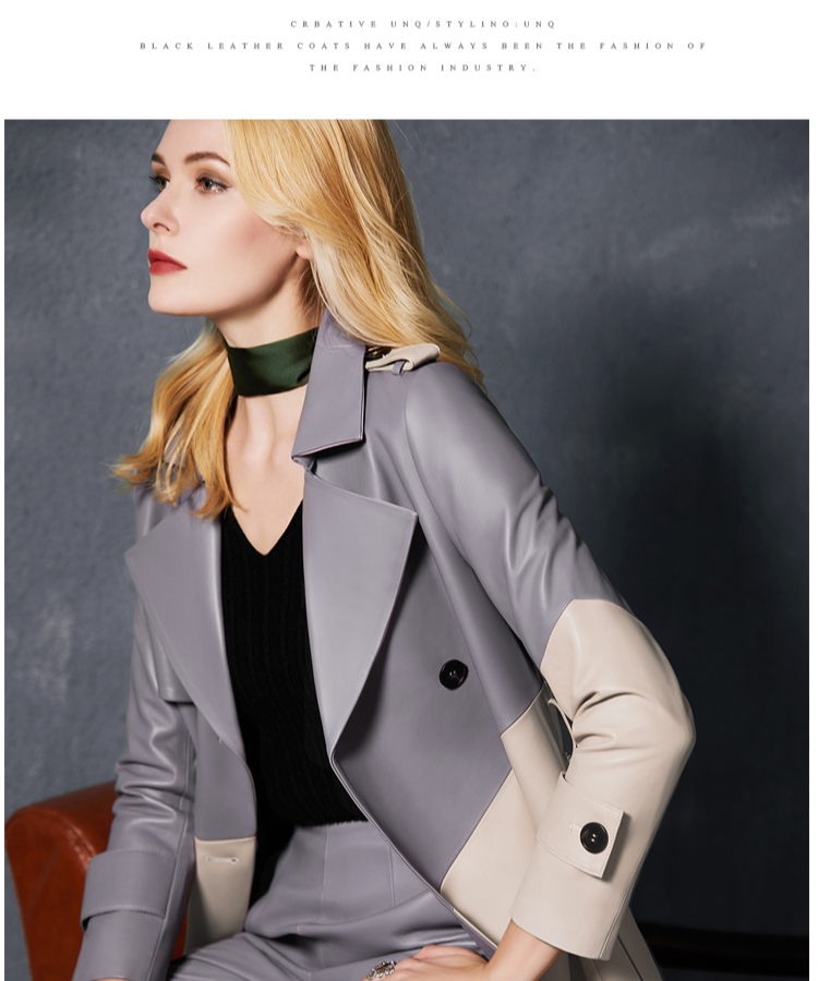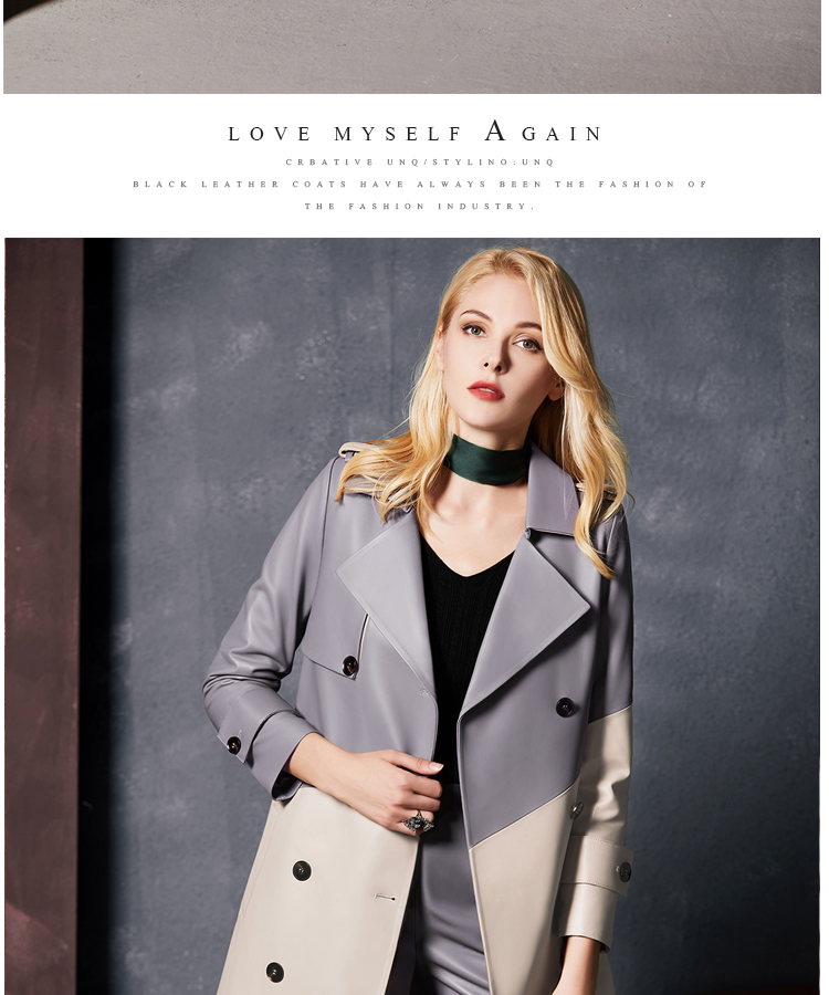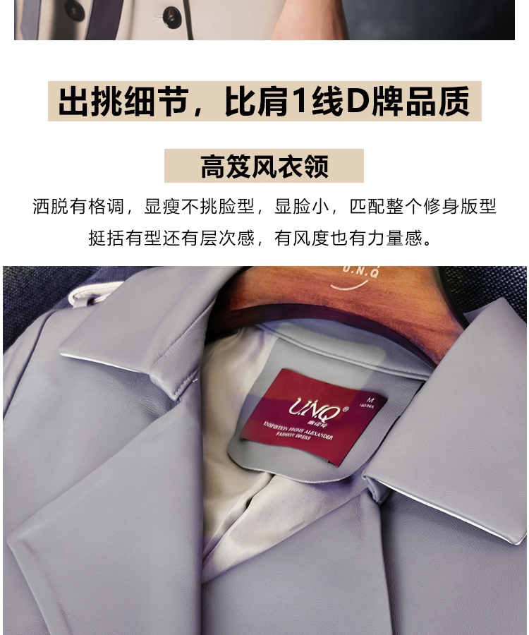U.N.Q Laomei Женская героиня высокая роскошная коллиция Цвет хлопковая кожаная кожаная кожаная кожа с двойным кожаным пальто кожа