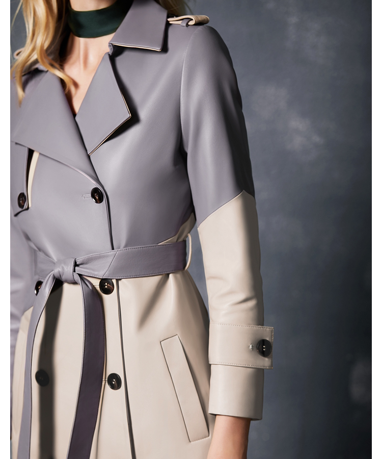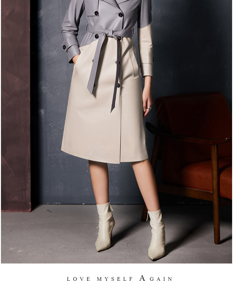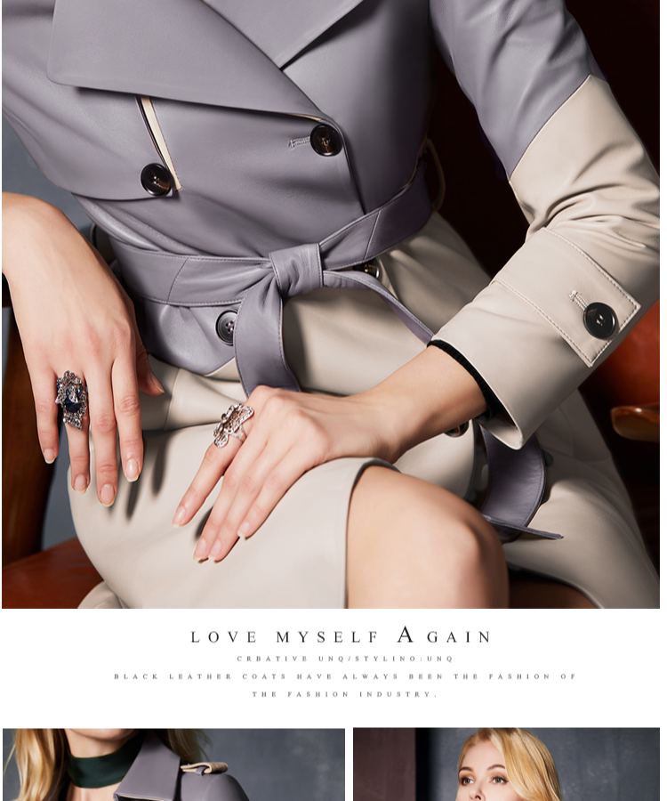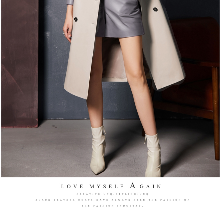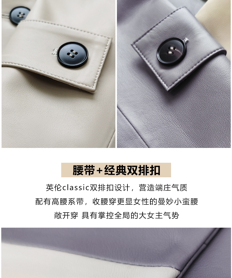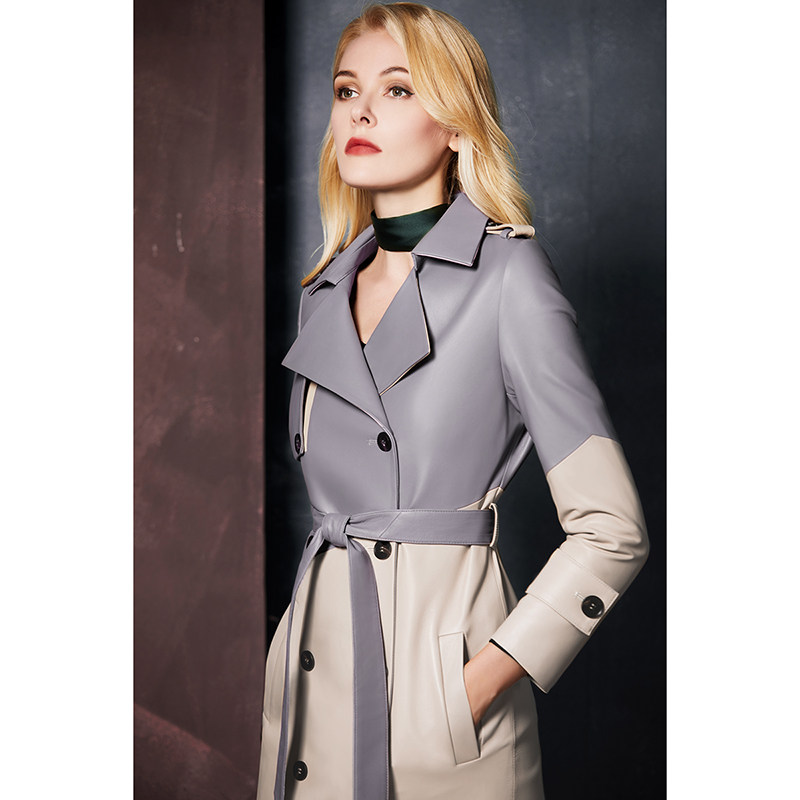 U.N.Q Laomei Женская героиня высокая роскошная коллиция Цвет хлопковая кожаная кожаная кожаная кожа с двойным кожаным пальто кожа