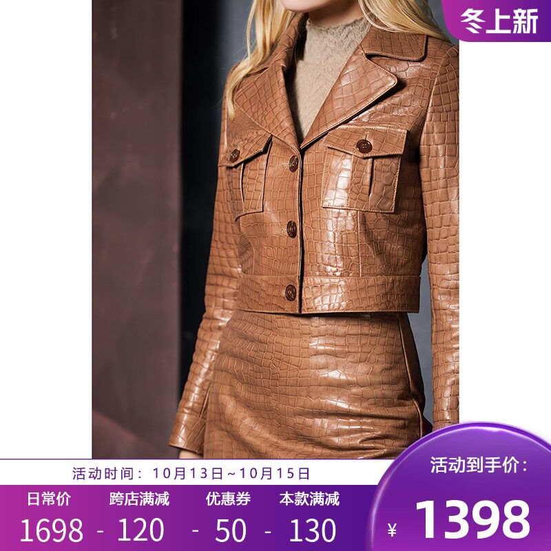 Ретро трехмерный короткий костюм, куртка, крокодиловый принт, из натуральной кожи