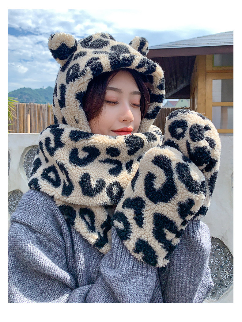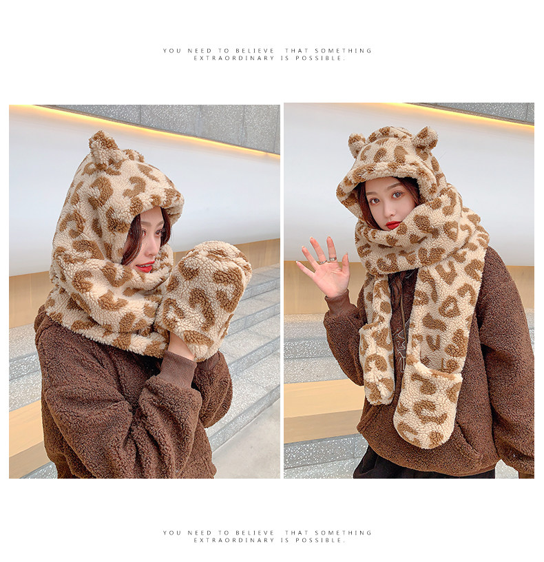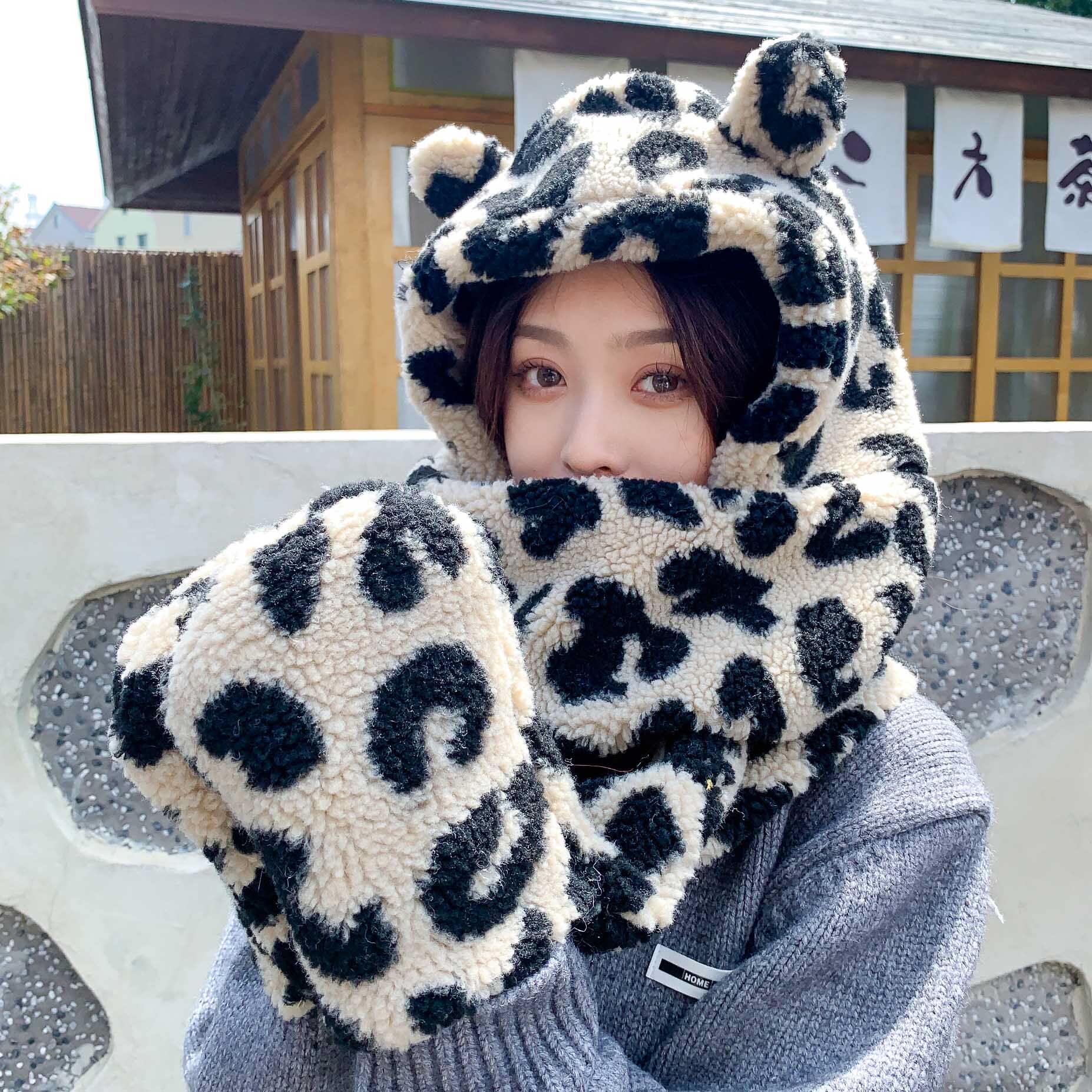 Шапка, шарф, перчатки, бархатный зимний милый демисезонный комплект, с медвежатами, 3 предмета