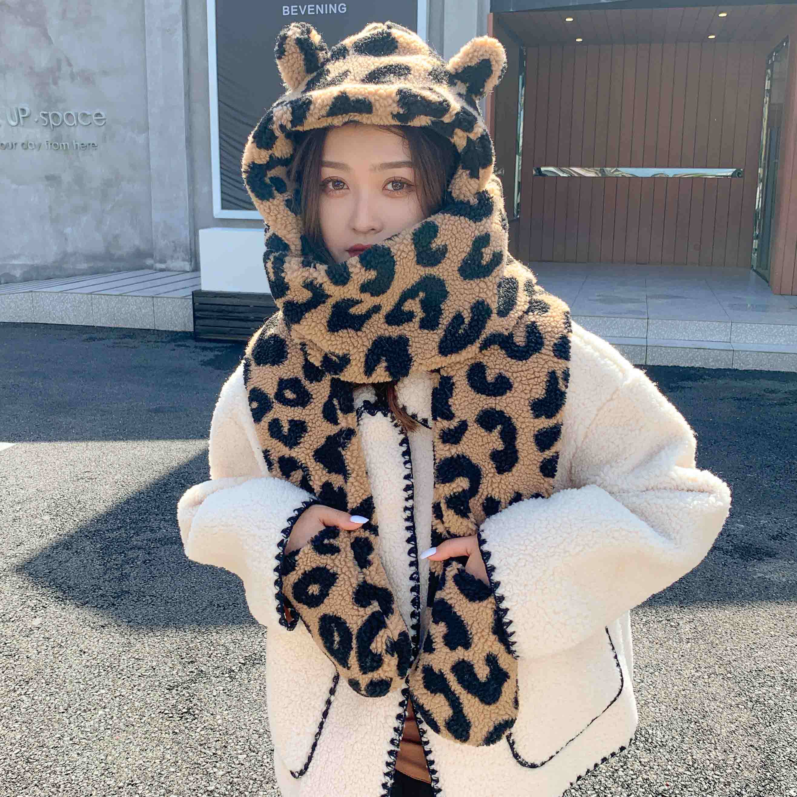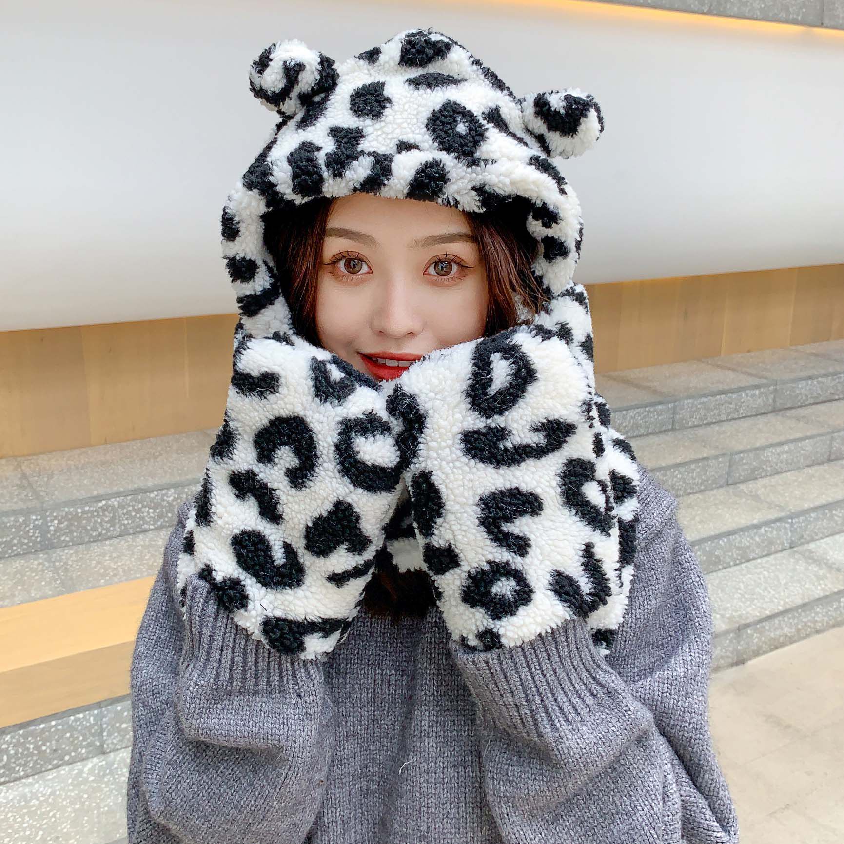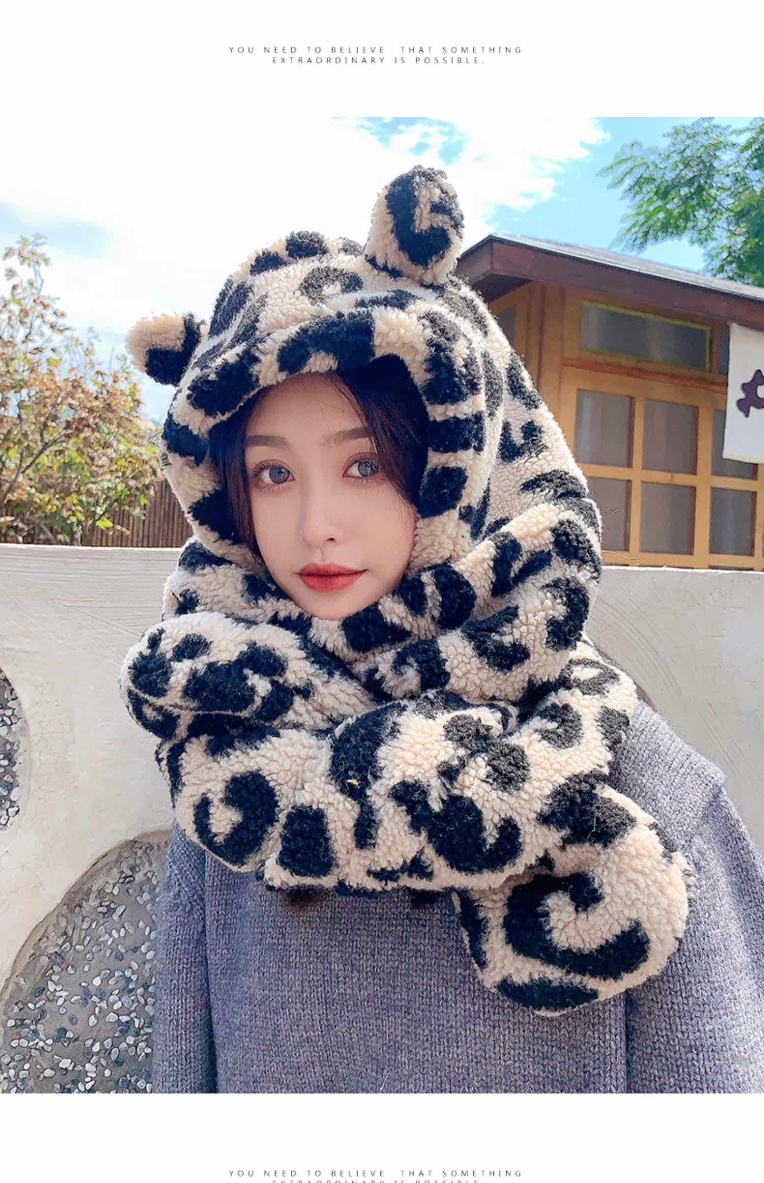 Шапка, шарф, перчатки, бархатный зимний милый демисезонный комплект, с медвежатами, 3 предмета