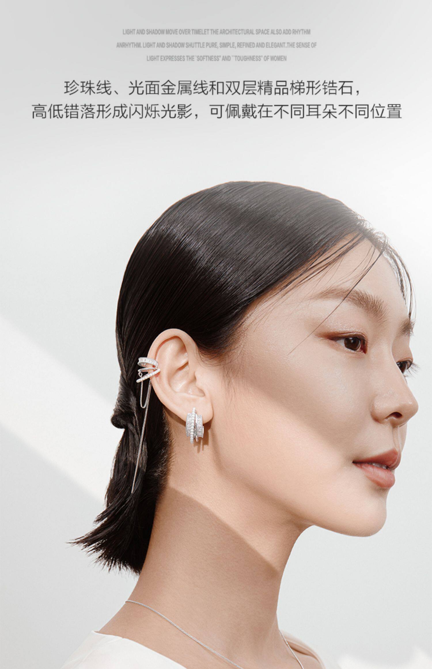 Цепь из жемчуга с цирконом, модные клипсы, универсальные серьги