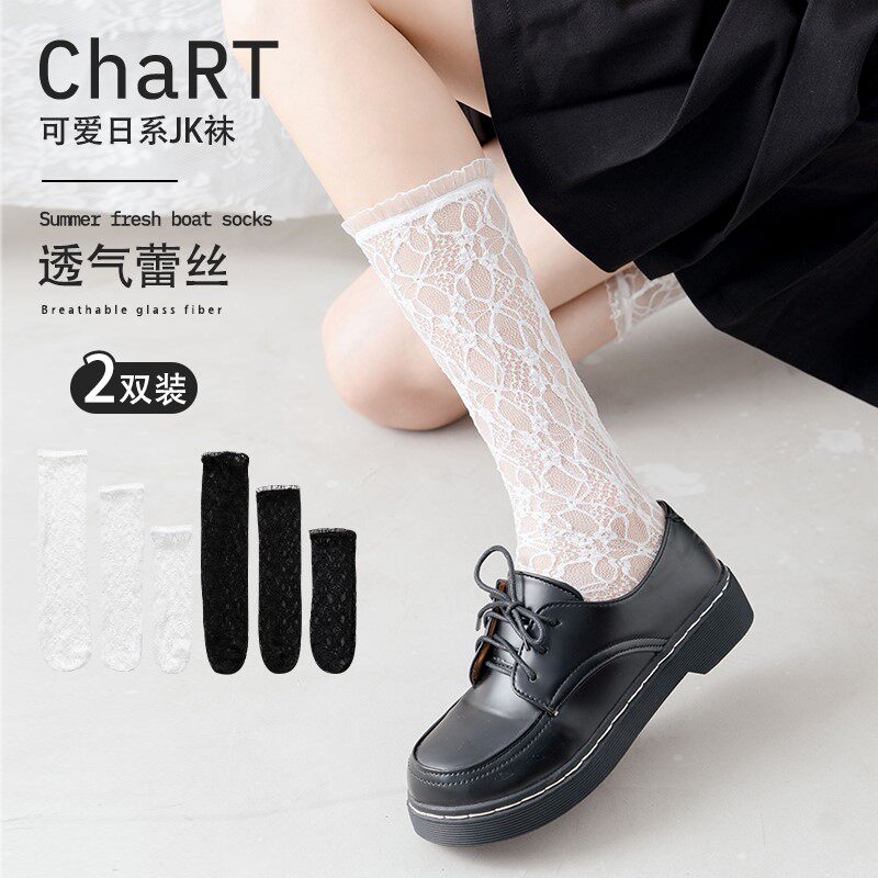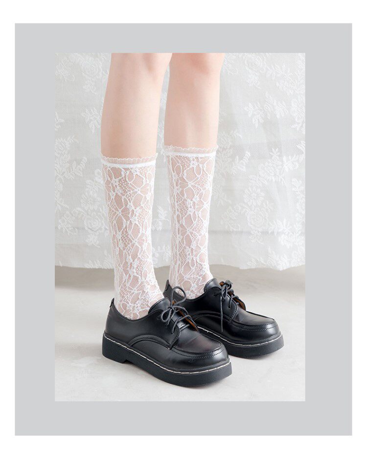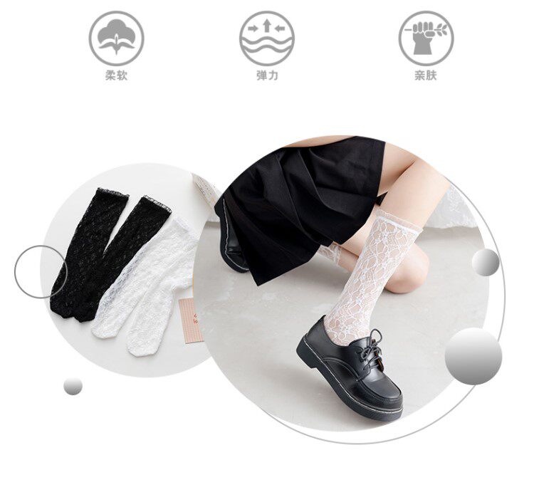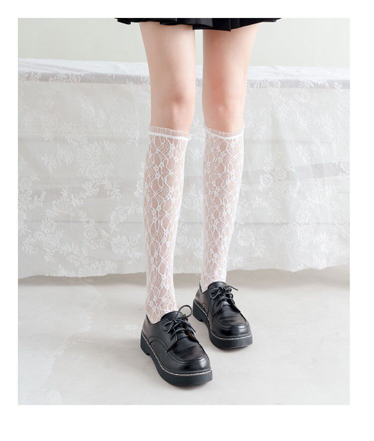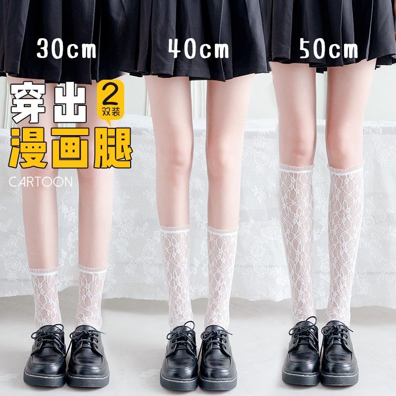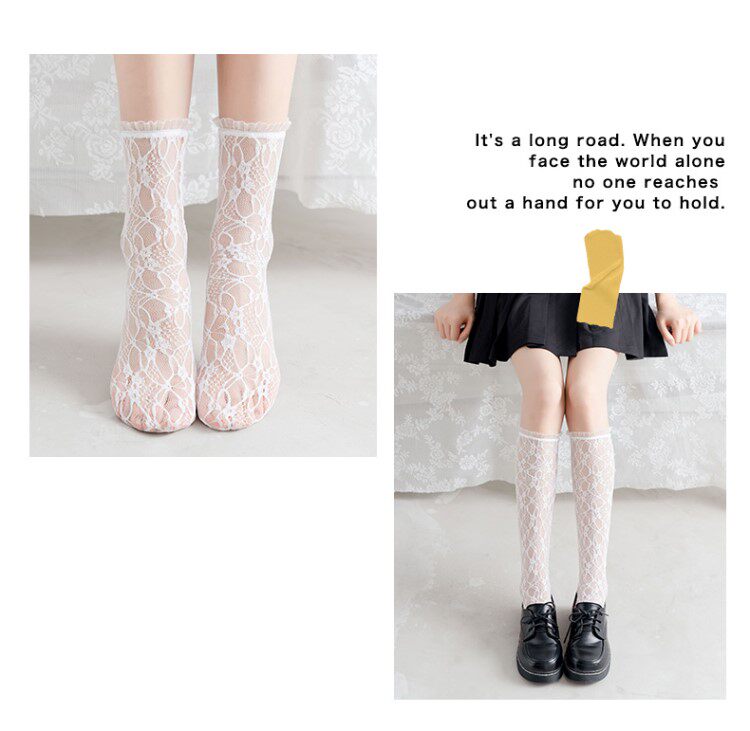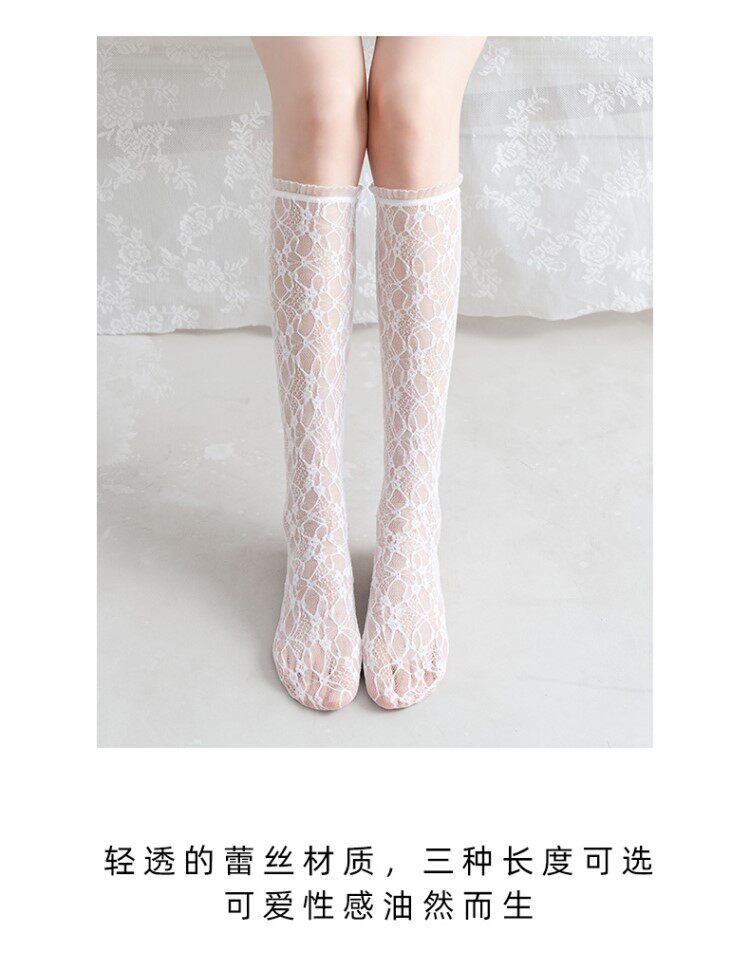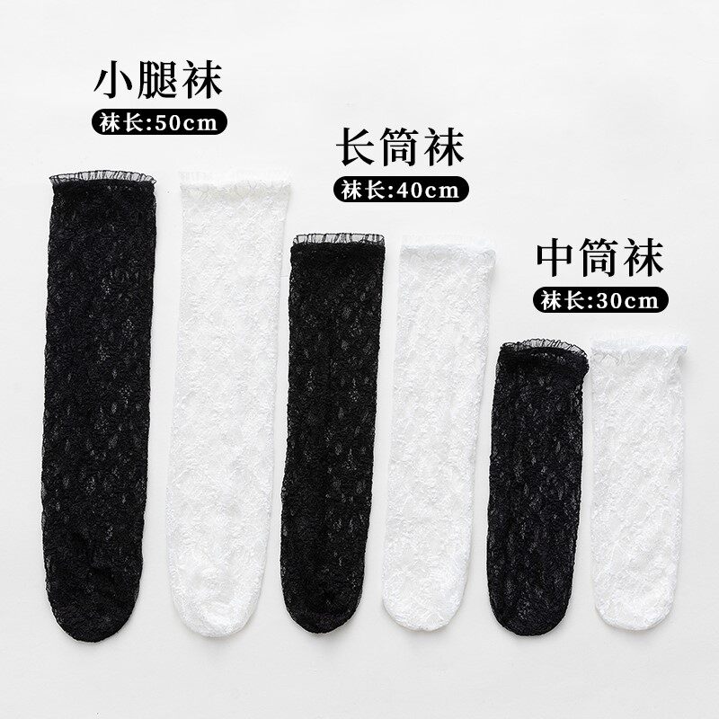 Белые кружевные колготки, носки, летние тонкие гольфы, средней длины, стиль Лолита