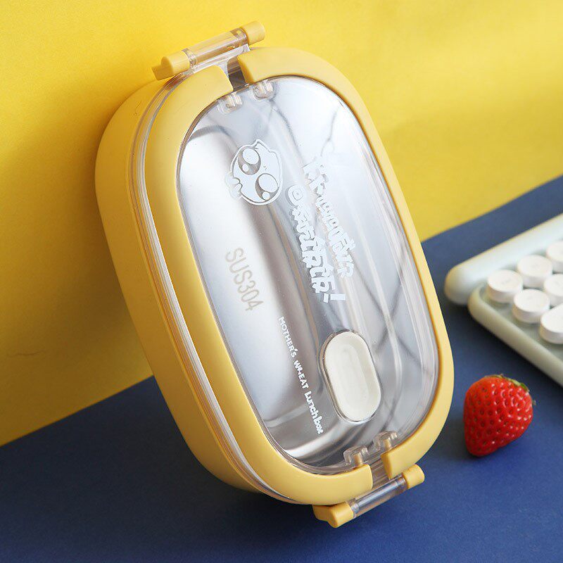 - Лимонно-желтый ланч-бокс из нержавеющей стали