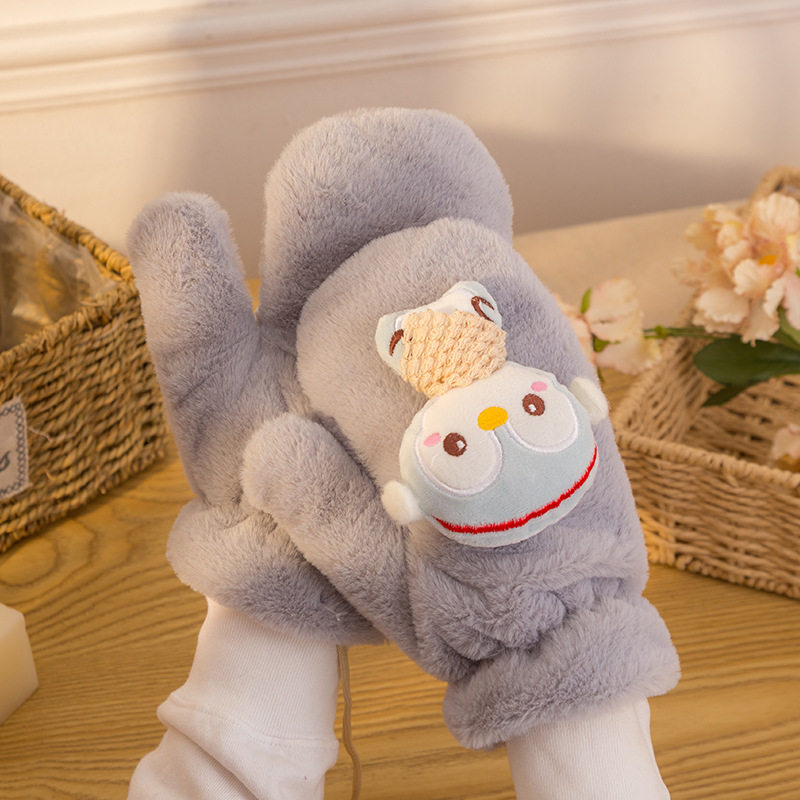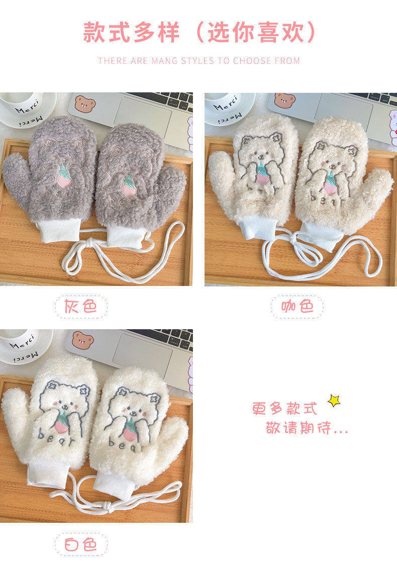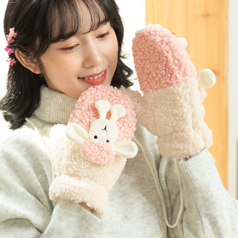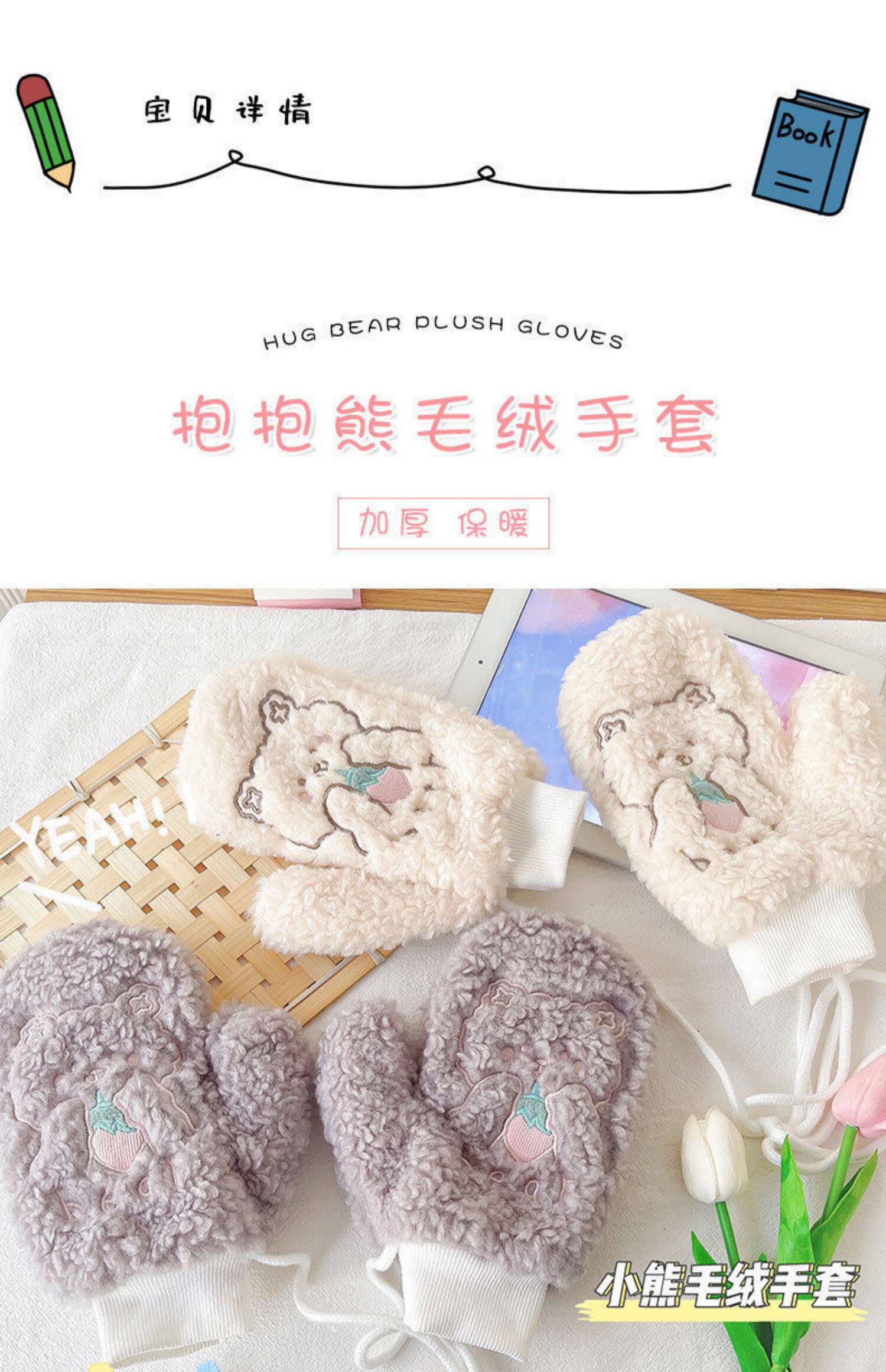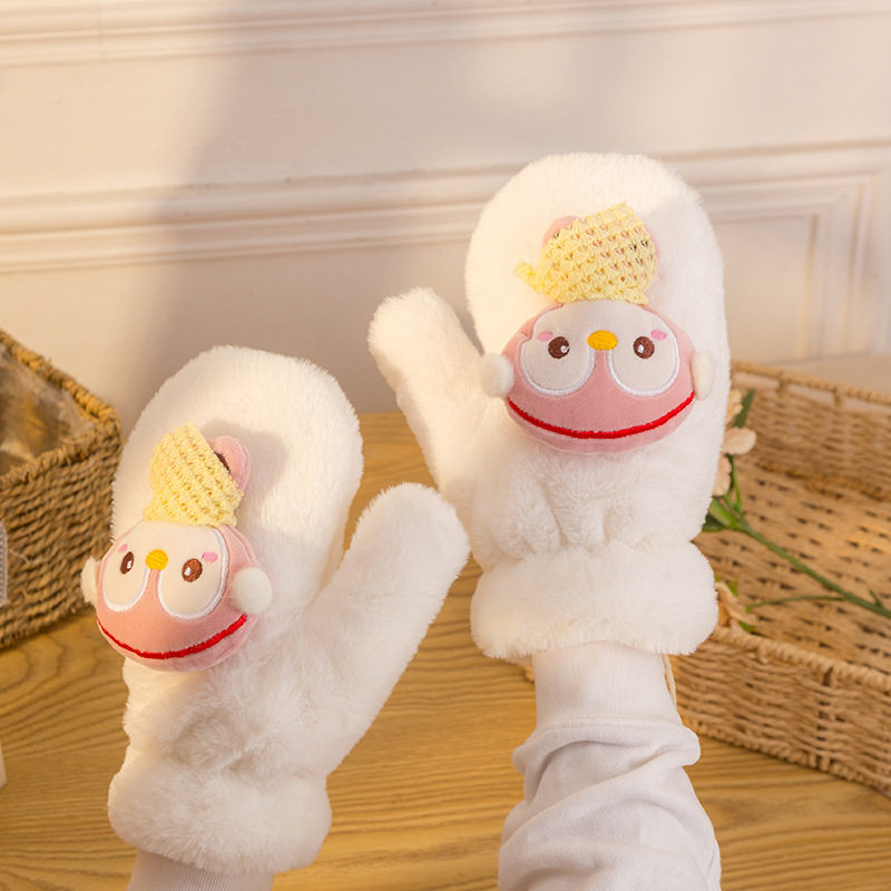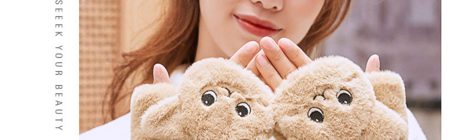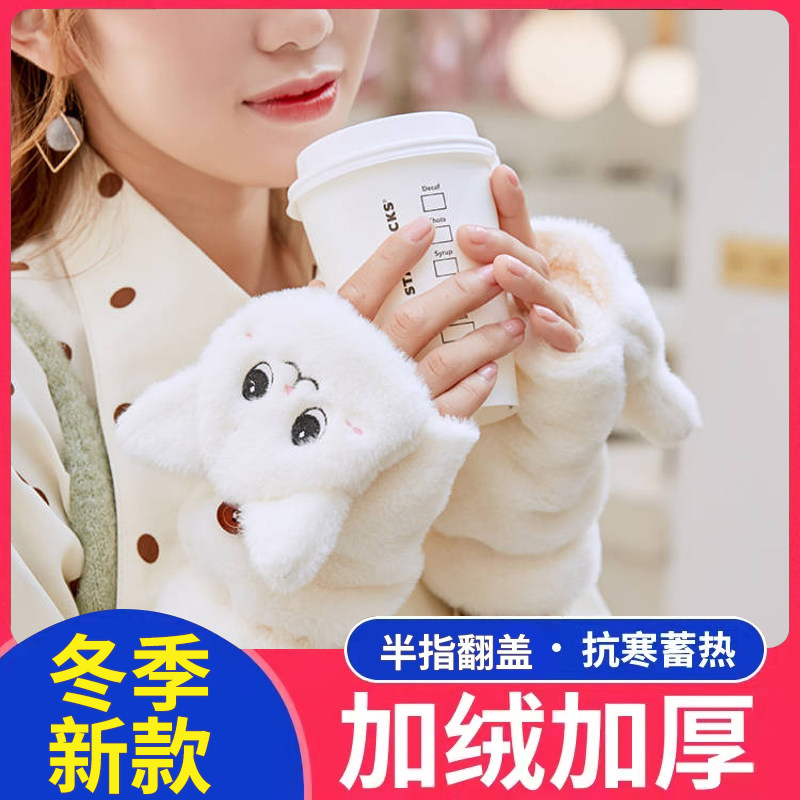 Перчатки, зимний мультяшный бархатный удерживающий тепло комплект для школьников и студентов, для влюбленных, увеличенная толщина, без пальцев