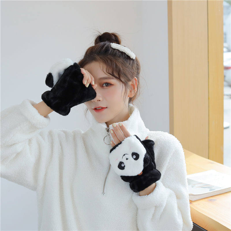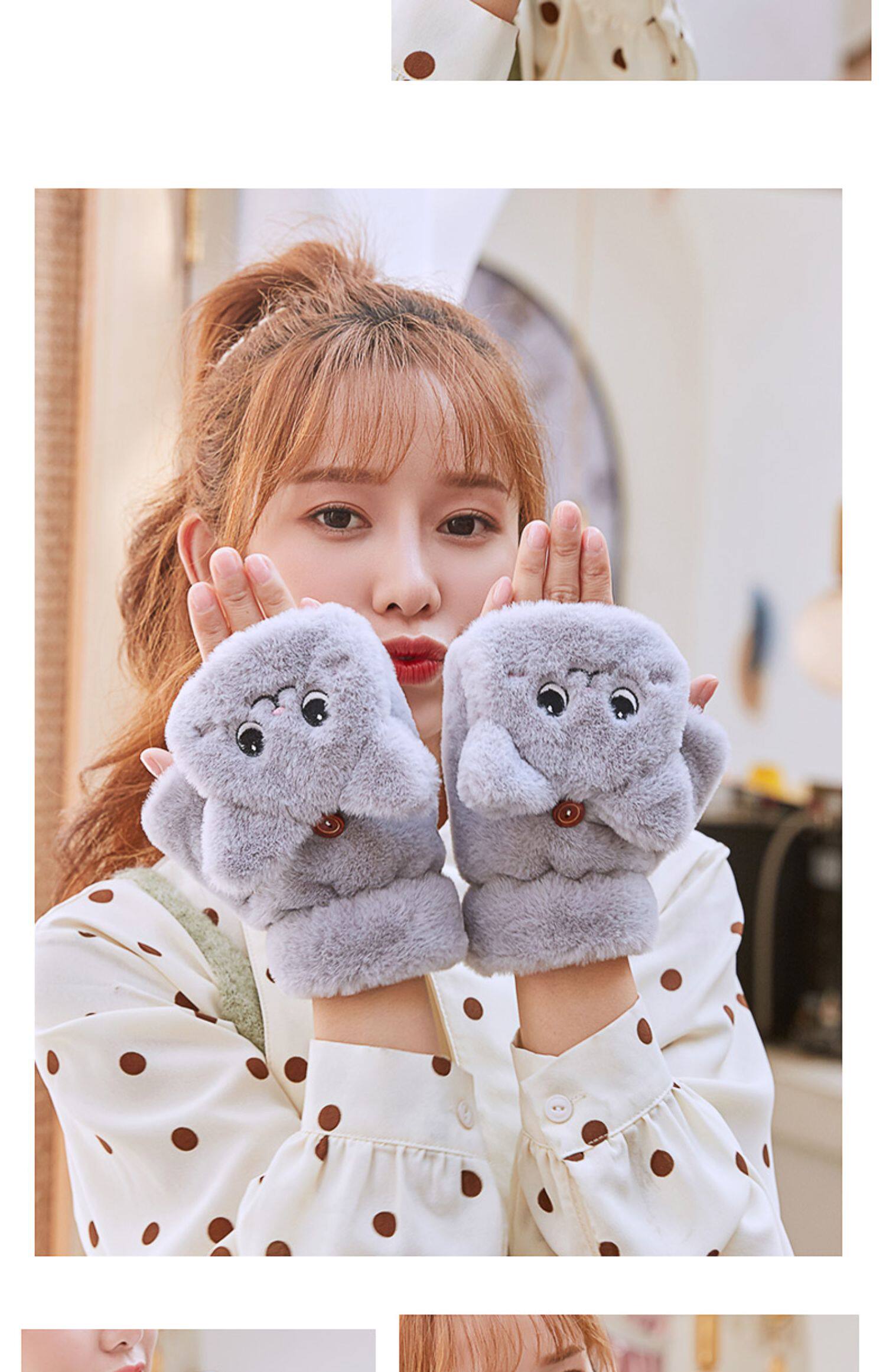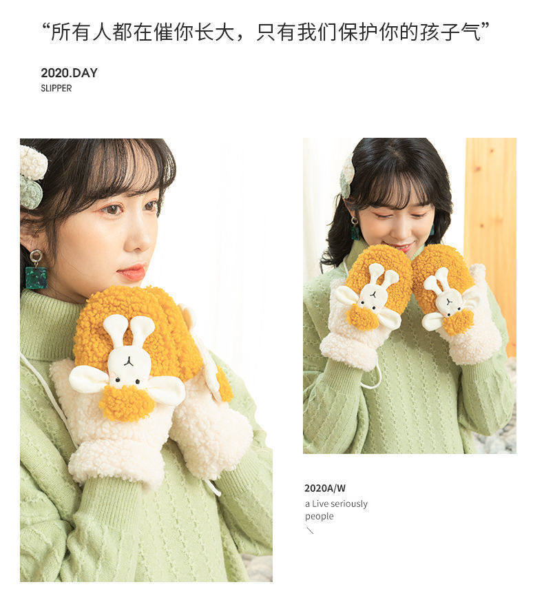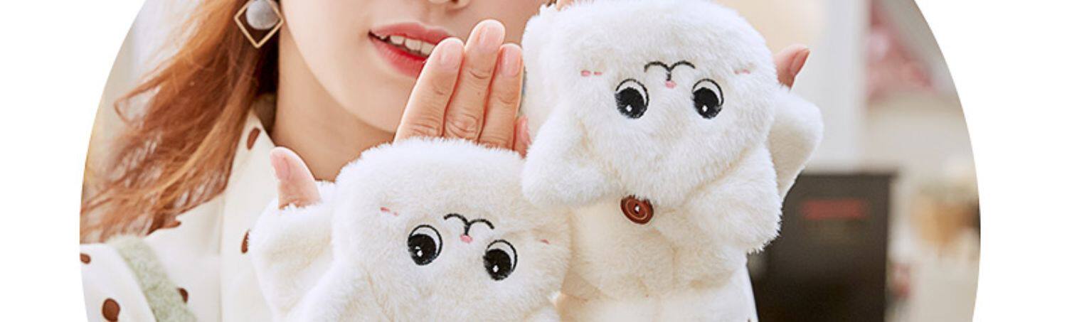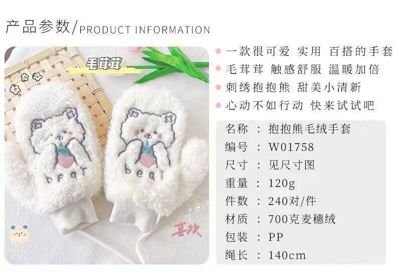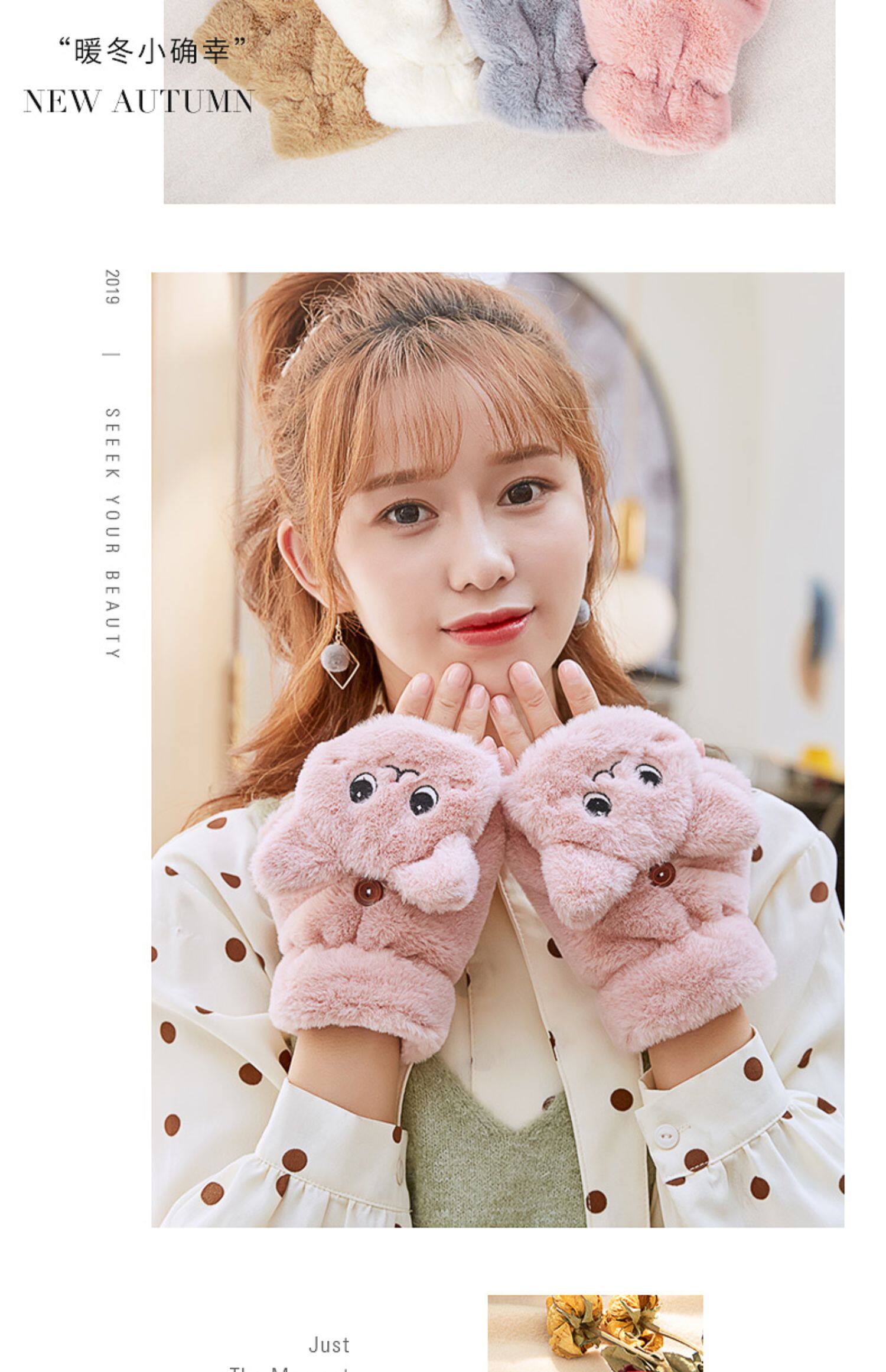 Перчатки, зимний мультяшный бархатный удерживающий тепло комплект для школьников и студентов, для влюбленных, увеличенная толщина, без пальцев