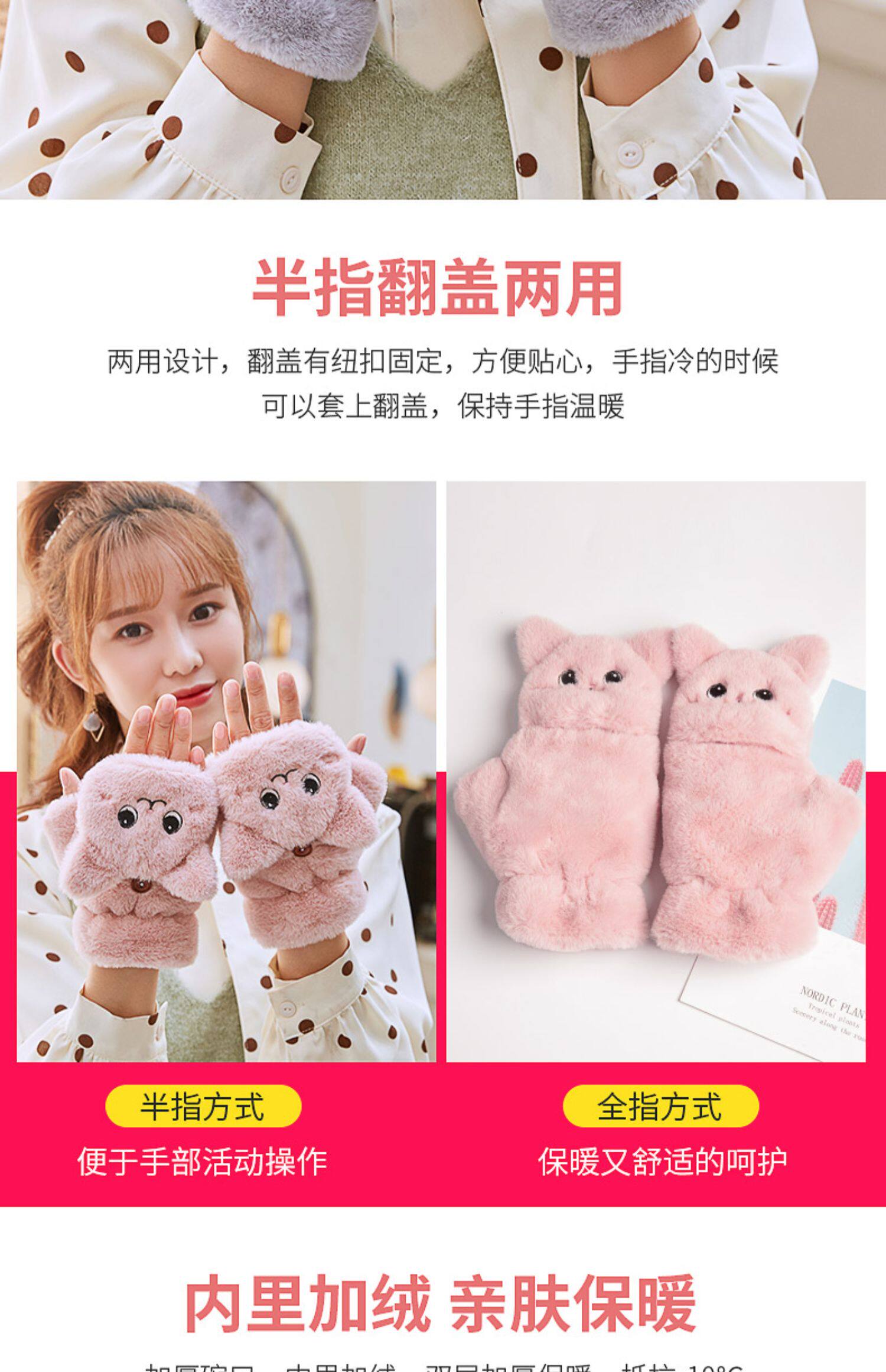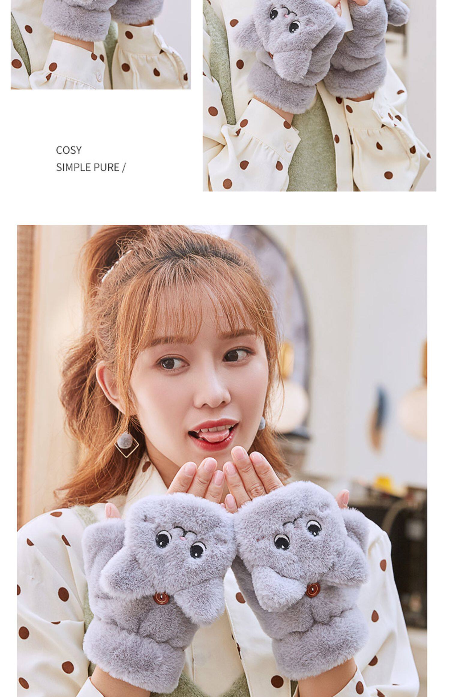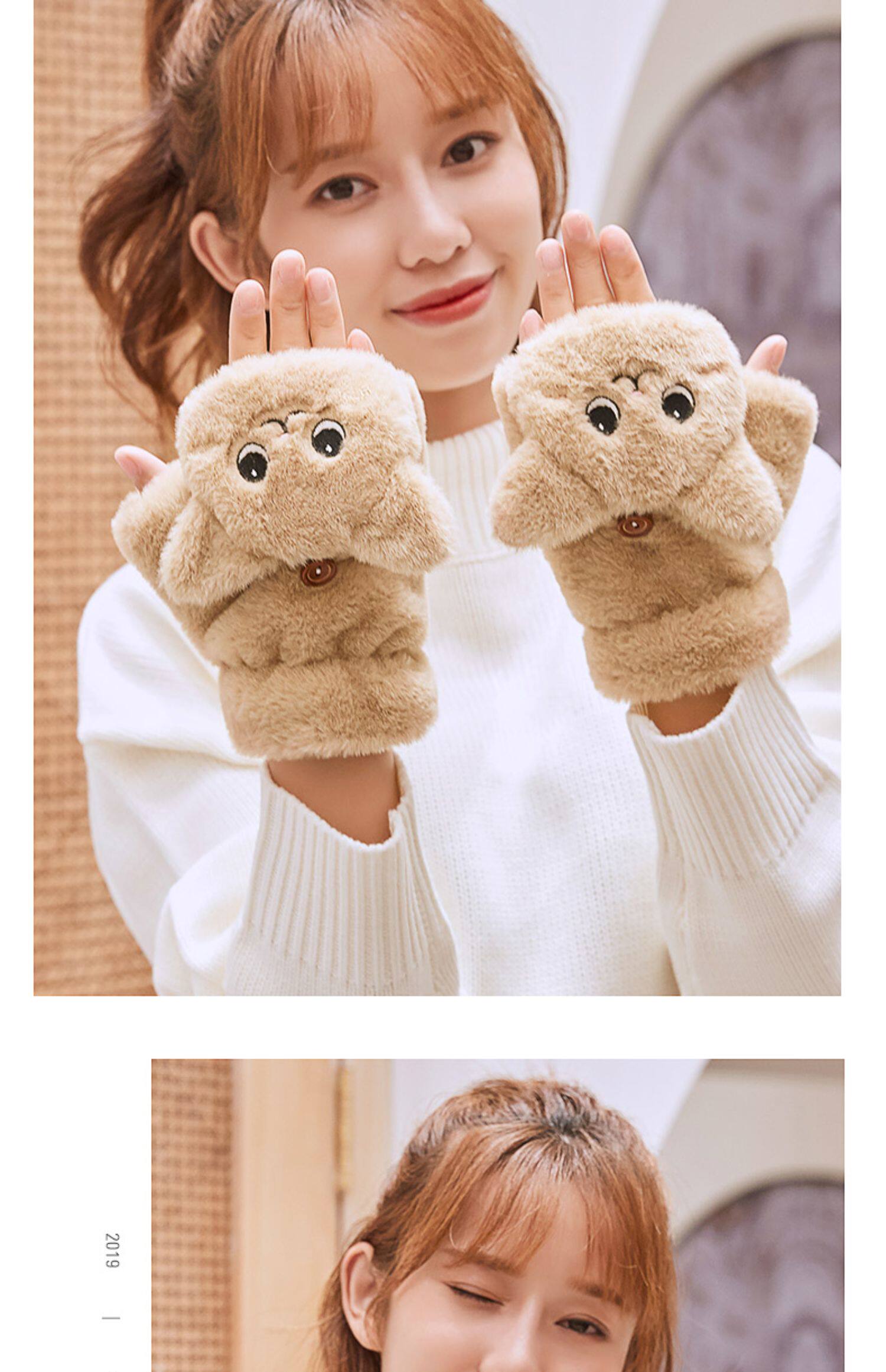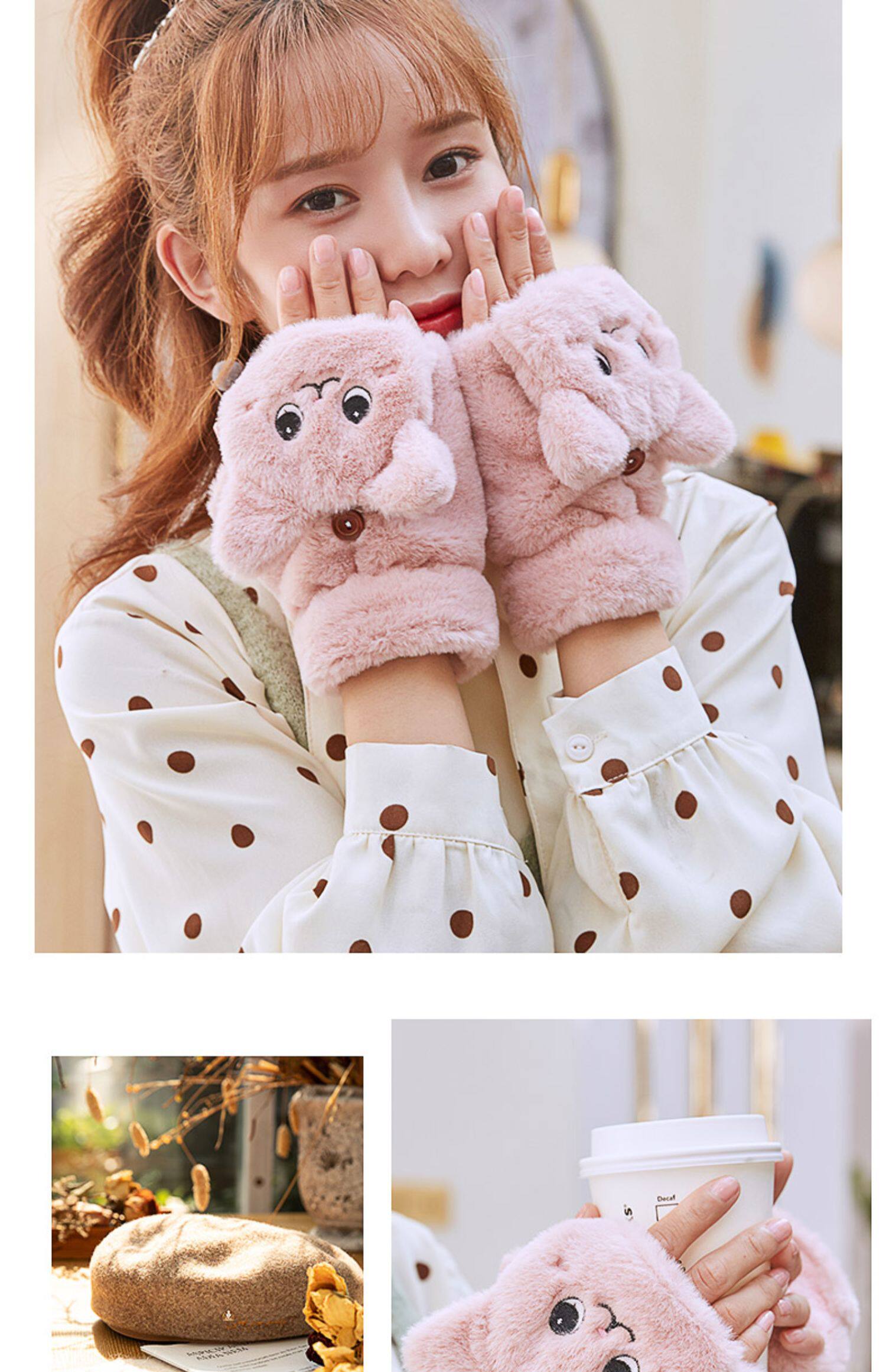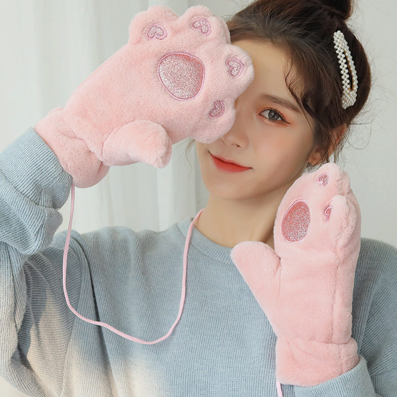 Перчатки, зимний мультяшный бархатный удерживающий тепло комплект для школьников и студентов, для влюбленных, увеличенная толщина, без пальцев
