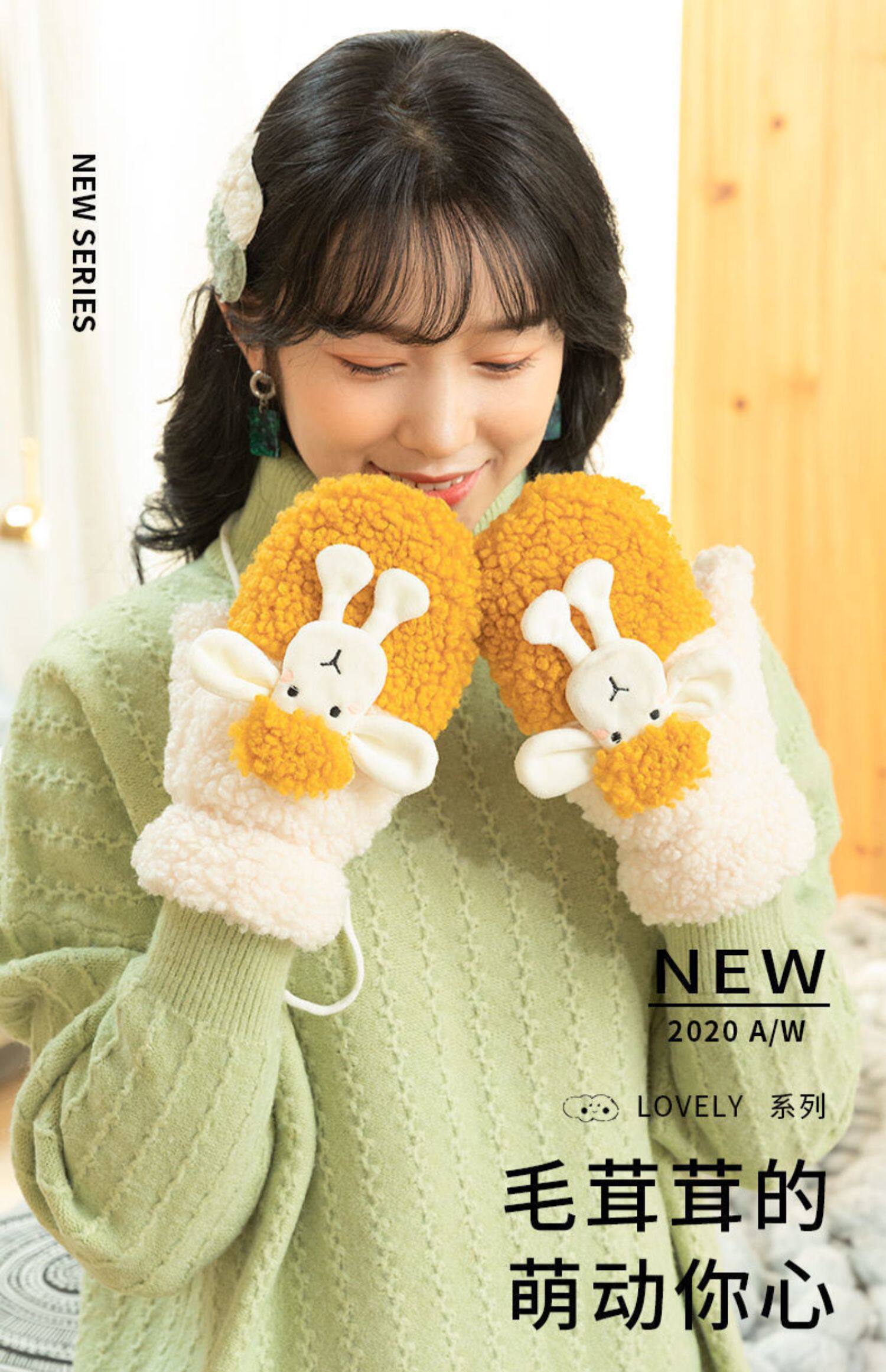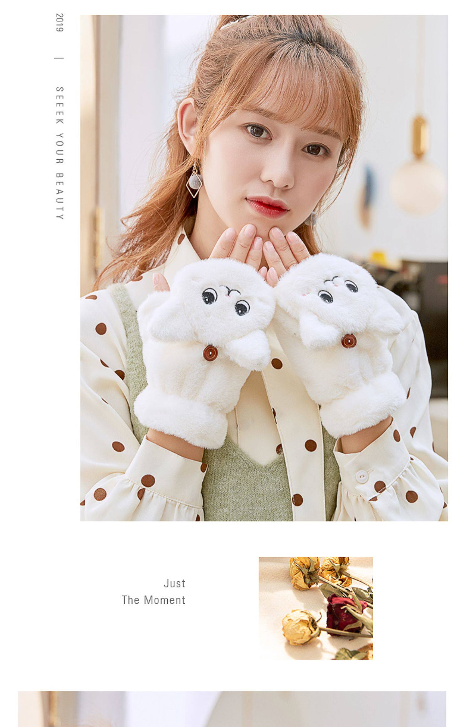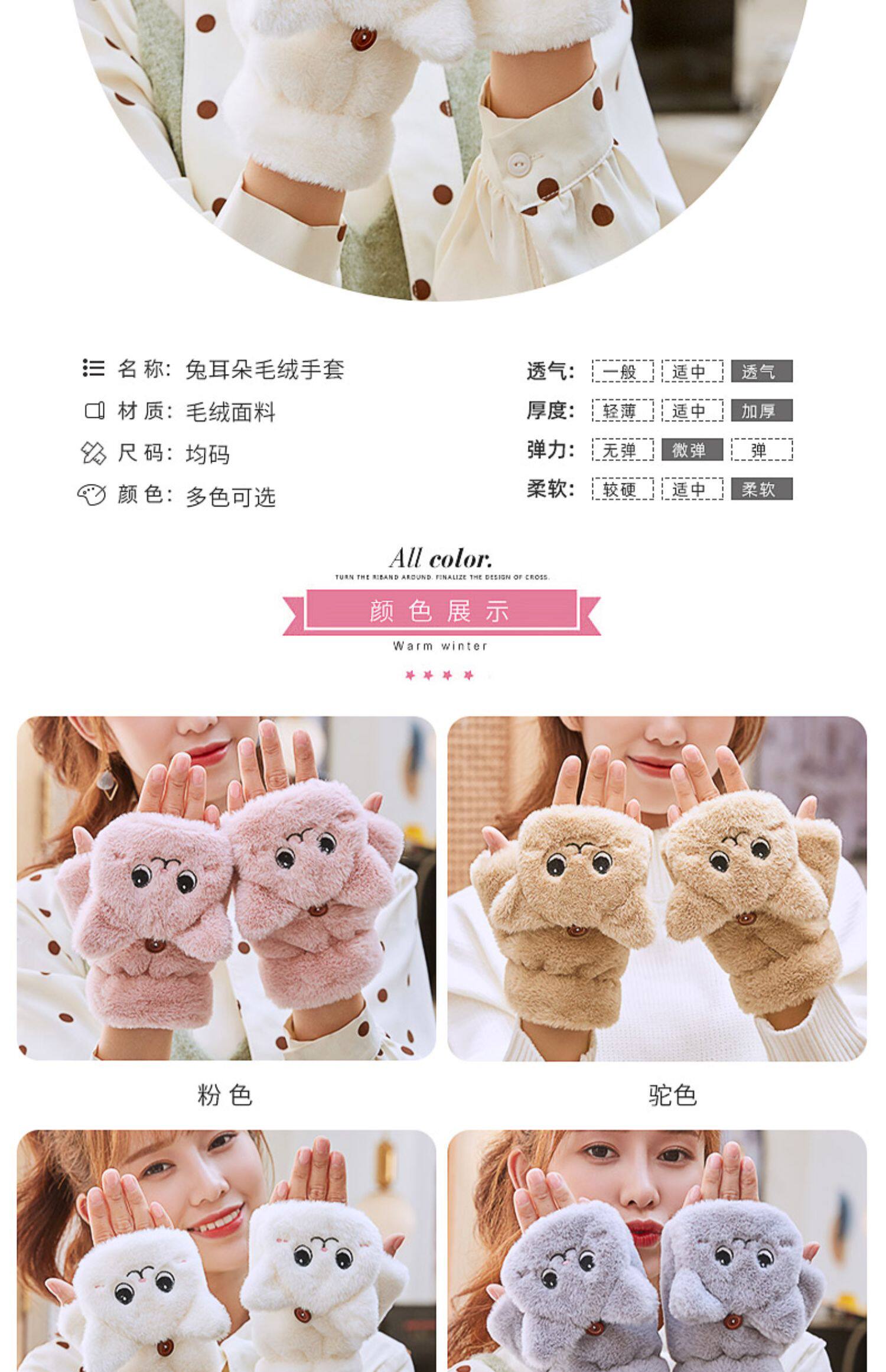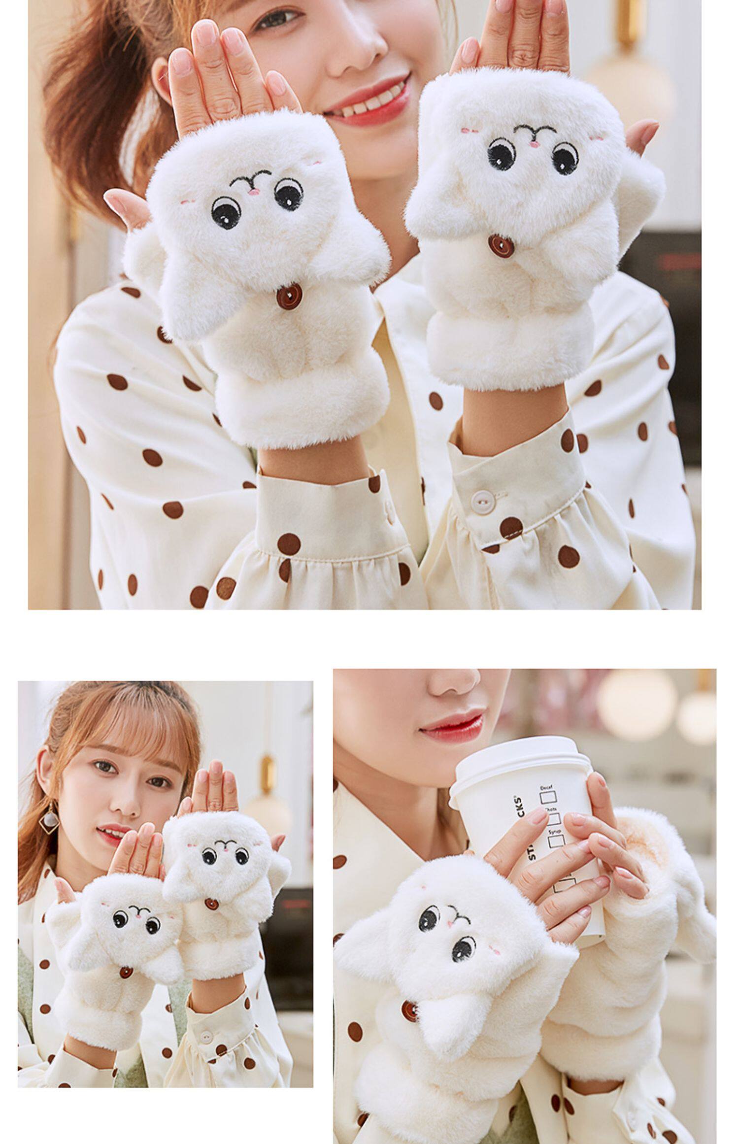 Перчатки, зимний мультяшный бархатный удерживающий тепло комплект для школьников и студентов, для влюбленных, увеличенная толщина, без пальцев