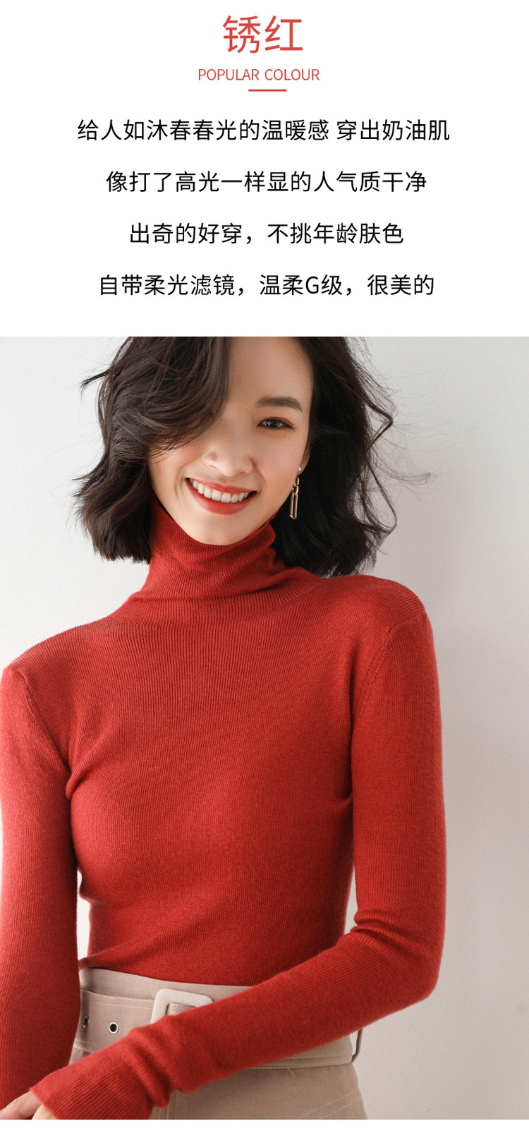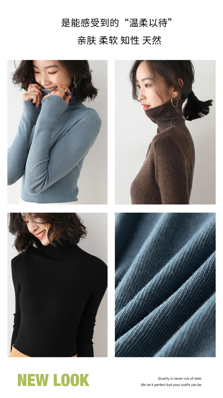 Кашемировый базовый приятный телу шерстяной тонкий свитер, облегающий крой, популярно в интернете, в обтяжку, высокий воротник