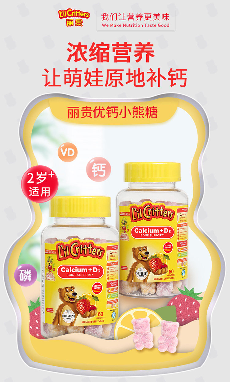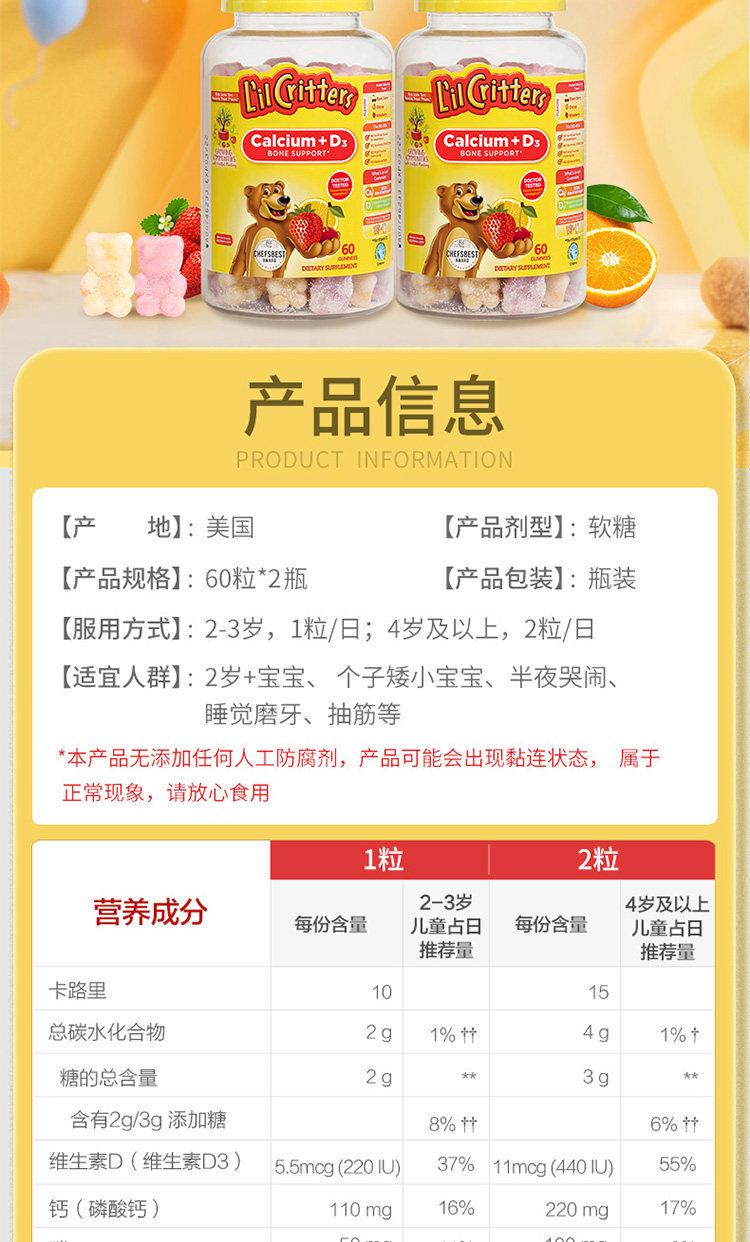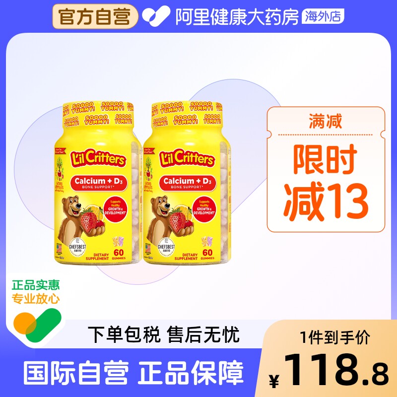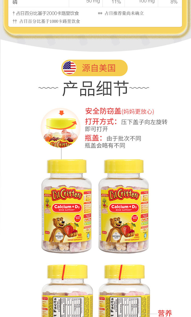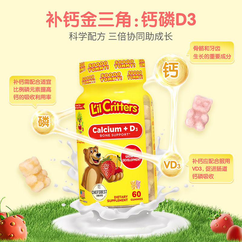 Американский Личэнь Детский детский кальций+VD Добавка кальция Продвижение кальций Поглощение скелетного медвежьи соды 60 капсул*2