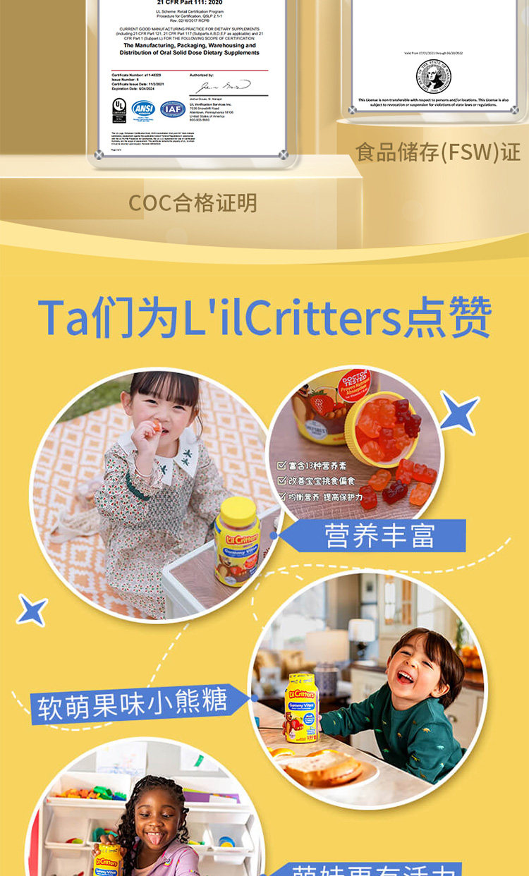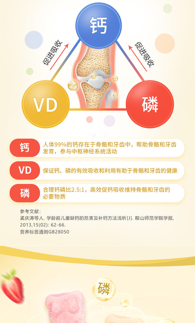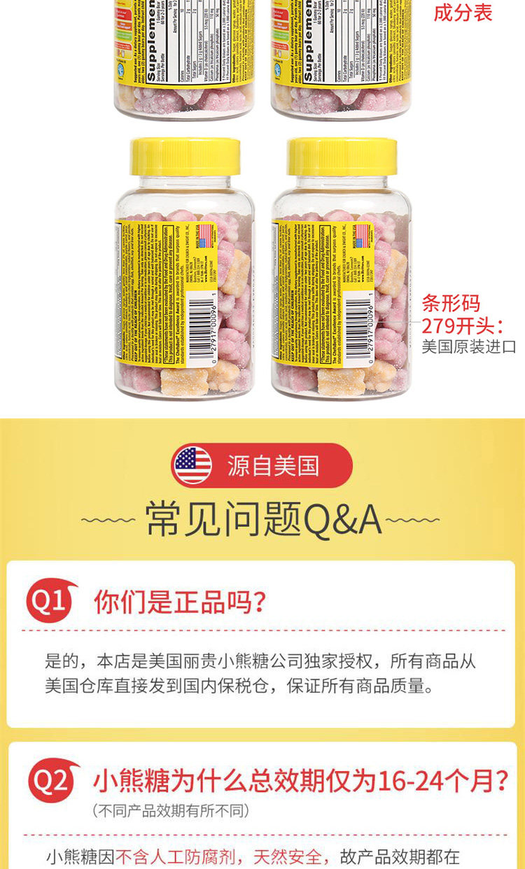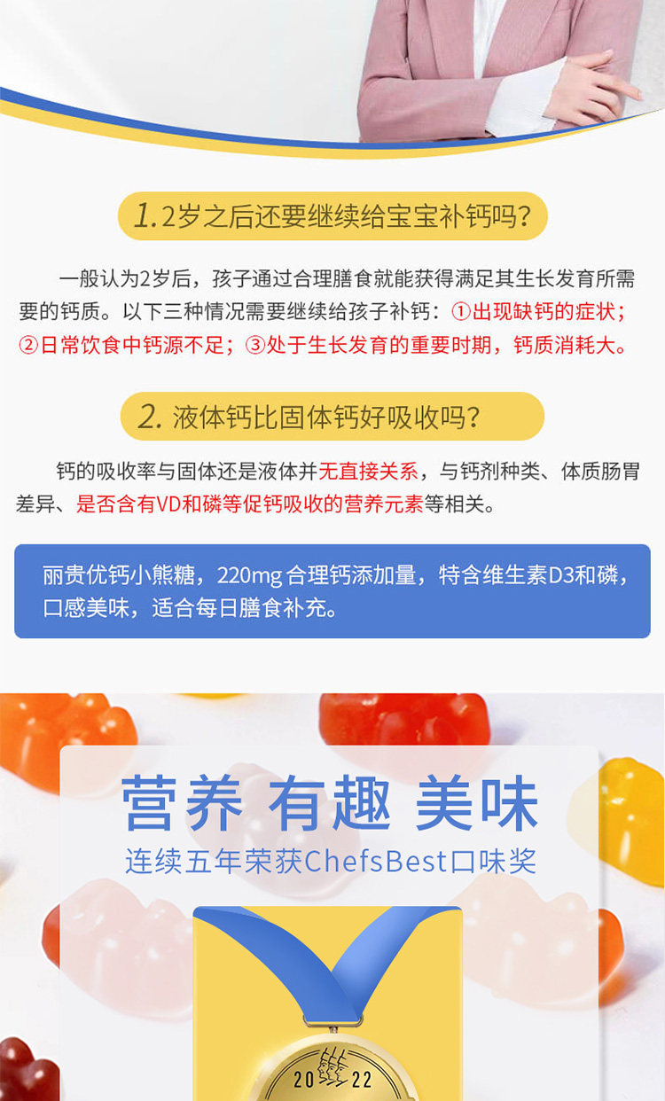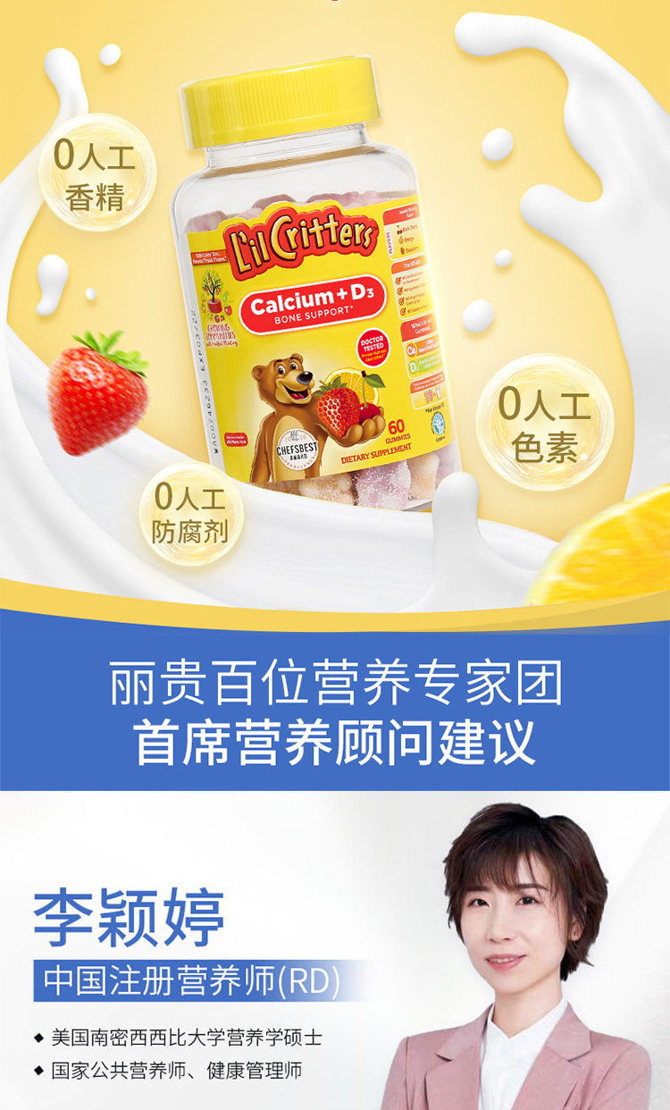 Американский Личэнь Детский детский кальций+VD Добавка кальция Продвижение кальций Поглощение скелетного медвежьи соды 60 капсул*2