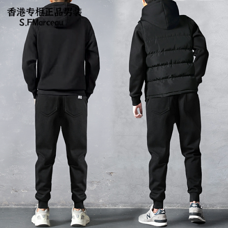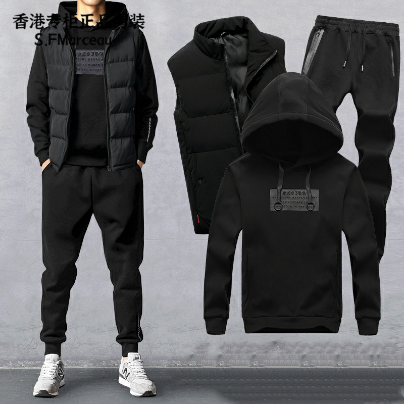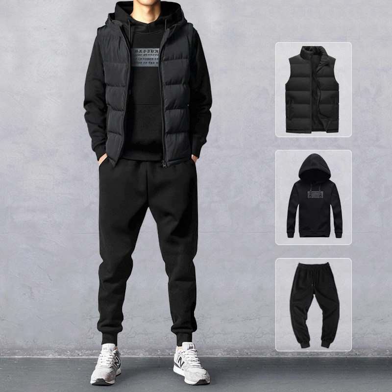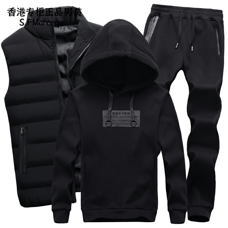 Толстовка с капюшоном, мужской осенний комплект, трендовый спортивный костюм для отдыха, жилет, 3 предмета