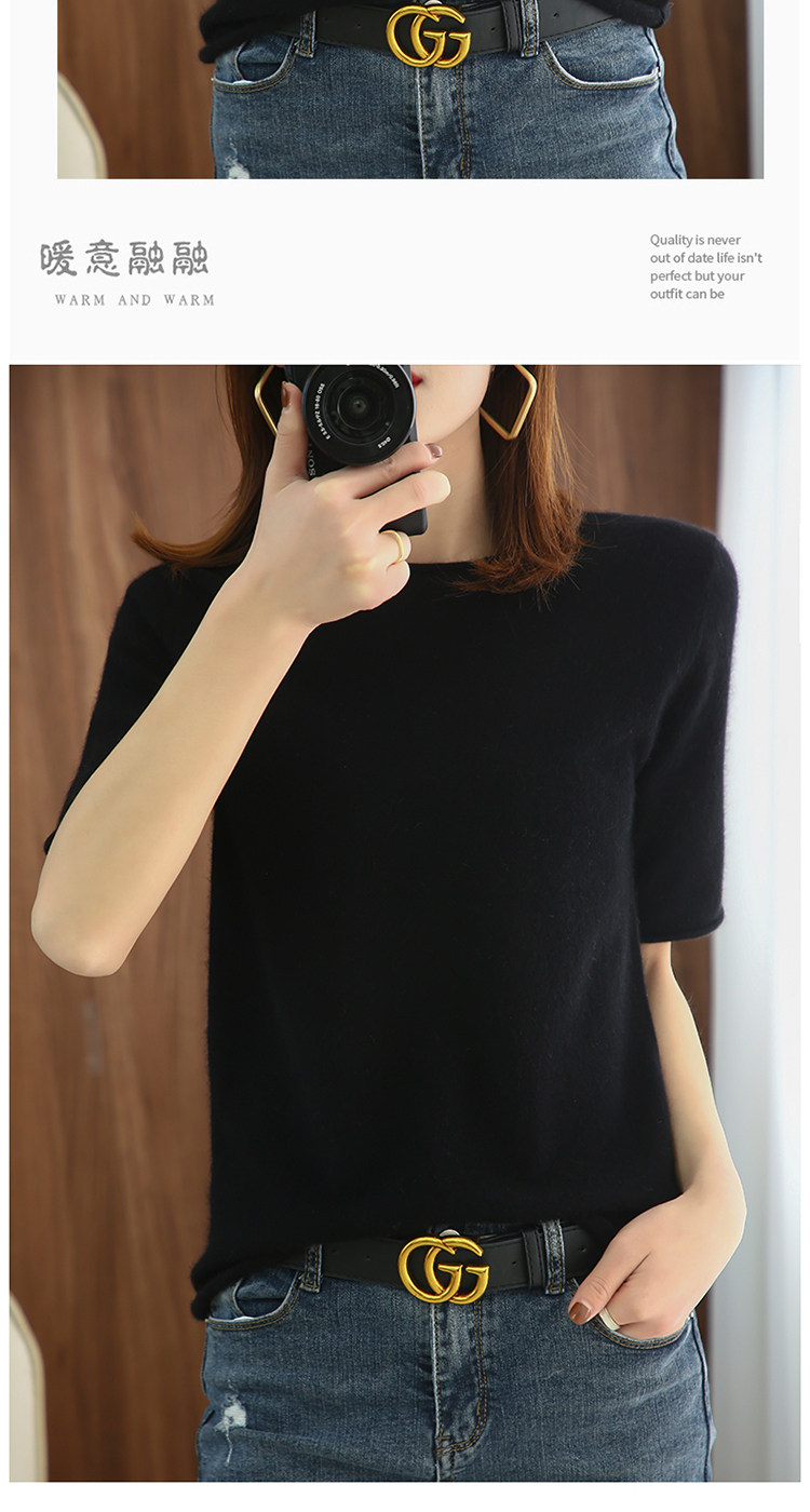 Хлопковая летняя модная трикотажная однотонная базовая футболка с круглым воротником, сезон 2021, короткий рукав