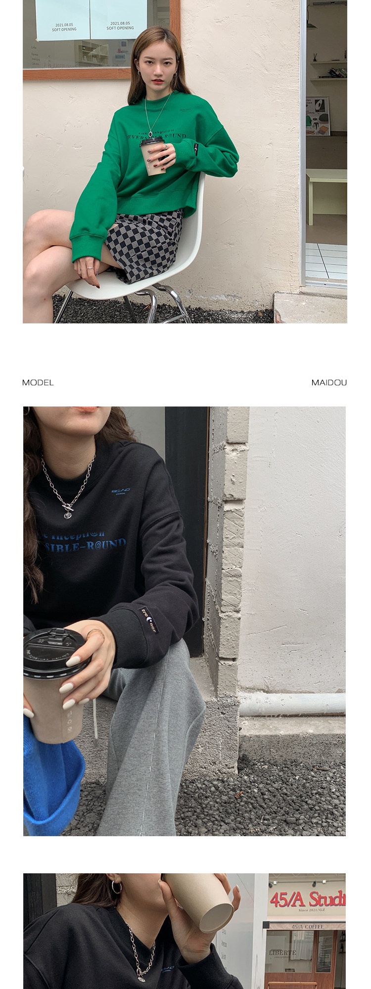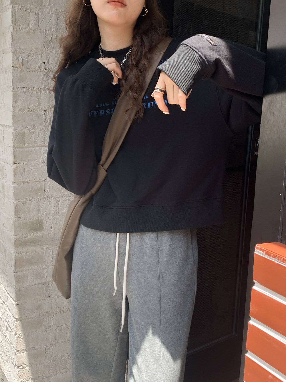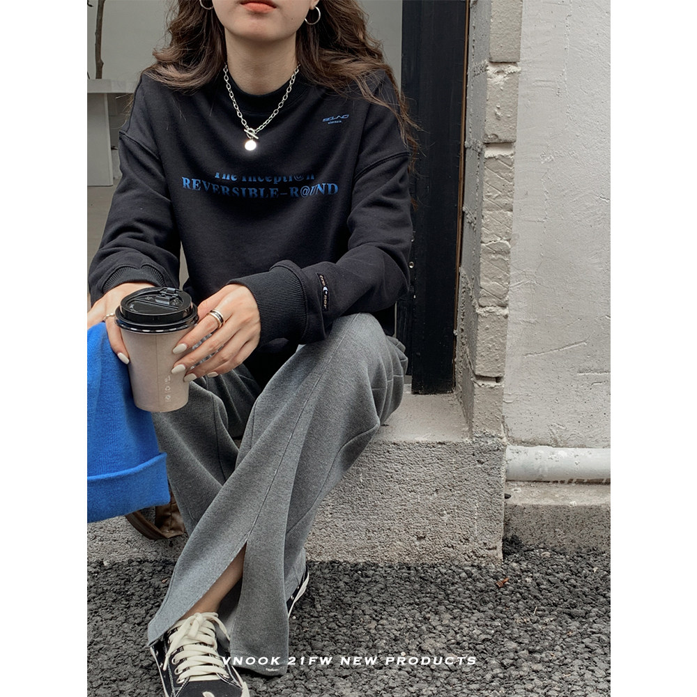 Короткая осенняя толстовка, лонгслив с круглым воротником, коллекция 2021, высокая талия, оверсайз