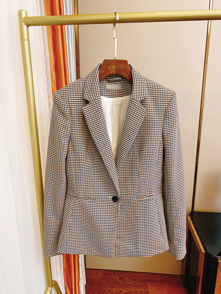 80144 Специальная цена талия талия Slim Fit Ol Commuting Career Pleck Pad Classic Plaid Blazer Top