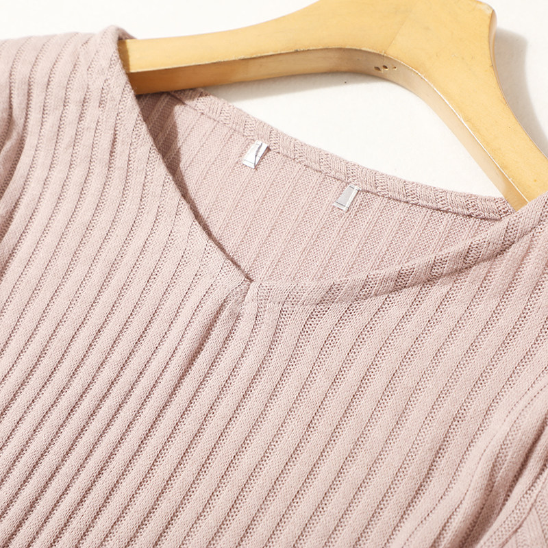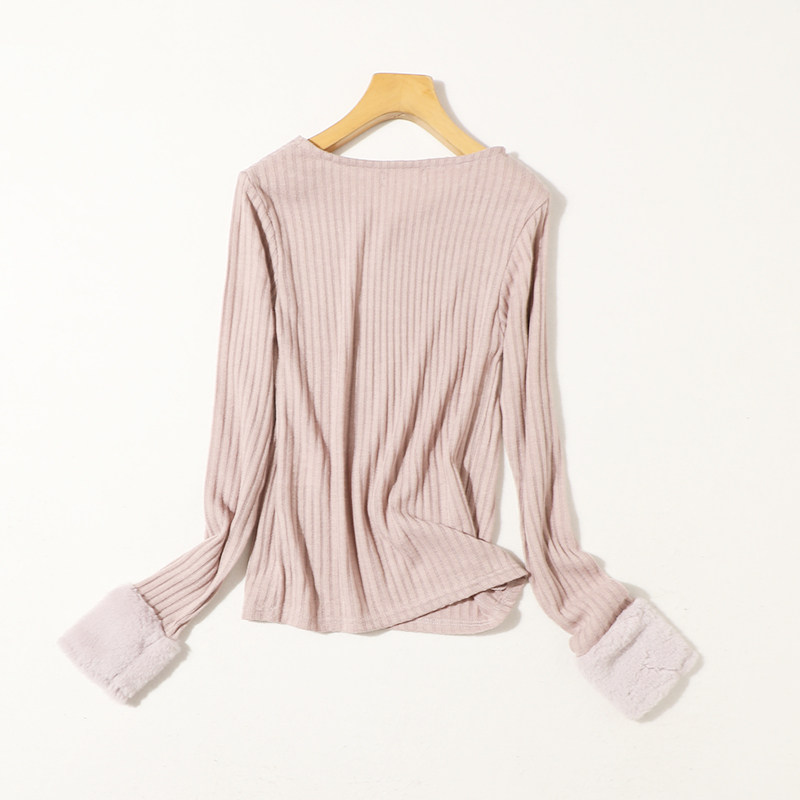 Осенний свежий эластичный базовый бархатный трикотажный лонгслив, свитер, V-образный вырез, облегающий крой