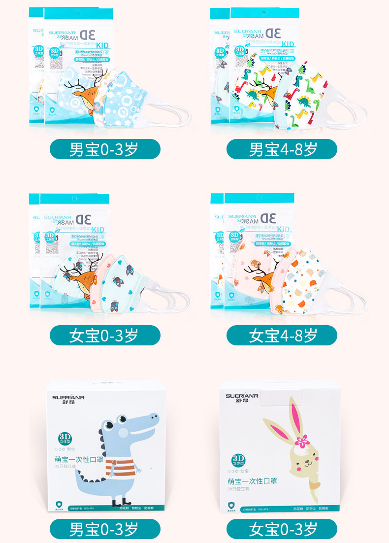 Детская одноразовая трехмерная медицинская маска для раннего возраста для мальчиков, 6 мес., 3D