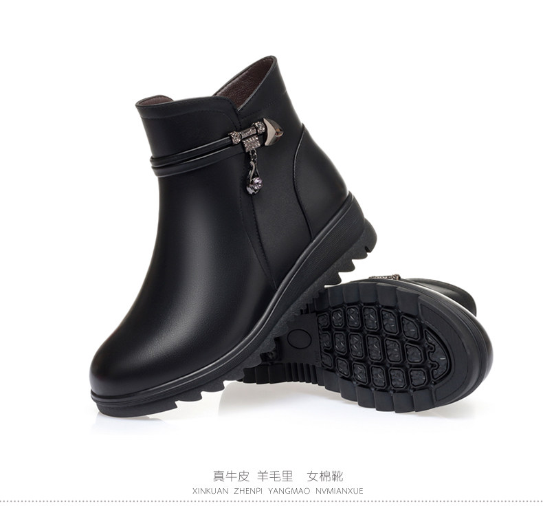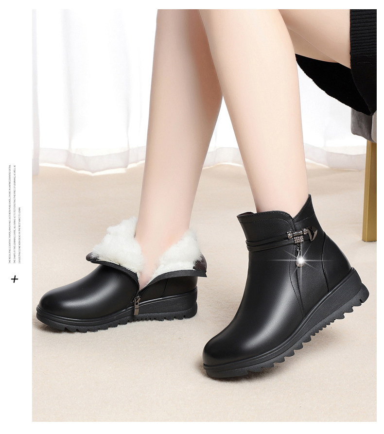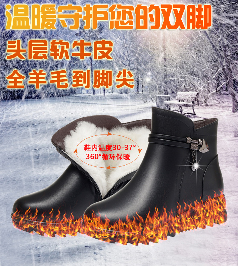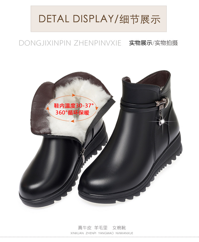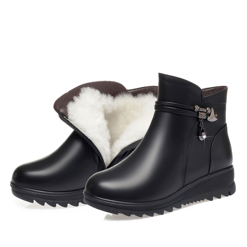 Утепленные нескользящие короткие сапоги для матери, для среднего возраста, из натуральной кожи, большой размер
