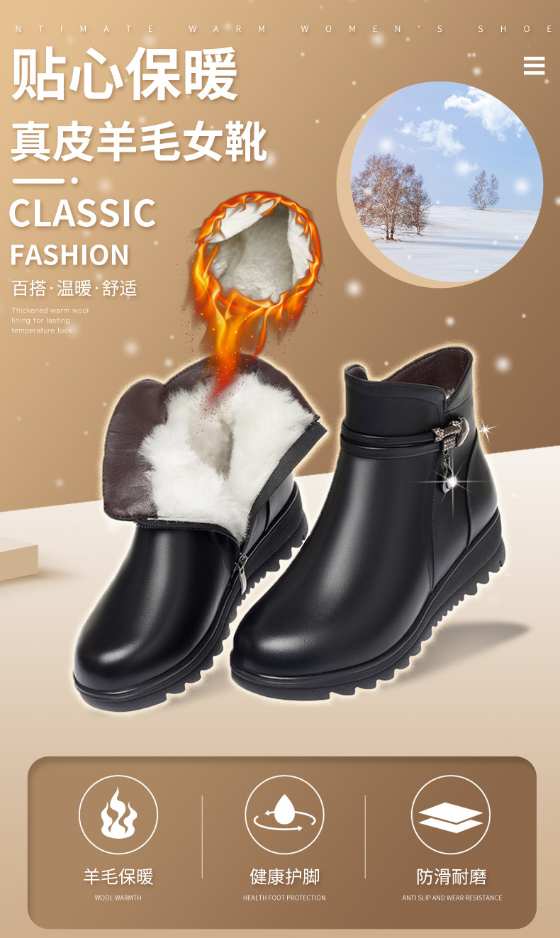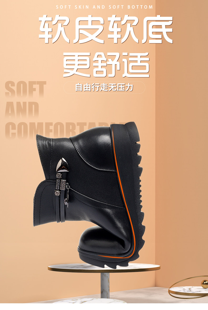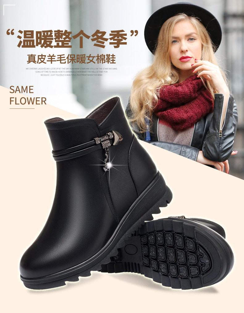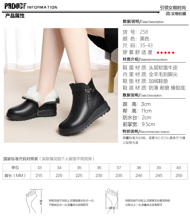 Утепленные нескользящие короткие сапоги для матери, для среднего возраста, из натуральной кожи, большой размер