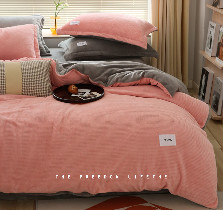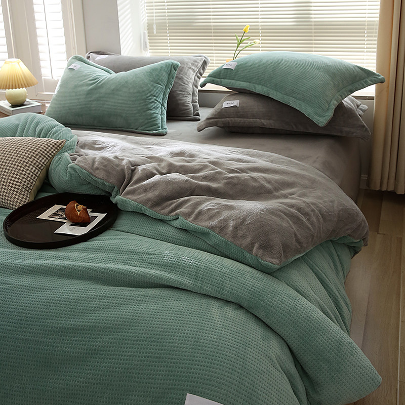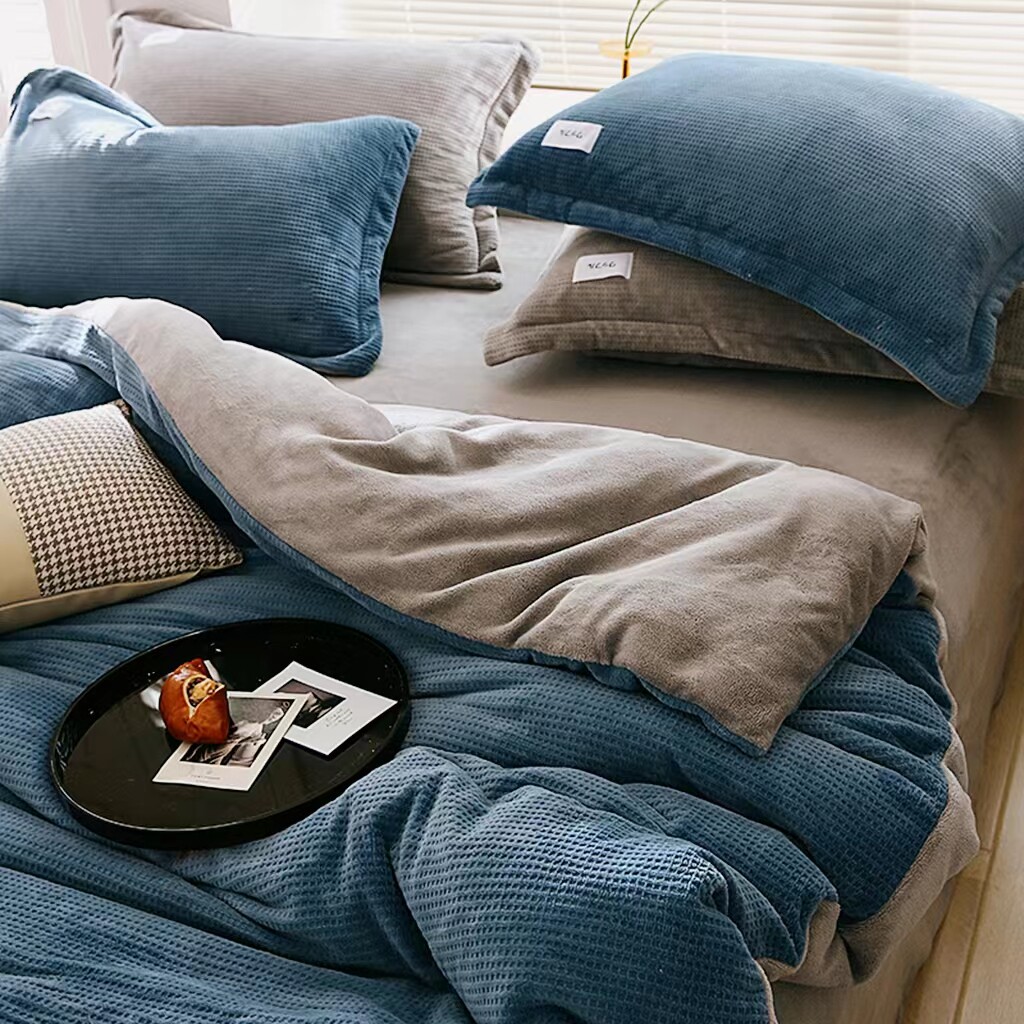 Джинсы с начесом, бархатное покрывало, зимний комплект, коралловая бархатная простыня, пододеяльник, 4 предмета, 3 предмета