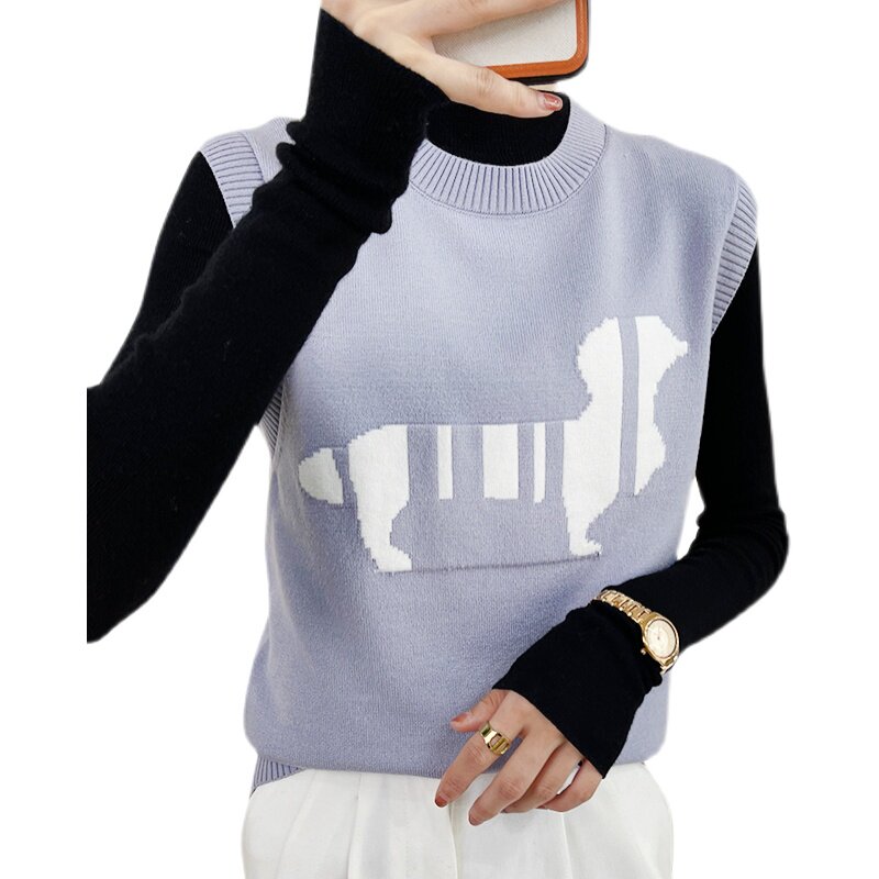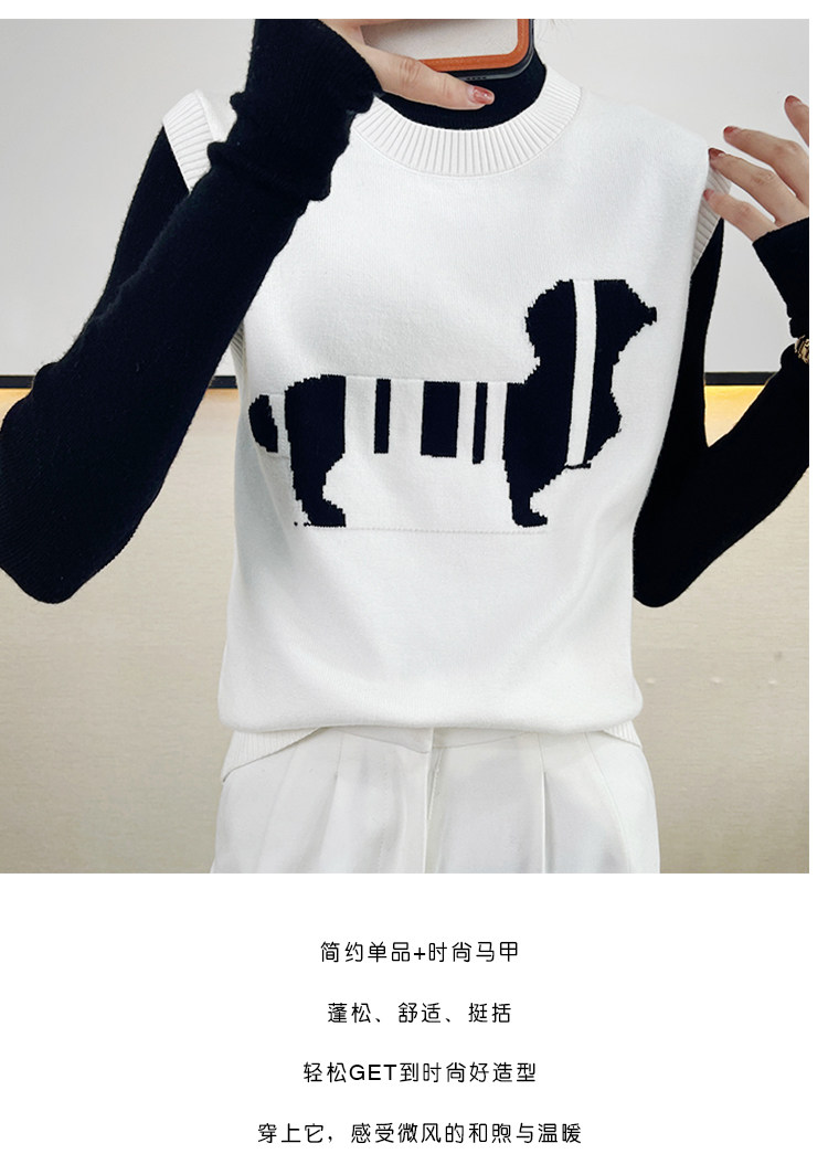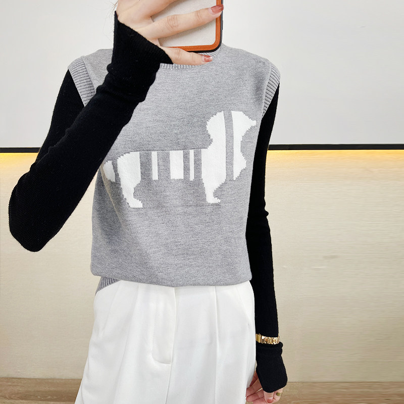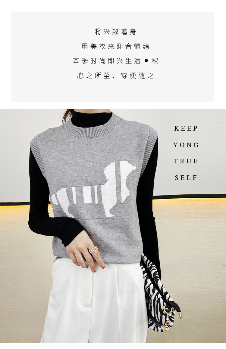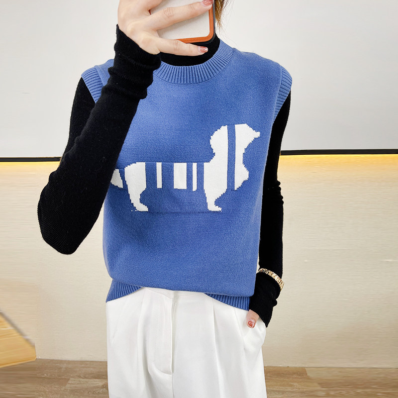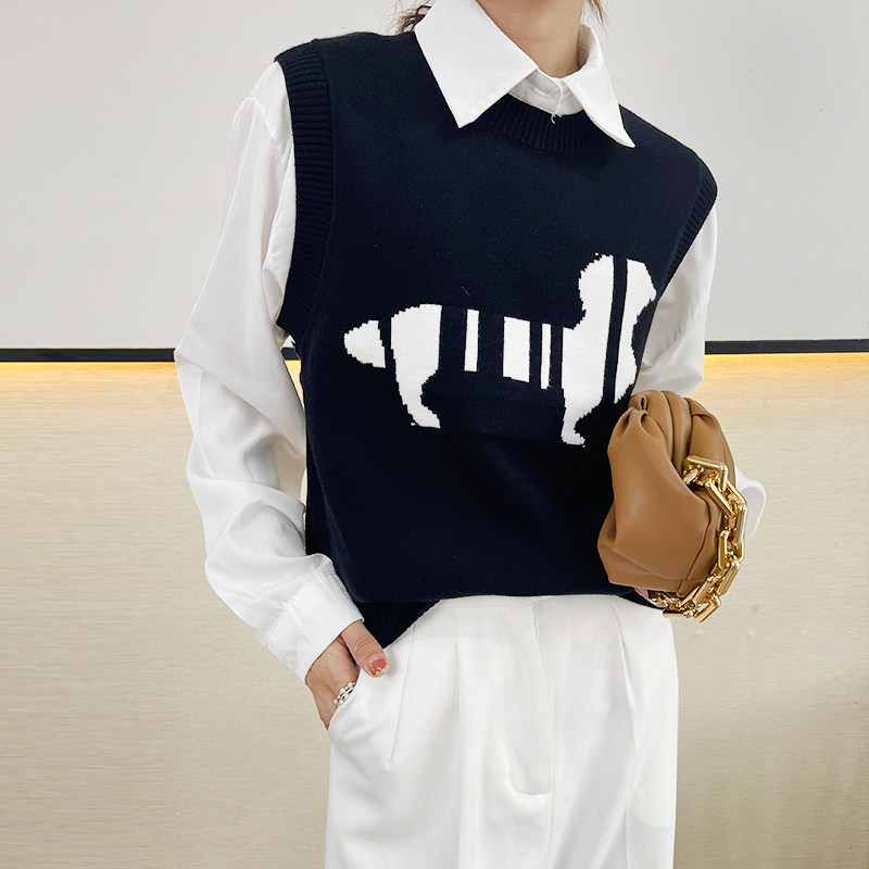 Трикотажный осенний жилет без рукавов, майка топ, в корейском стиле, принт, коллекция 2021, свободный крой