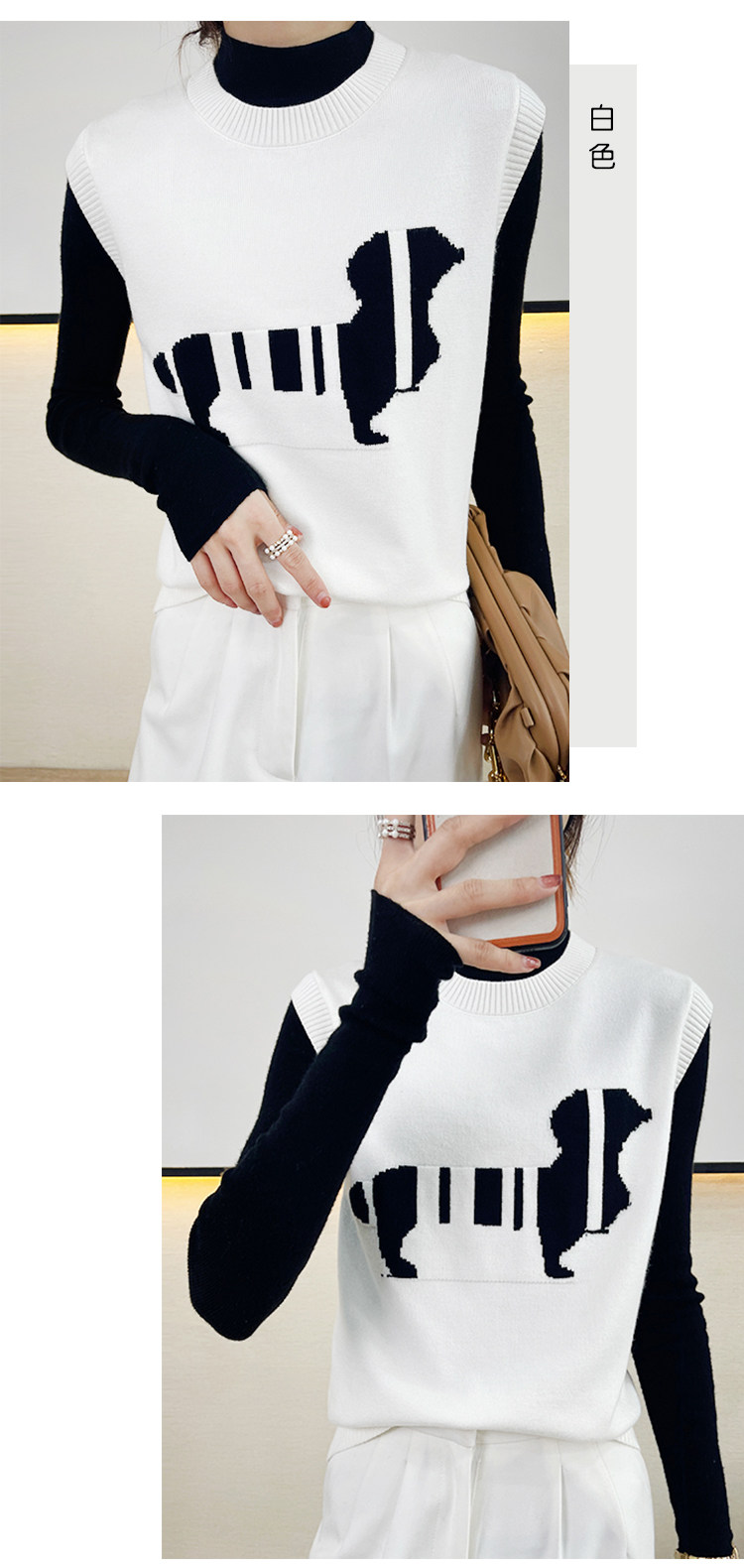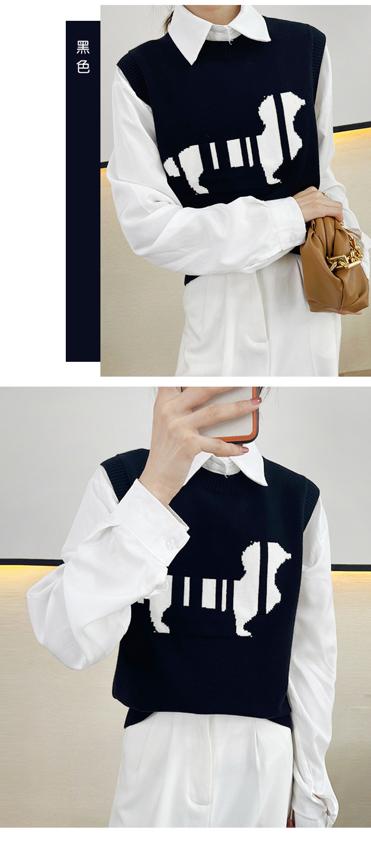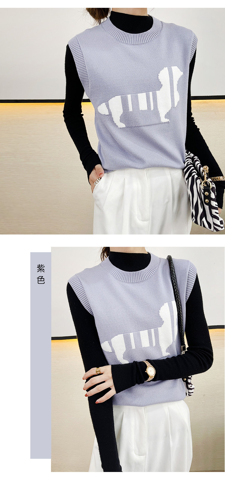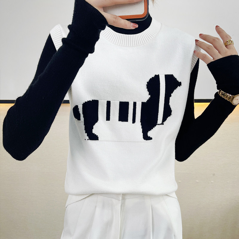 Трикотажный осенний жилет без рукавов, майка топ, в корейском стиле, принт, коллекция 2021, свободный крой